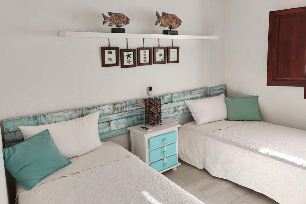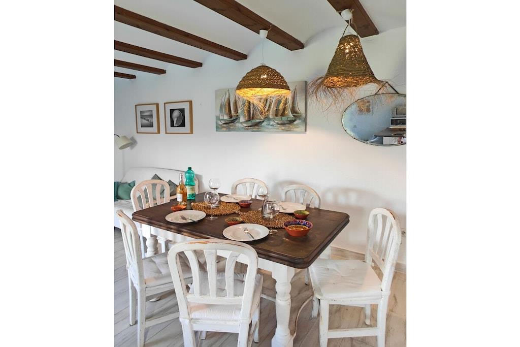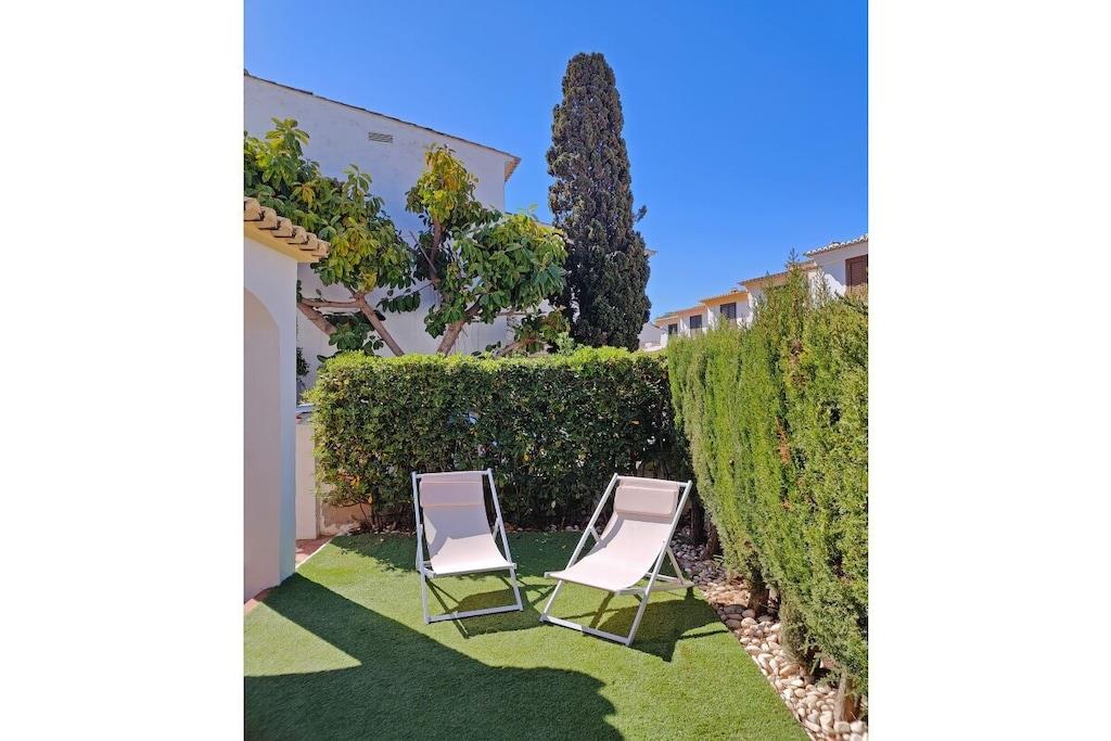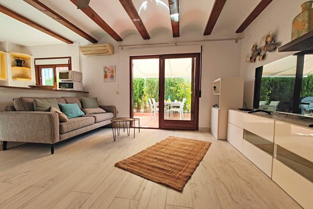 Das Ferienhaus ist Teil der Urbanisation Villa Riviera, einer privaten gated comunity, direkt beim Strand in Denia. Es hat 2 Schlafzimmer, eine kuschelige Leseecke mit einer Schlafmöglichkeit für Kinder, einen kleinen Balkon sowie ein Bad mit Dusche im OG. Im EG gibt es ein weiteres Duschbad, ein geräumiges Wohnzimmer mit offener Küche sowie den Zugang zur Terrasse und dem privaten Garten. Einrichtung und Deko sind im Ibiza-Style gehalten, das Haus ist hell und luftig. Klimaanlagen in den Schlafzimmern und im Wohnraum sorgen für angenehme Temperaturen. Die Küche ist gut ausgestattet. Draußen gibt es dann eine Terrasse mit Essplatz und Grill. Eine Markiese bietet Schatten. Das Haus ist ideal für alle, die im Urlaub Strand, Pool und eine ruhige, relaxte Umgebung schätzen.