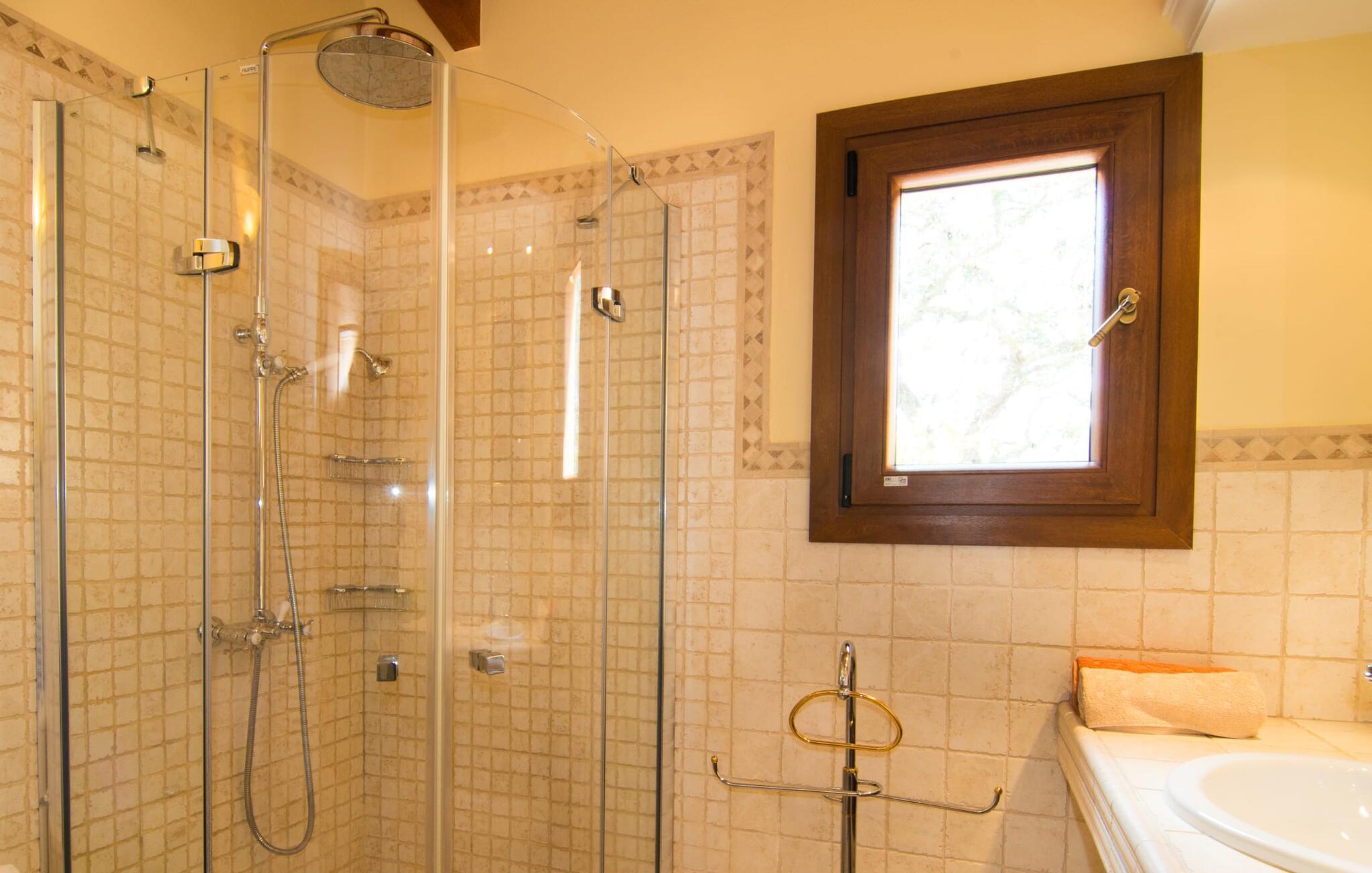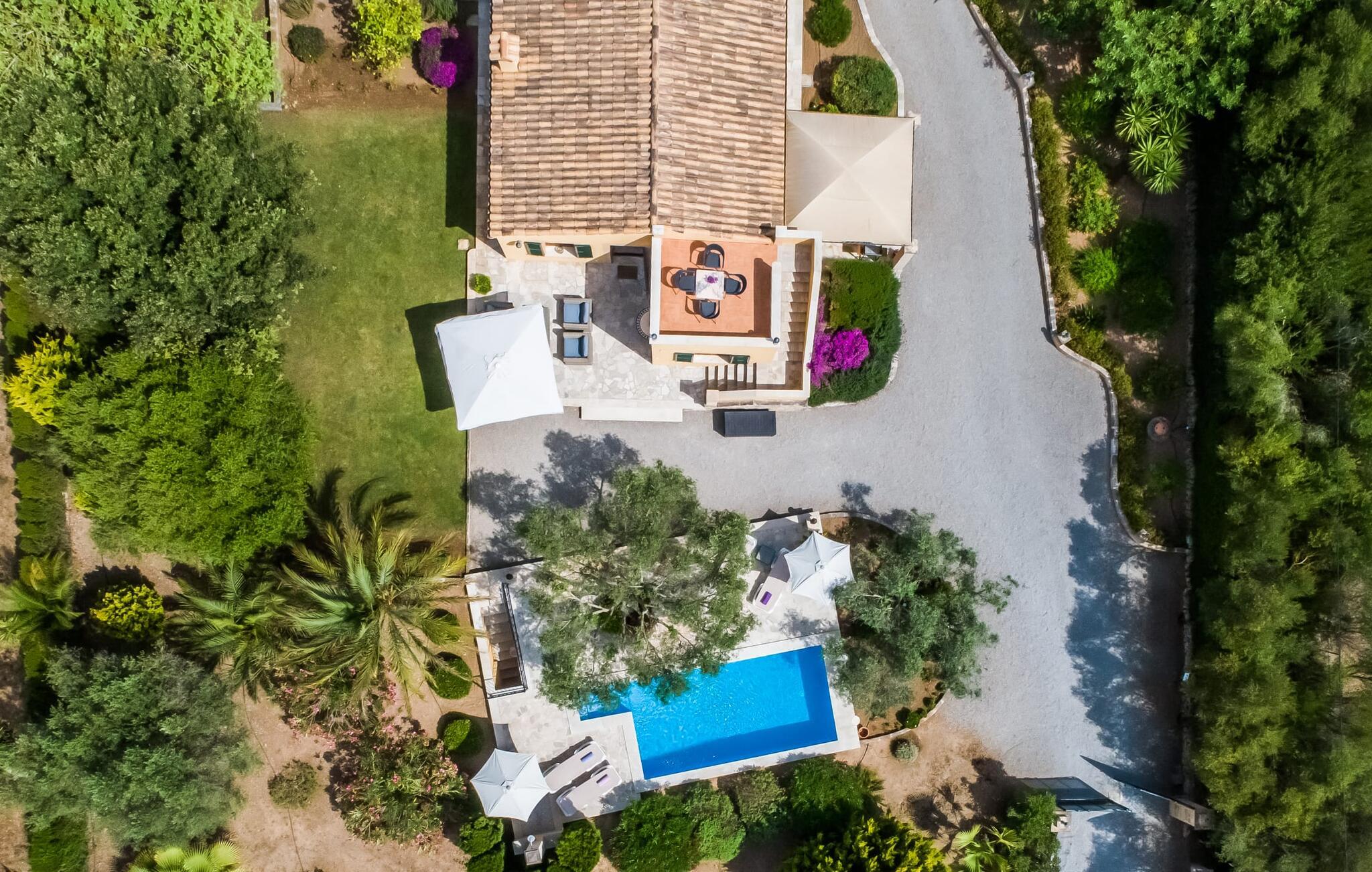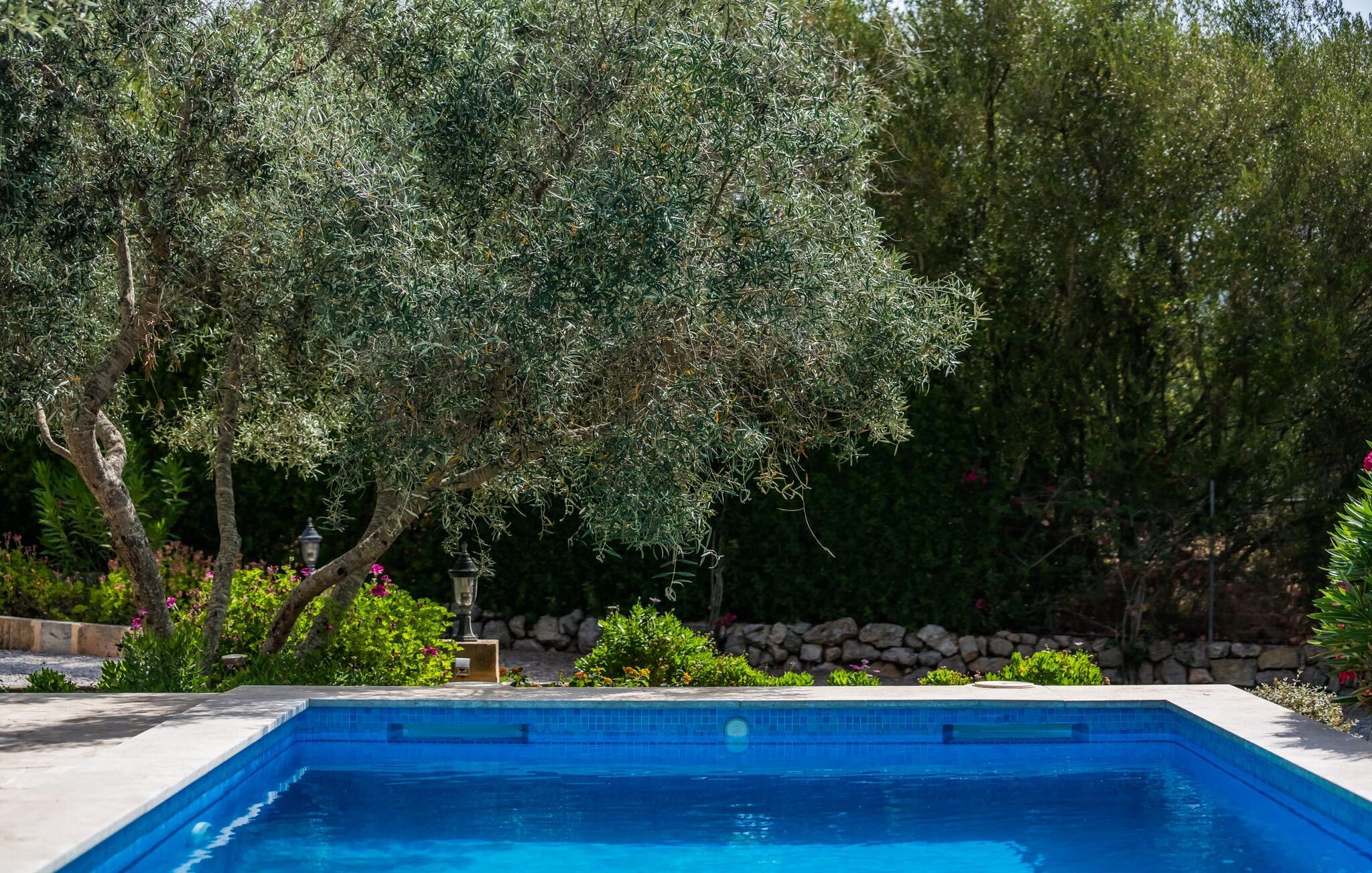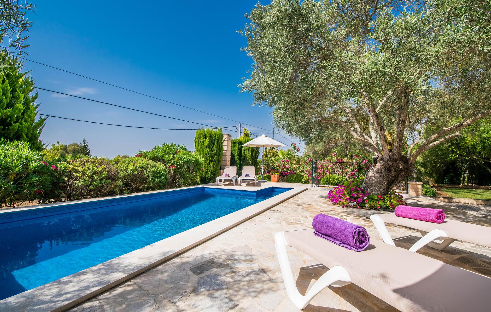 Villa Desol är ett semesterhus som är oöverträffat. Med ett vackert läge, mindre än fem kilometer från Artà, är det omgivet av magi som kan kännas så snart du kommer in i fastigheten. Det är de kärleksfulla detaljerna och känslan för eleganta kompositioner som utgör den speciella estetiken, som är mycket inbjudande även vid första anblicken. Villan totalrenoverades och renoverades 2011. Lyckligtvis behölls de gamla oliv- och algarroba-träden under ombyggnaden av trädgården och campos. Detta skapar en mycket framgångsrik kontrast till husets moderna utseende. År 2013 lade vi till vårt eget licensierade borrhål. Växterna och gräsmattan förses med automatisk bevattning. Vackra grus-, gräs- och terrassområden kännetecknar grunderna. I mitten ligger den vackra poolen, som är dekorativt kaklad och nås via trappor. Här kan du koppla av i solen på de bekväma solstolarna och njuta av din underbara semester till fullo. Totalt tre parasoller finns tillgängliga för att skydda dig från överdriven UV-strålning. Två terrassområden vid huset, varav en är täckt, inbjuder dig också att dröja kvar. Det finns mysiga loungemöbler i polyrattan och ett matbord för att äta tillsammans. Frukosten här är utan tvekan lika njutbar som en kulinarisk middag på kvällen. Grillen garanterar också en hjärtlig grillfest.