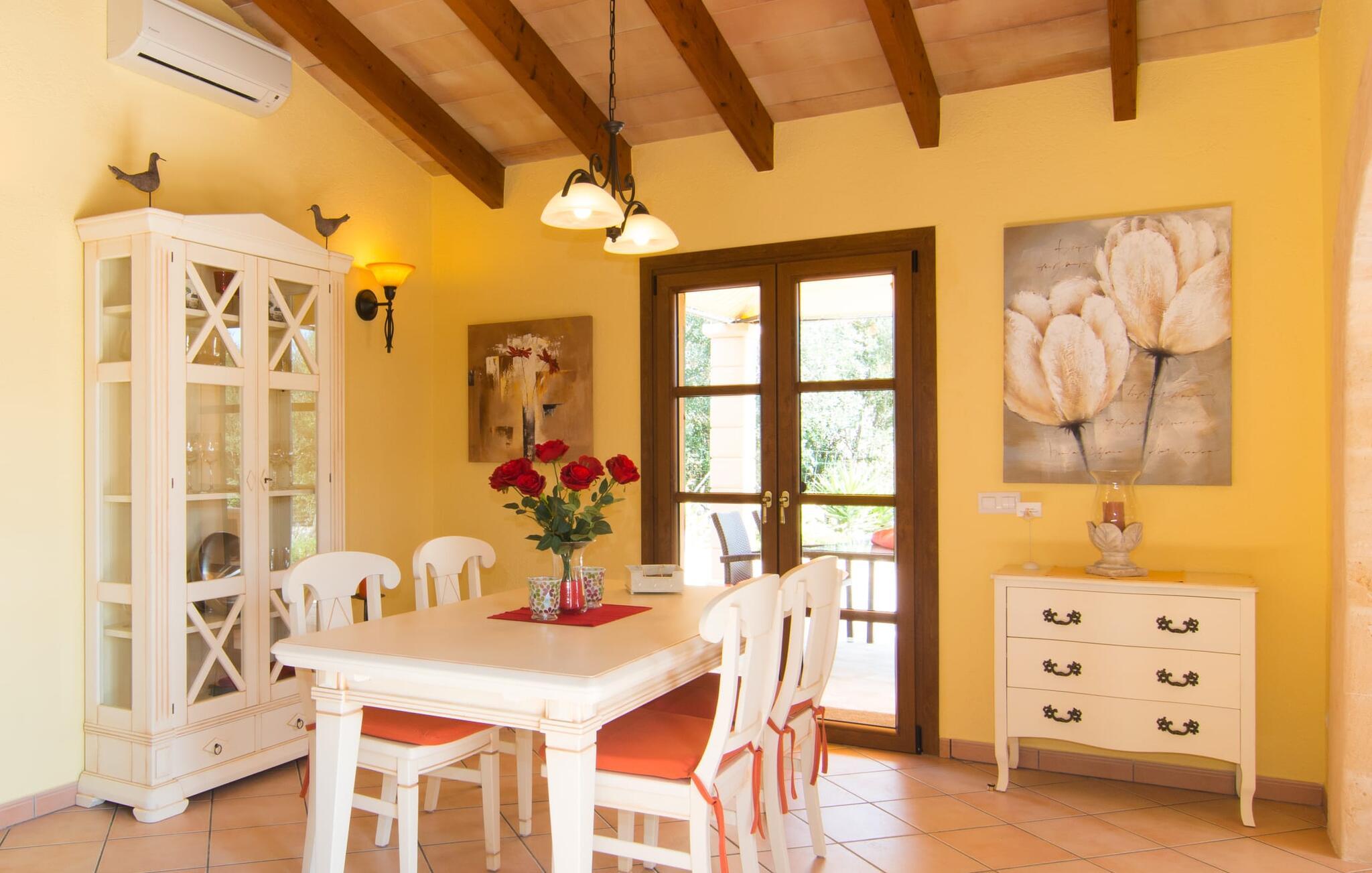 Om du letar efter en estetiskt tilltalande villa i en idyllisk lantlig miljö nära vackra naturliga sandstränder, rekommenderas detta hus starkt. Livliga turistorter som Cala Ratjada (13 km) med sina många barer, restauranger och shoppingmöjligheter kan nås på nolltid. Efter en lyckad dag ute kan du alltid återvända till din egen villa för att simma några längder eller avsluta dagen på terrassen om humöret faller dig i smaken. Villa Desol är ett elegant litet semesterhus i ett vackert lantligt läge mellan Artà och Canyamel. Det är omgivet av ett mycket välskött utomhusområde. Artà ligger bara åtta minuter bort med bil. Det är ett bra ställe för shopping och mat. Många fina, vita sandstränder längs det lokala kustområdet ligger bara några minuter bort med bil. Flygplatsen kan nås på en timme.