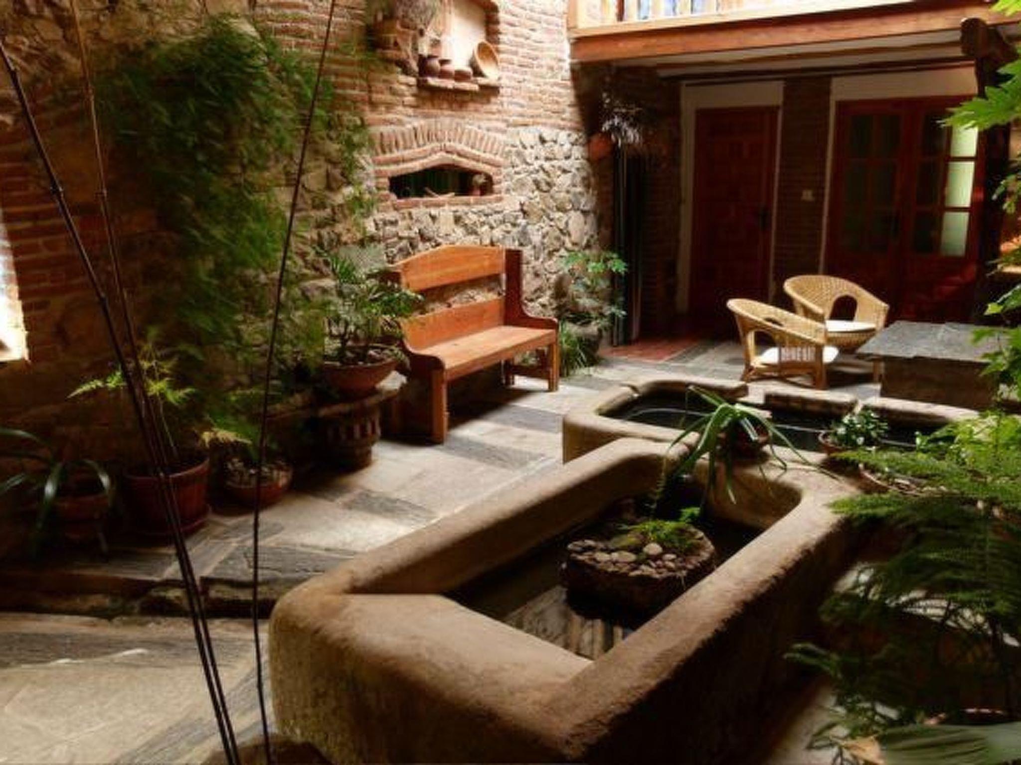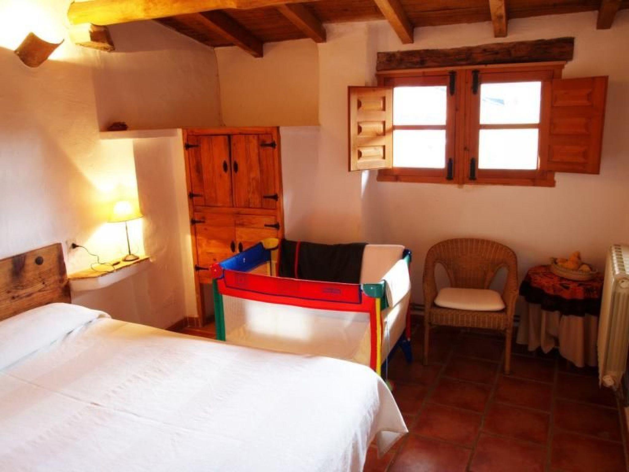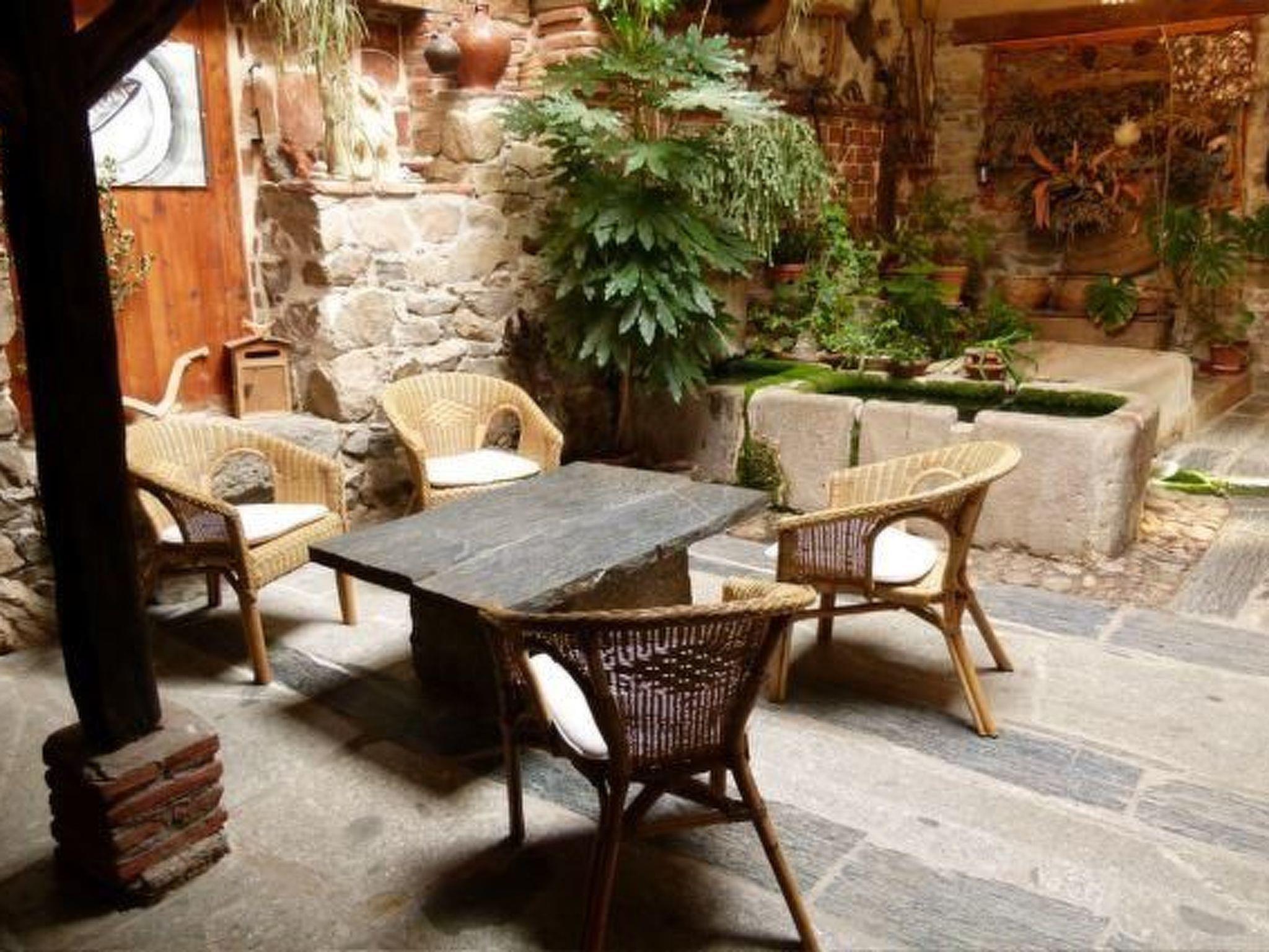 The building dates back to the 18th century, when it was used for wool washing, and has been carefully restored as a country house using wood, stone and recycled materials. In the entrance hall there is an enclosed courtyard with a natural well dating from 1779. The ground floor has a bathroom with stone shower and the kitchen is equipped with gas cooker, fireplace, refrigerator, microwave, dishwasher, cutlery and dishes, and all other necessary kitchen utensils. The living room has a fireplace with free firewood, as well as several sofas, TV and WIfi. There is also a dining room with a table for up to eight people. On the first floor there is a bathroom with a bathtub. The three bedrooms are also located here. The first with a double bed and a single bed, the second with two single beds and the third with a double bed. A child's bed and an extra bed can be provided free of charge.