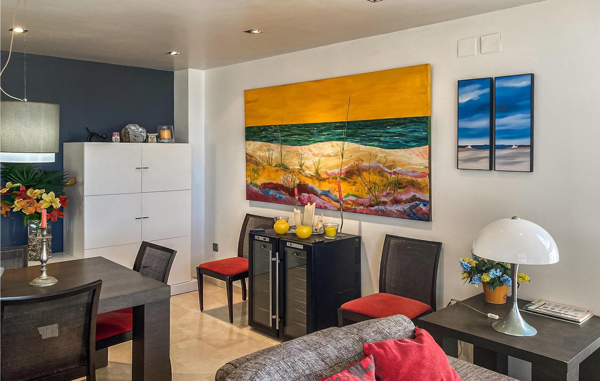 Denna rymliga semesterlägenhet på de övre våningarna i ett flerfamiljshus välkomnar dig direkt på stranden. Den smakfulla inredningen och de stora fönstren fyller inte bara rummen med naturligt ljus, utan ser också till att du kan sitta i soffan med utsikt över stranden och havet eller blicka ut över havet medan du grillar på takterrassen. Koppla av i bubbelbadkaret eller använd den gemensamma poolen, där du kan simma dina första varv på morgonen medan dina nära och kära fortfarande sover eller förbereder frukost. Det finns ingen brist på sport heller, eftersom du kan prova på paddeltennis innan du går till stranden.