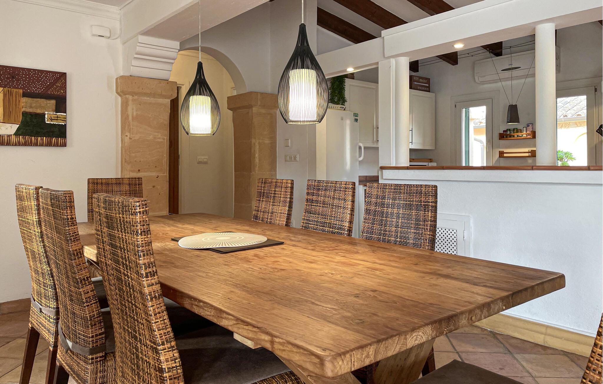 Denna förtrollande mallorkinska finca ligger inbäddad i vackra, välskötta grunder och välkomnar dig med en rymlig och smakfullt inredd interiör som får dig att känna dig som hemma från dag ett. Tillaga medelhavsrätter tillsammans i det rymliga köket och prata över längre måltider vid det inbjudande matbordet. Hitta tid tillsammans för en mysig filmkväll eller avrunda en lång dag i solen med en kväll med spel.