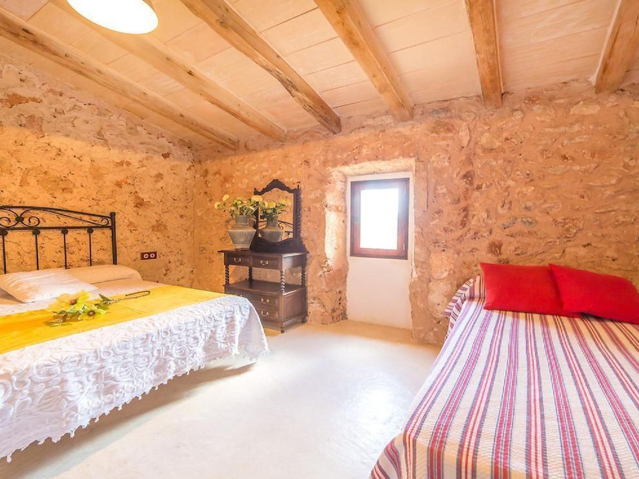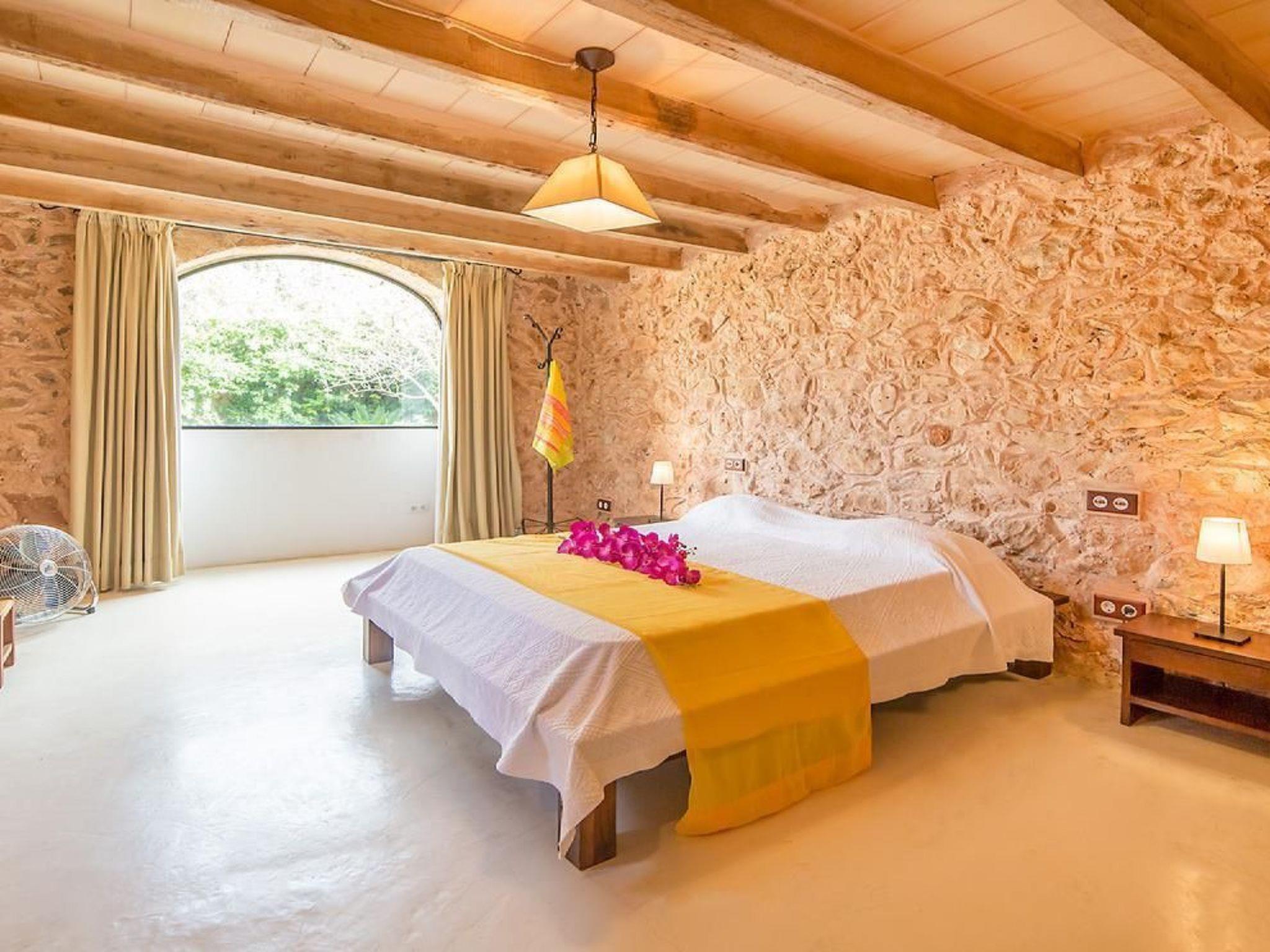 Further back on the lower floor are the first two bedrooms of the finca. To the right you have a small dressing room and adjoining a beautiful large bedroom with a double bed and a fantastic window front.