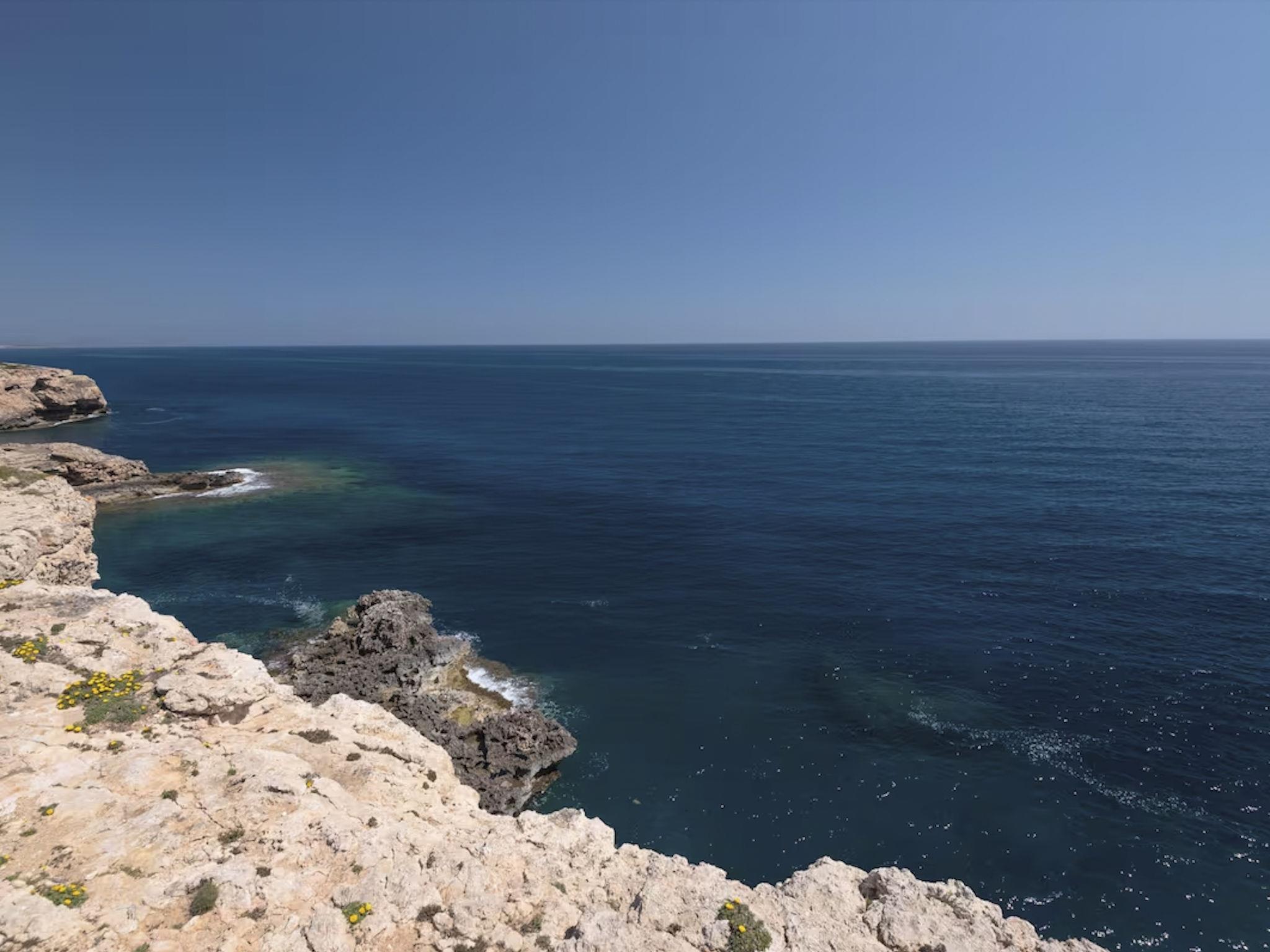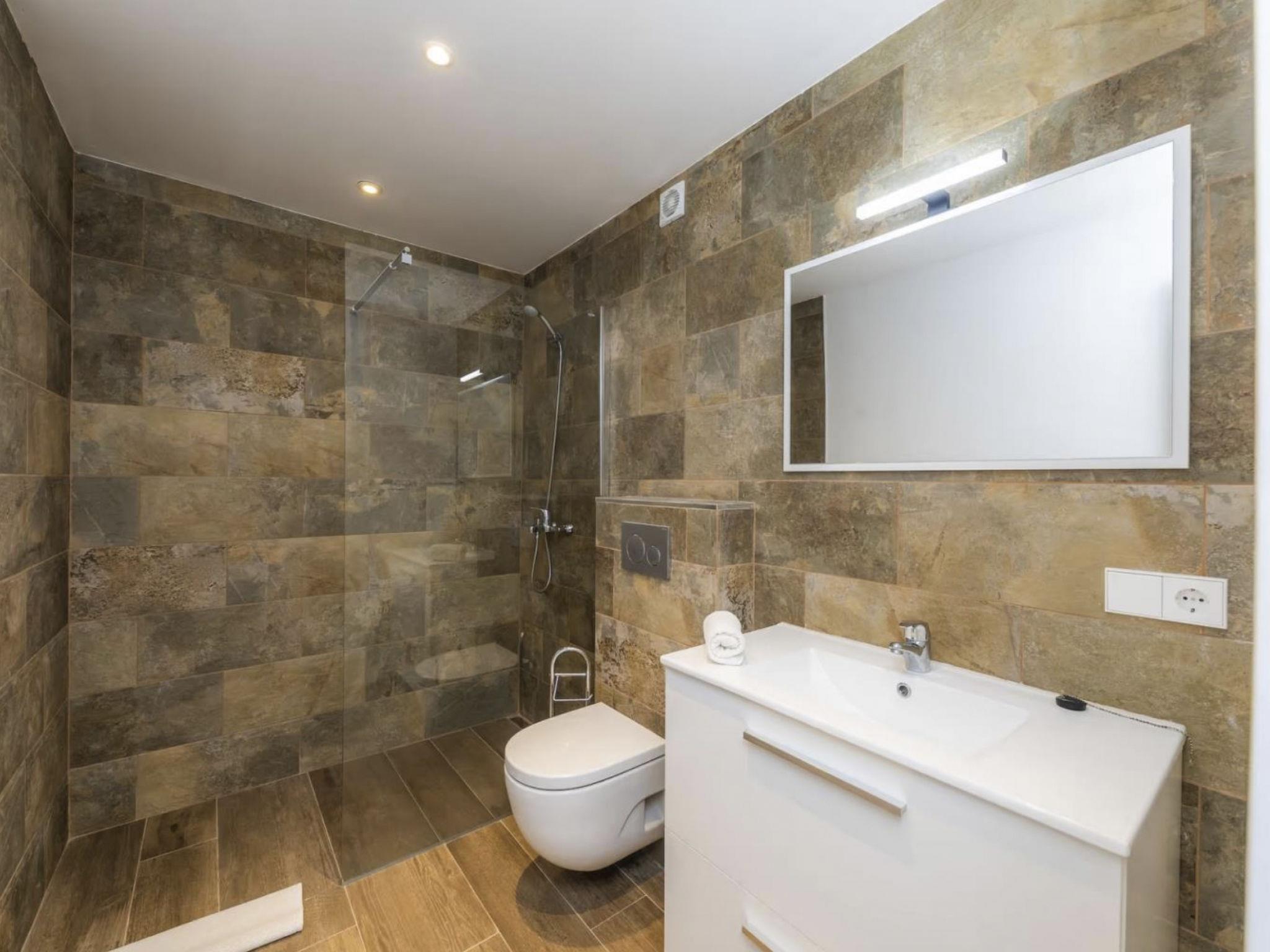 Seven bathrooms are available, five of which are ensuite to the bedrooms. All bedrooms and the living area are air-conditioned. Some of the bedrooms on the upper floor have access to the terrace. From there, the pool terrace can be reached via an external staircase to the garden, and with private access you are also directly on the rocky coast.