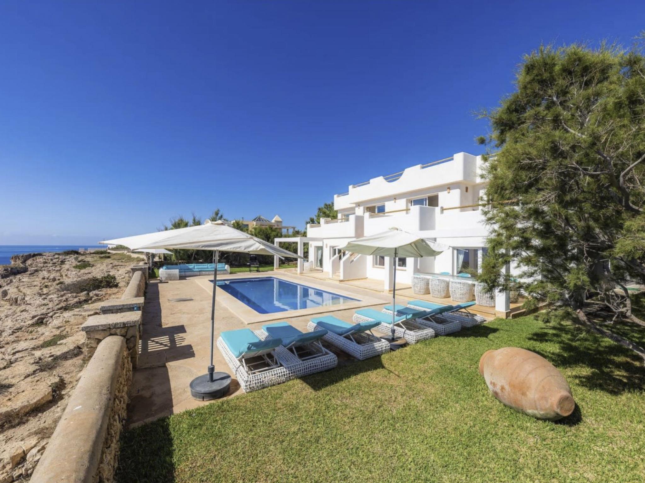 Villa Turquesa - a dream home by the sea in Portocolom for 14 people. Spectacular views and distant vistas. The exclusive location makes this seven-bedroom holiday home an exceptional accommodation in Portocolom. The spacious living area, consisting of a lounge with fireplace and various seating areas, dining area and a kitchen with dining area, offers breathtaking views over the pool terrace and to the sea.