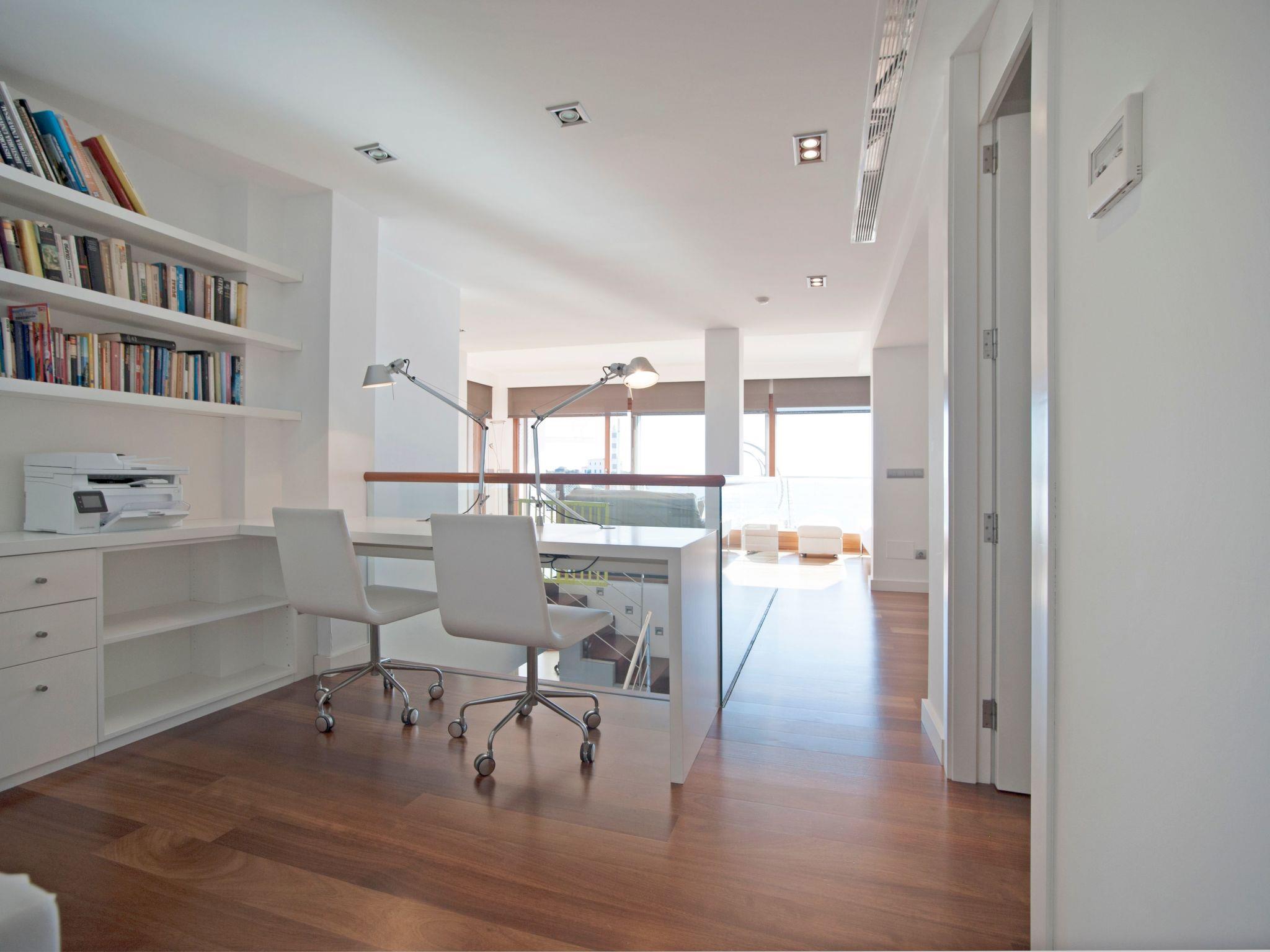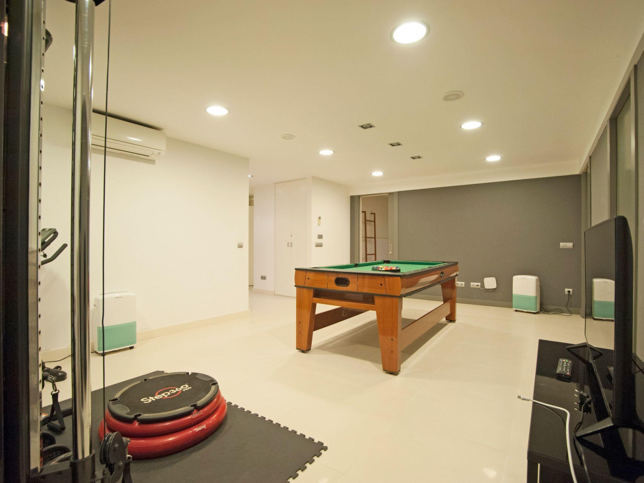 Inside, the villa unfolds over three levels of sophistication and comfort. It features five double bedrooms, each a sanctuary of relaxation with its own television, air conditioning, WiFi, and private bathroom, comfortably accommodating up to 10 guests. The living spaces are thoughtfully designed, from a fully equipped kitchen brimming with different amenities to a variety of leisure areas including a quaint office space, a playroom complete with ping-pong, and a modest gym with bathroom facilities — all ensuring a stay that blends marine vibes with homely comfort.