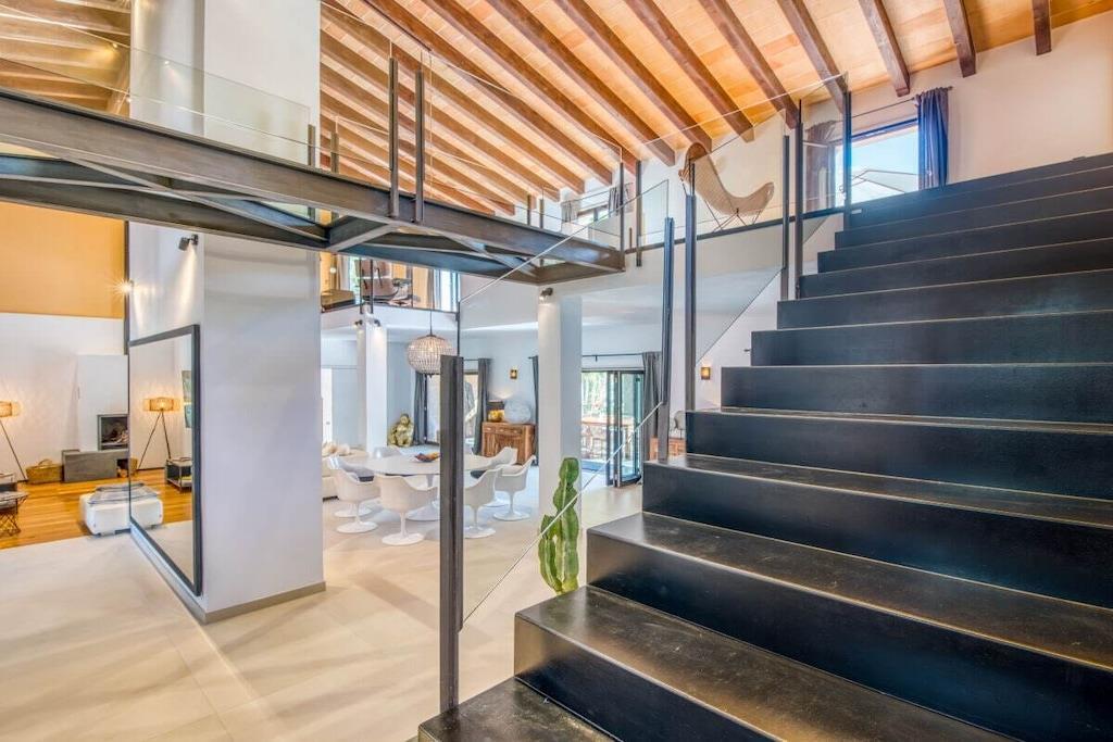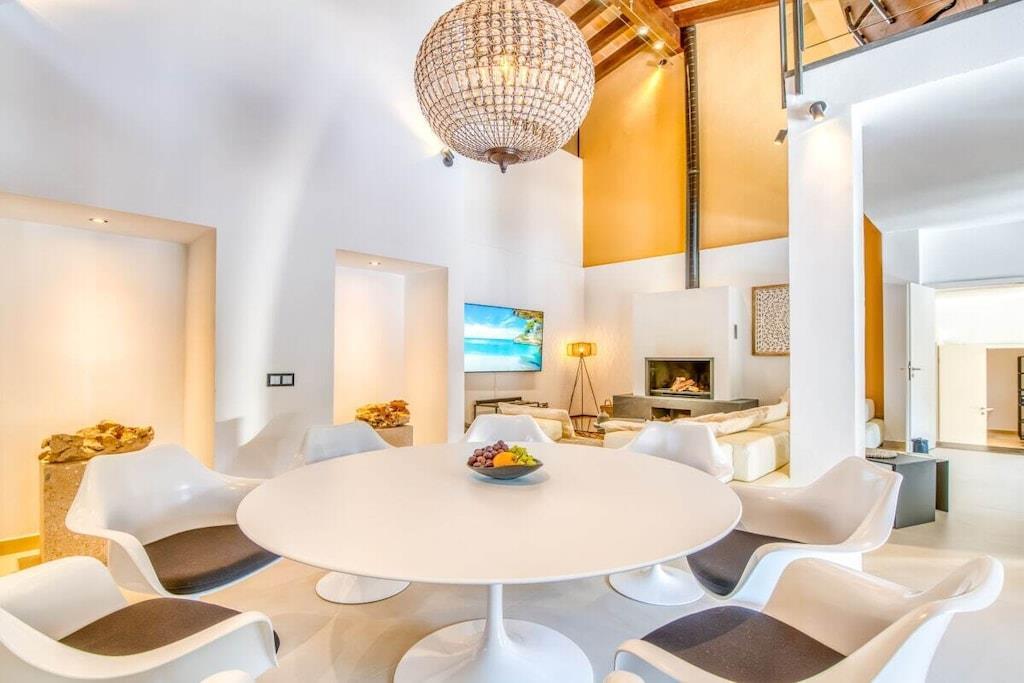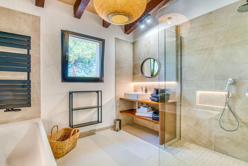 RUMEN behöver en finca på Mallorca – det var vi helt säkra på. Ärligt talat hade vi INGEN ANING om vad vi kunde förvänta oss på Mallorca, vilka hus som faktiskt tilltalade oss och vad vi borde titta på innan vi kom dit. Först gjorde vi vår research online, fick en överblick och pratade med vänliga och kompetenta fastighetsmäklare och ointresserade nyfikna – allt fanns där. Och i efterhand hittade vi snabbt RUM NR 8, även om vi inte visste det då. VILLA eller FINCA – det är frågan: Med andra ord – shopping, strand och barer inom gångavstånd – men liv och fest i grannskapet varje dag från morgon till kväll – även när vi vill ha lugn och ro? Eller – – i linje med mottot – hälften så stor som Ohlsdorf-kyrkogården, men dubbelt så död? Helst skulle en blandning av båda vara – för att parafrasera Tucholsky – torget framför, Medelhavet bakom – det skulle vara allt… Vilka är alla dessa fördelar? En stor, mogen fastighet i ett gated community. Plus en saltvattenpool där man faktiskt kan simma, en bastu och så välskötta utomhusområden med dagbäddar, solstolar, lounger och stora täckta och öppna terrasser att vilken strandklubb som helst skulle avundas. Ett välskött, modernt hus med energiklass B, inte en smutsig finca, inte en blivande ombyggnad – huset framstår som en klassiker, med en absolut lyckad arkitektur som verkligen saknar motstycke. Sovrummen är alla luftkonditionerade, och det öppna, loftliknande vardagsrummet/matsalen har takhöjder upp till 7,50 meter. Badrummen har alla duschkabin, och 3 av dem har till och med badkar. I köket hittar du både gas- och induktionshällar, plus naturligtvis en ugn, ångkokare och en helautomatisk kaffemaskin – allt från Siemens. Och grillen – en stor gasgrill finns på den täckta terrassen – tack. För ingredienser och kalla drycker finns det naturligtvis en stor dubbelsidig kyl- och fryskombination – om du vill kan du göra dina egna isbitar... Dessutom finns det klassisk barutrustning. Vi öppnar baren i början av säsongen med ett urval av drycker anpassade efter vår smak. Under sommaren tar våra gäster med sig det de har druckit upp och det de älskar, men som kanske fortfarande saknas. Sedan lämnas baren vidare till nästa gäst, och så vidare. Vi kallar det ge och ta... där alla lämnar sitt personliga visitkort – rent, blandat, som en cocktail eller iskallt on the rocks. På tal om is – om det blir lite kyligt ger golvvärmen mysig värme – eller så kan du tända den öppna spisen – vad du än föredrar. Möblerna matchar fincas moderna stil; färgschemat är lugnt, stilen är minimalistisk. En blandning av varma trätoner och stora, ljusa kakelplattor i kombination med glas och stål. Vackra, unika föremål som vi hittade står sida vid sida med designklassiker som fröjdar våra ögon, samtidigt som de lugnar och uppfriskar dem. Poolterrassen inbjuder dig att koppla av och dröja dig kvar hela dagen – antingen under tak för skugga eller vid poolen för soldyrkare. Gör det bekvämt för dig på solstolarna och dagbäddarna och unna dig det. Du förtjänar det. De som vill använda bastun på övervåningen betalar en liten avgift för el. Vi avläser mätaren och fakturerar dig för din förbrukning.