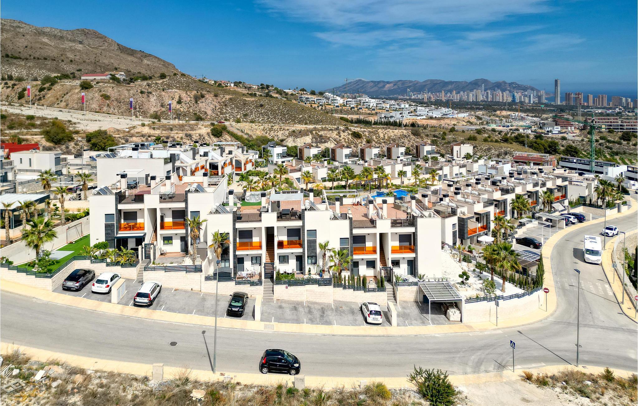 Den inbjudande lägenheten är den perfekta platsen för en avkopplande paus med de bästa underhållningsalternativen i omedelbar närhet, till exempel golfbanan, som du kan nå till fots. Du kommer att känna dig som hemma så snart du kommer in i de ljusa rummen. Luft och ljus är ständigt närvarande här och den moderna och bekväma inredningen avrundar upplevelsen. Du kan njuta av en fantastisk panoramautsikt så snart du vaknar. Planera dagens utflykter och aktiviteter vid en frukost med fantastisk utsikt eller njut av en avkopplande stund vid den gemensamma poolen. Njut av solen på terrassen, härifrån kan du se havet, ta ett uppfriskande dopp i poolen och lämna vardagen bakom dig. På kvällen kan du njuta av takterrassen med belysning och grill.