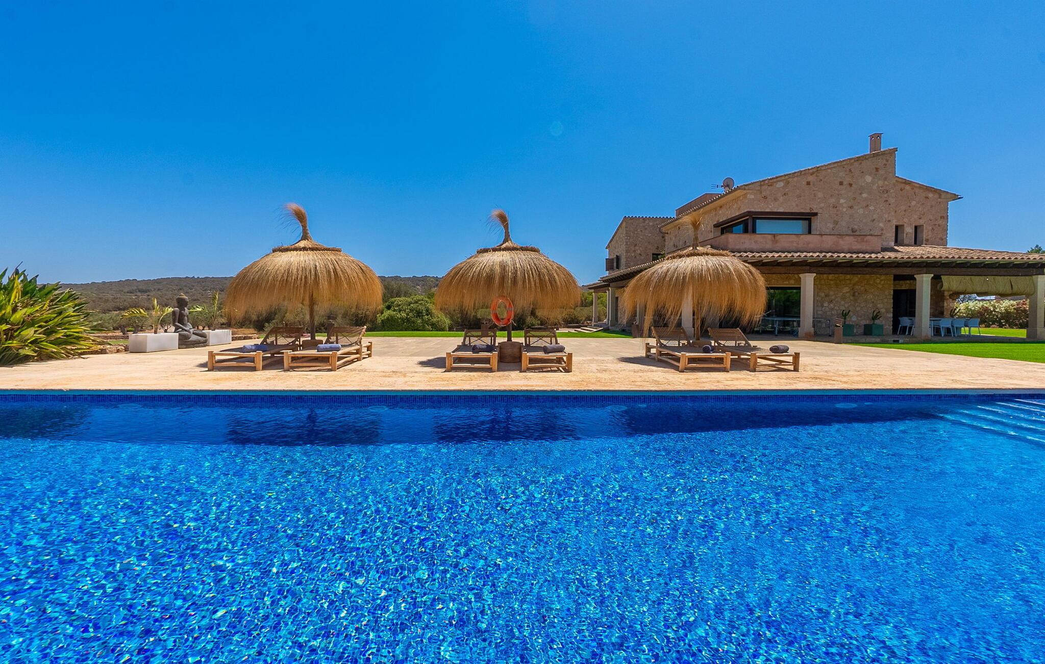 Lantgården Flor de Sal a Sa Canoveta är perfekt för semesterfirare med designambitioner. Den rymliga fastigheten är en drömlik medelhavsoas full av palmer, frukt- och olivträd, generösa gräsmattor och fenomenal utsikt. I mitten av trädgården ligger den klorfria poolen i XL-format och avslappnad infinity-stil. En varmvattendusch utomhus och hydromassageduschen i poolen avrundar lyxen. De bekväma design-solstolarna på den omgivande solterrassen erbjuder också maximal avkoppling. Unga och gamla kan umgås vid bordtennisbordet eller på de täckta terrasserna vid huset. Grillen som tillagas på den murade grillen kan ätas där till middag. Den högkvalitativa loungehörnan på den andra täckta terrassen gör att du kan fira Mallorcas livskvalitet långt in på natten.