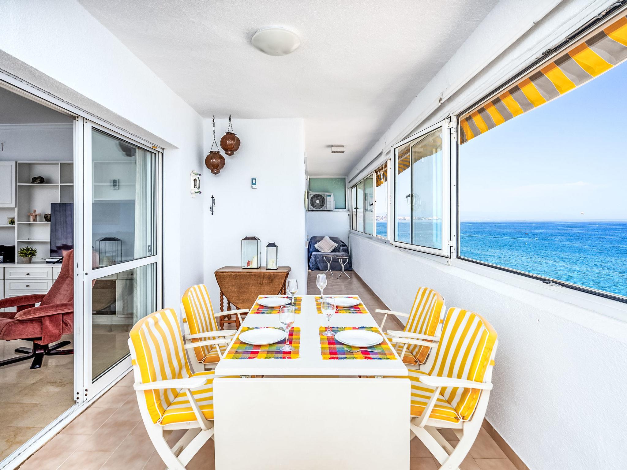 "Edificio El Rey", 3-room apartment 115 m2 on 7th floor. Object suitable for 4 adults. Spacious and bright, comfortable and cosy furnishings: living/dining room with dining table and satellite TV (flat screen), hi-fi system, air conditioning, fan and forced-air heating. Exit to the terrace, to the veranda. 1 double bedroom with 2 beds (90 cm, length 190 cm), bath/WC, air conditioning, fan and forced-air heating. 1 double bedroom with 2 beds (90 cm, length 190 cm), air conditioning, fan and forced-air heating. Open kitchen (oven, dishwasher, 3 ceramic glass hob hotplates, toaster, kettle, microwave, freezer, electric coffee machine). Shower/WC. Terrace 18 m2. Terrace furniture. View of the sea. Facilities: washing machine, dryer, iron, hair dryer. Internet (WiFi, free). VFT/MA/73144 // Reg. Nr.: ESFCTU0000290380001499500000000000000000VFT/MA/731443