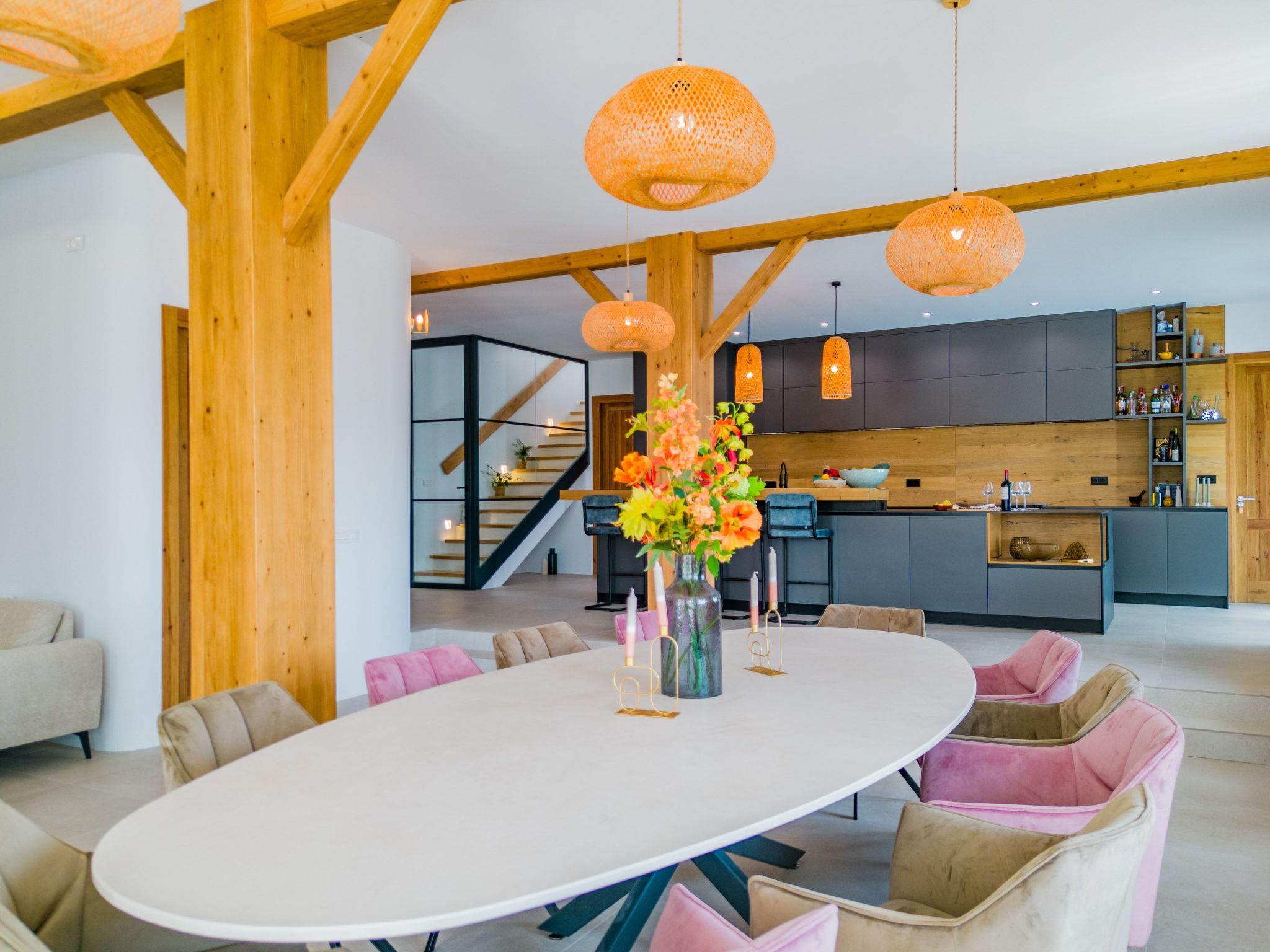Casa Lua is a modern, spacious holiday villa designed with your ultimate comfort in mind. The interior exudes luxury with ten bedrooms, each boasting its own private bathroom, and includes the unique feature of cave rooms built into the mountain for natural coolness and modern natural elements. The ground floor reveals a fully equipped open kitchen complete with a wine cooler, large fridge, freezer, dishwasher, and bar, capable of catering to twenty people. Comfort extends into the large living area, which is furnished with a cosy seating area, fireplace, smart TV, and dining table, all designed to facilitate relaxation and social gatherings in style.