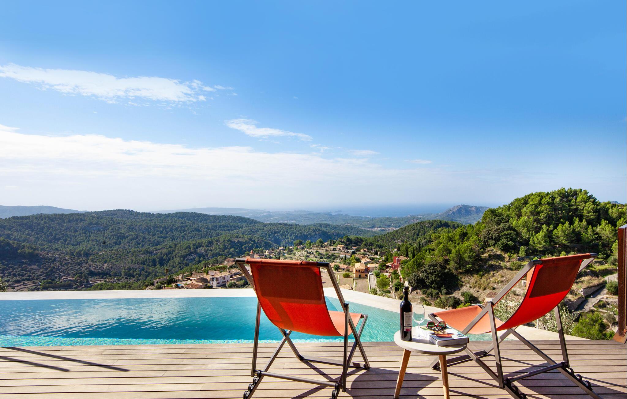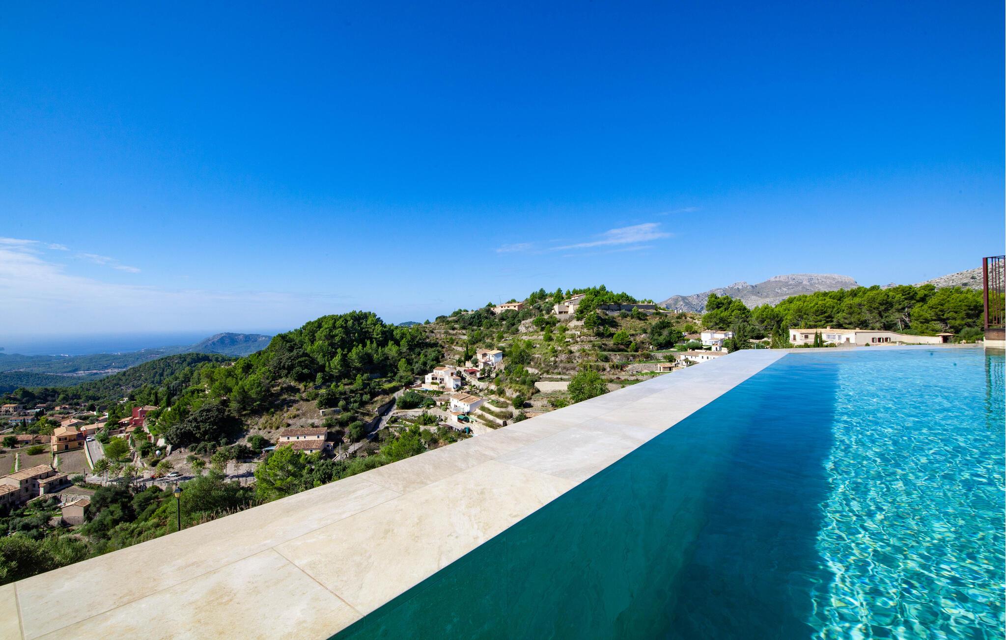 Vill du ha en drömsemester i en elegant atmosfär, på ett unikt ställe och med en absolut garanti för välbefinnande? Då ska du tillbringa din semester i detta högkvalitativa hus. Koppla av i den kristallklara infinitypoolen med en fantastisk utsikt över bergen och den vackra havskusten. Det lyxiga och ljusa huset är helt ommöblerat och inredningen är i en modern, tilltalande och elegant stil. Grupper (utom familjer och par över 30 år) endast på begäran och med särskild deposition.