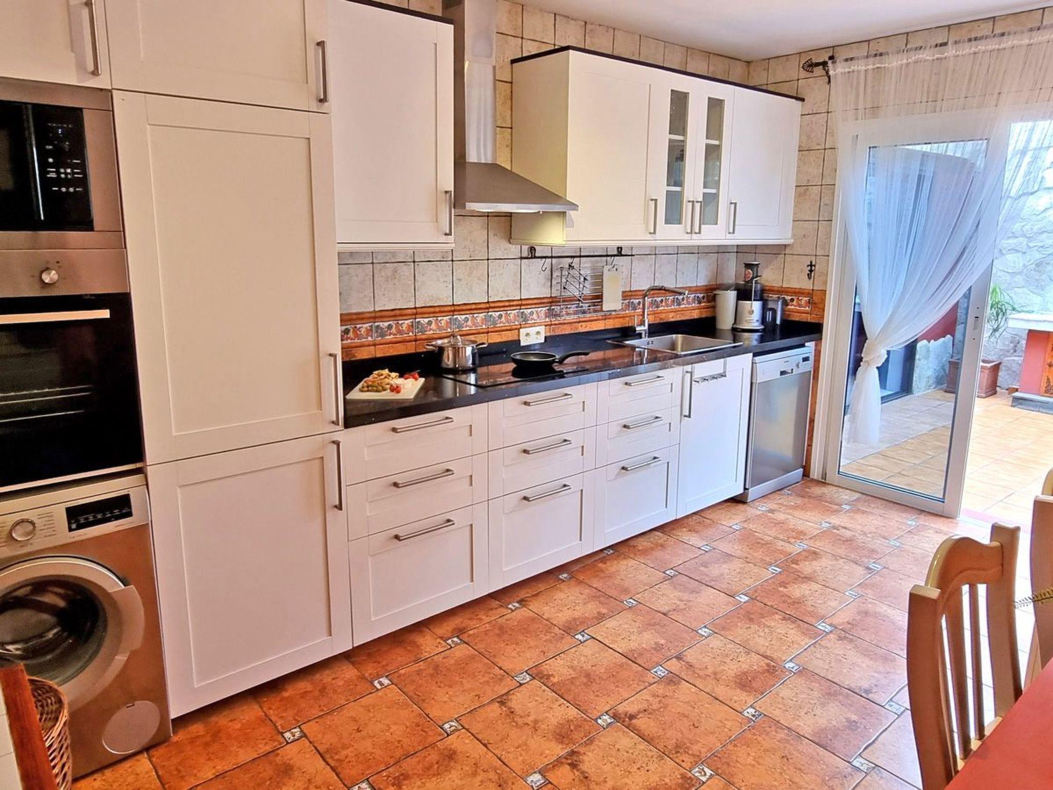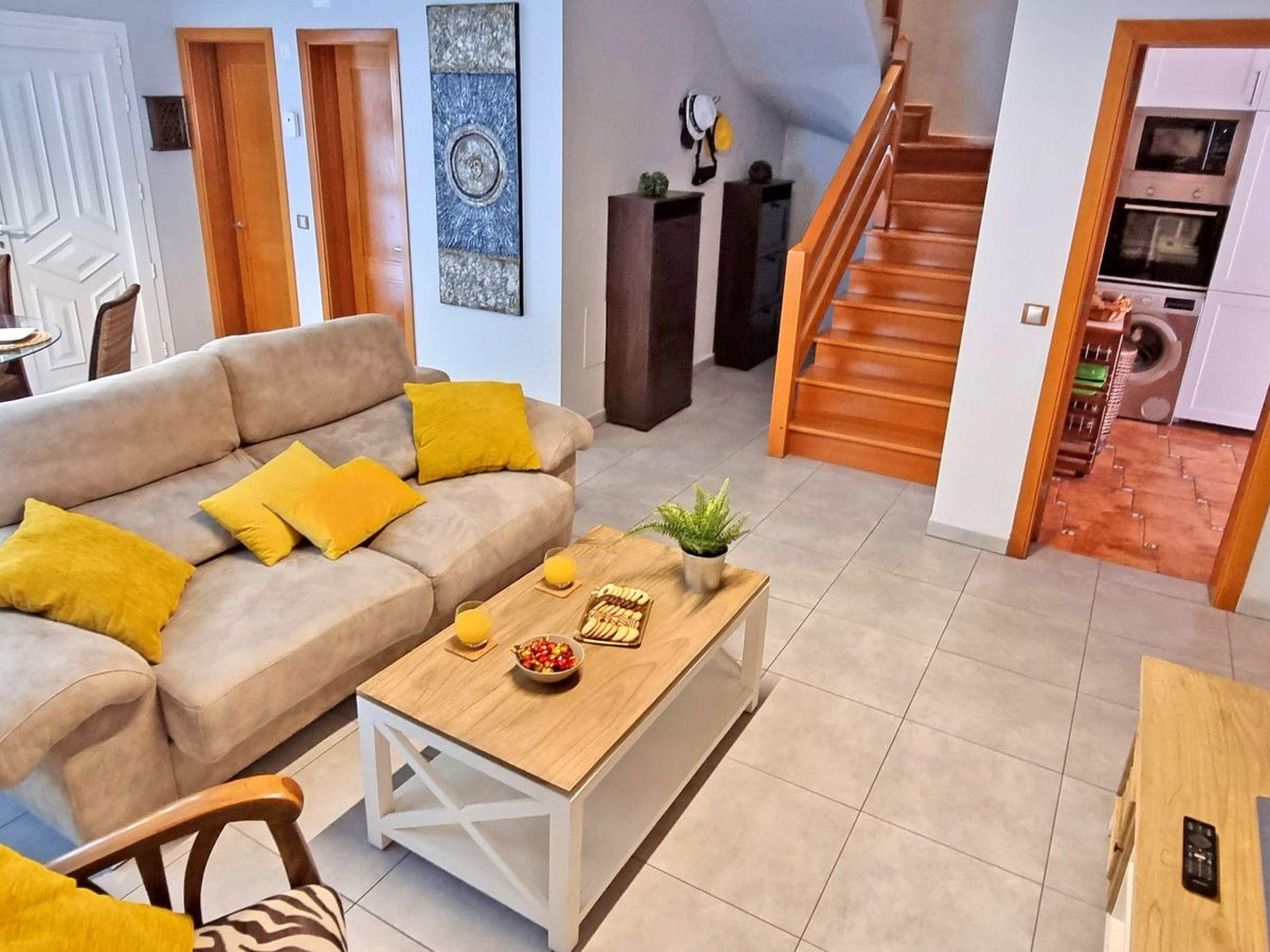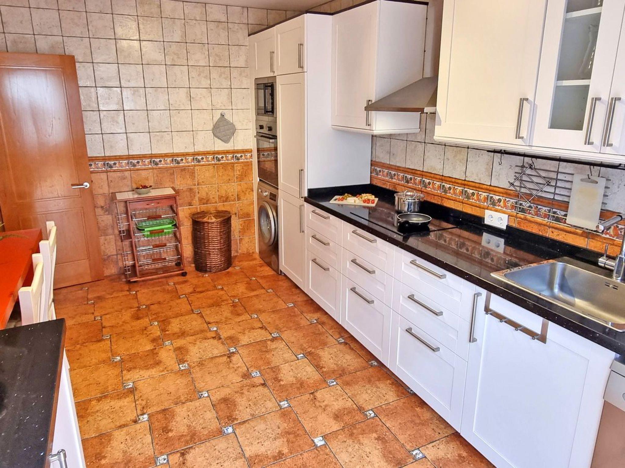 Inside, you will find four stylishly furnished bedrooms, one of which has air conditioning to keep you cool on warm nights. Two modern bathrooms with shower, an office for quiet moments, a cosy living and dining area with air conditioning, as well as a fully equipped kitchen with state-of-the-art appliances such as an induction cooker, coffee machine, dishwasher and kettle. There is also a washing machine in the property for your exclusive use, as well as a fitness room for your daily routine.