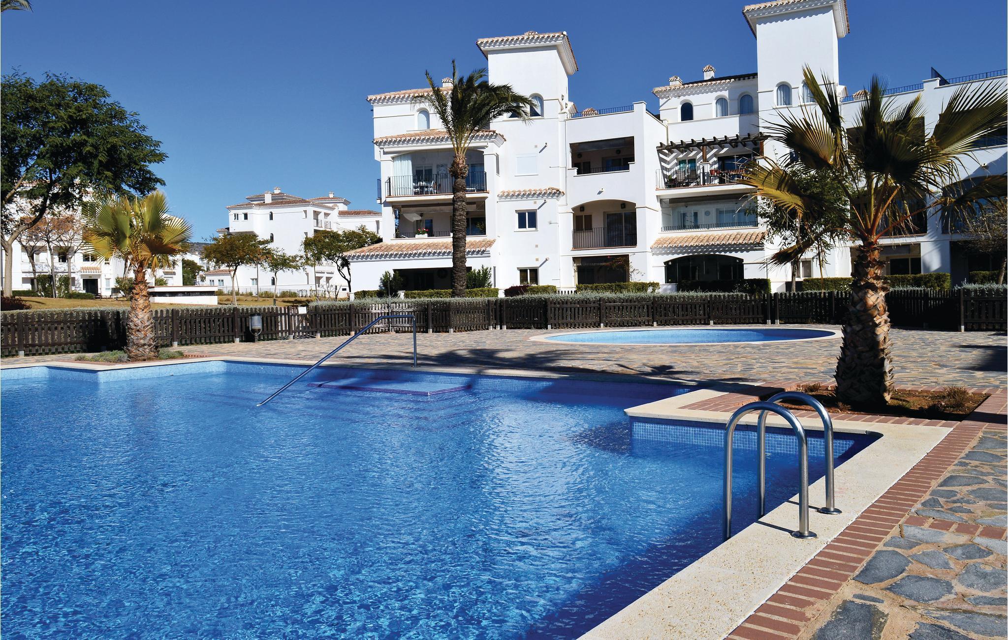 Denna vackra takvåning med en stor L-formad terrass har en fantastisk utsikt över Hacienda Riquelme golfresort och en av dess pooler. Dess 18-håls golfbana designades av den berömda golfaren Jack Nicklaus och är en av de bästa banorna i området.