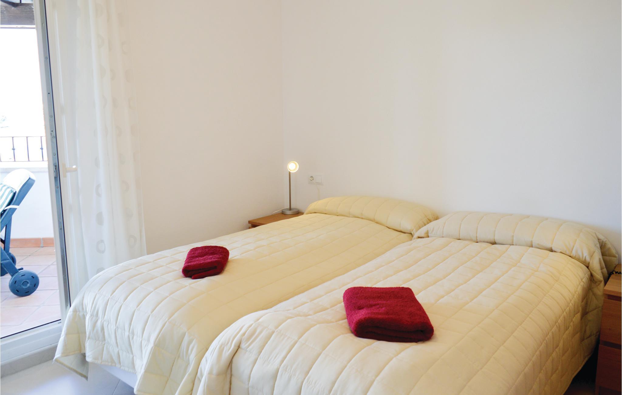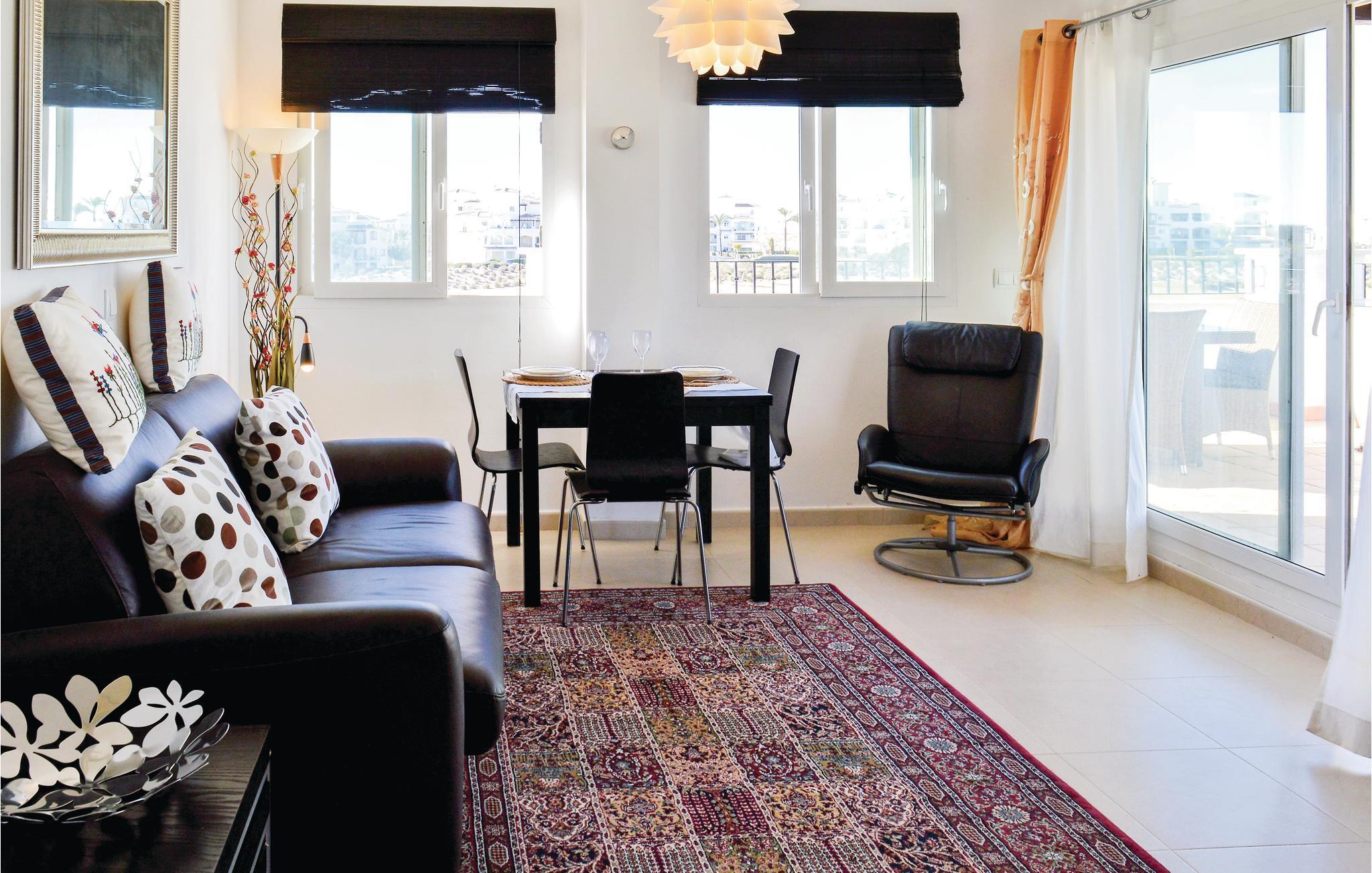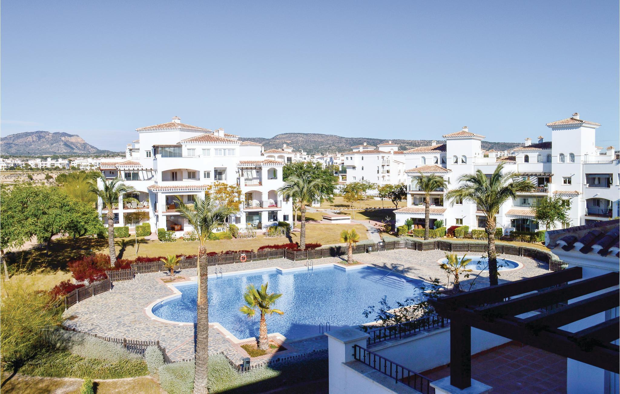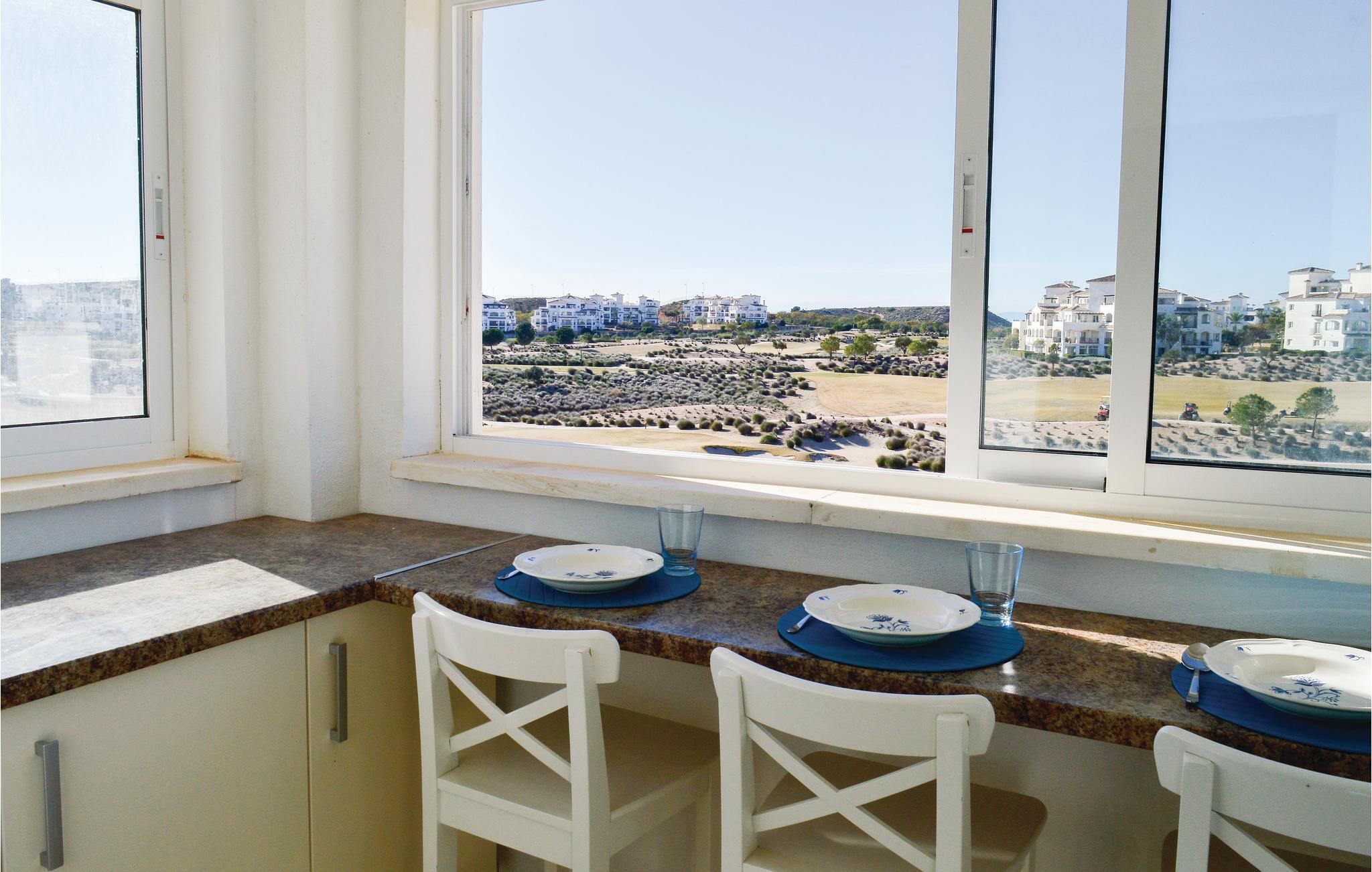 Lägenheten erbjuder bland annat ett kök med utsikt över golfbanan. Från det stora sovrummet har du tillgång till den härliga terrassen. Uppvärmning och luftkonditionering gör lägenheten lämplig för en semester under alla årstider. Anläggningen har 24-timmars bevakning och snabbköp, barer och restauranger ligger inom räckhåll.