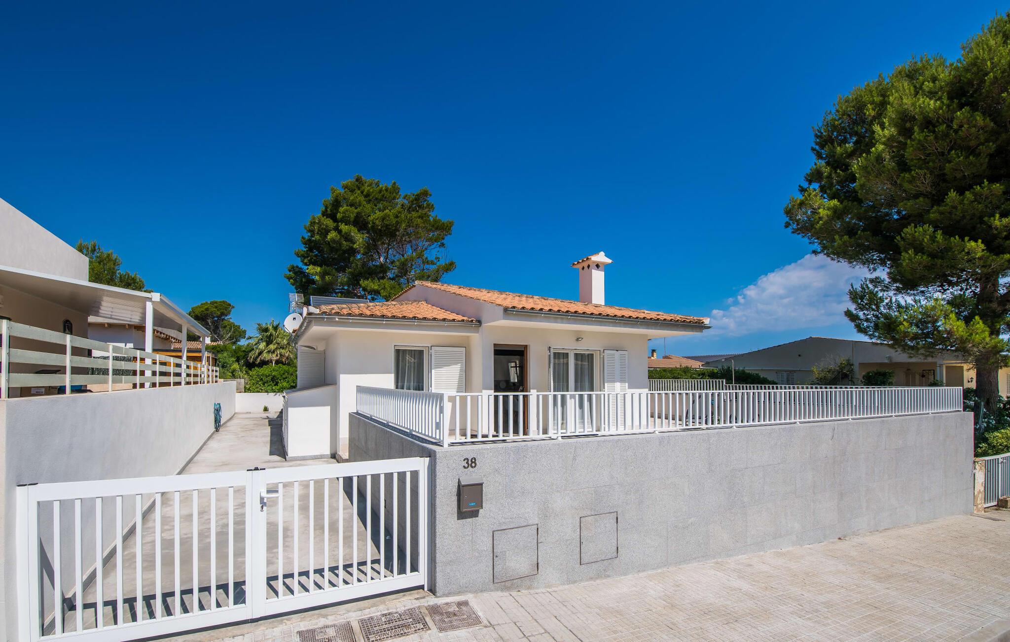 Ert semesterhus är centralt beläget mitt i byn och bara några minuters promenad från havet. Det finns en liten stormarknad i omedelbar närhet och den lugna marinan med 128 båtplatser kan nås på bara några minuter. Den ursprungliga karaktären hos den charmiga kustbyn Son Serra de Marina på nordöstra delen av ön återspeglas i den naturliga sandkusten; besökare kommer inte att stöta på stora hotell och massor av turister här. Tvärtom, denna ganska okända hotspot förtrollar sina gäster med ett vackert dynlandskap, stränder med fin sand och perfekta förhållanden för vattensportentusiaster. I kustens inland frodas den regionala floran: doftande rosmarinbuskar, enar, persikoträd och olivlundar gör att du kan glömma vardagens stress och jäkt. Byn är också känd för sin mycket speciella utsiktspunkt: Från det förhistoriska tornet Talaiot de sa Nineta kan du njuta av en fantastisk utsikt över Alcúdiabukten.