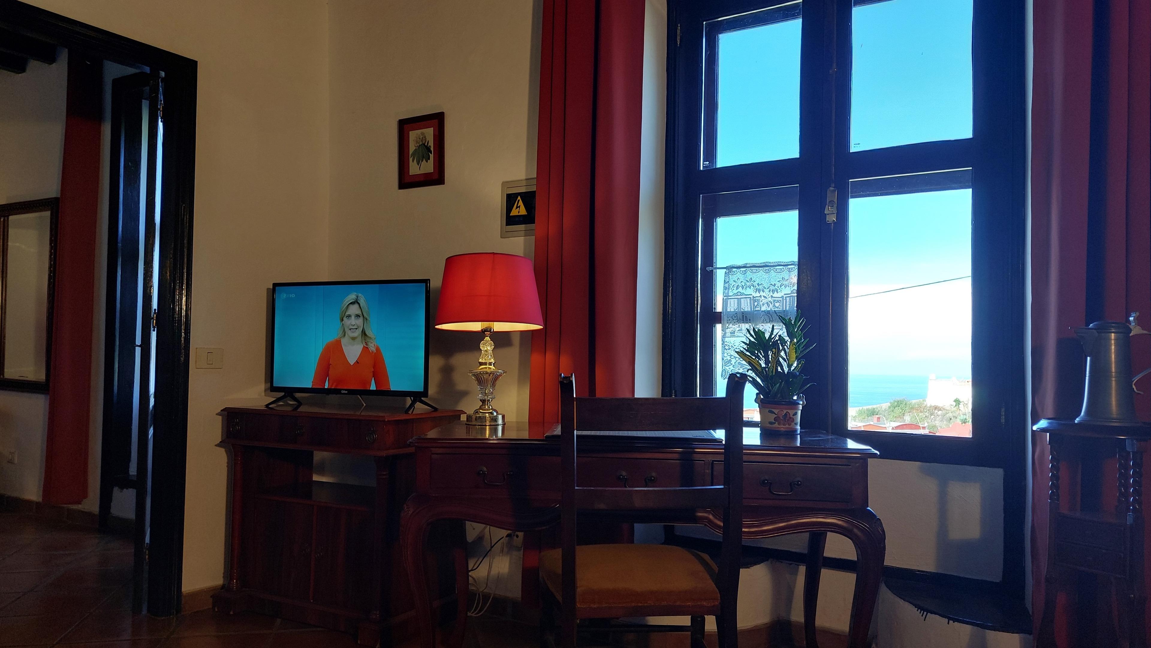 Diese im englischen Stil eingerichtete Ferienwohnung mit Meerblick liegt im ersten Stockwerk zur Landstraße (Dreifachverglasung). Es verfügt über ein Schlafzimmer, einen Wohnbereich mit Kochnische, Essecke, Schreibtisch und Sitzecke und ein Bad mit Dusche. Der Flachbildfernseher verfügt über Satellitenempfang mit ca. 450 internationalen Sendern- darunter alle frei empfangbaren deutschen Kanäle - sowie durch Umschalten auf der Fernbedienung über DVB-T-Empfang mit den gängigen spanischen Fernsehsendern. Zudem kann auf Anfrage kostenlos Netflix bereitgestellt werden. Unser Haus verfügt über Internetanschluss per Glasfaser und in allen Unterkünften sowie auf der Dachterrasse steht sehr gut funktionierendes W-LAN zur kostenlosen Verfügung.