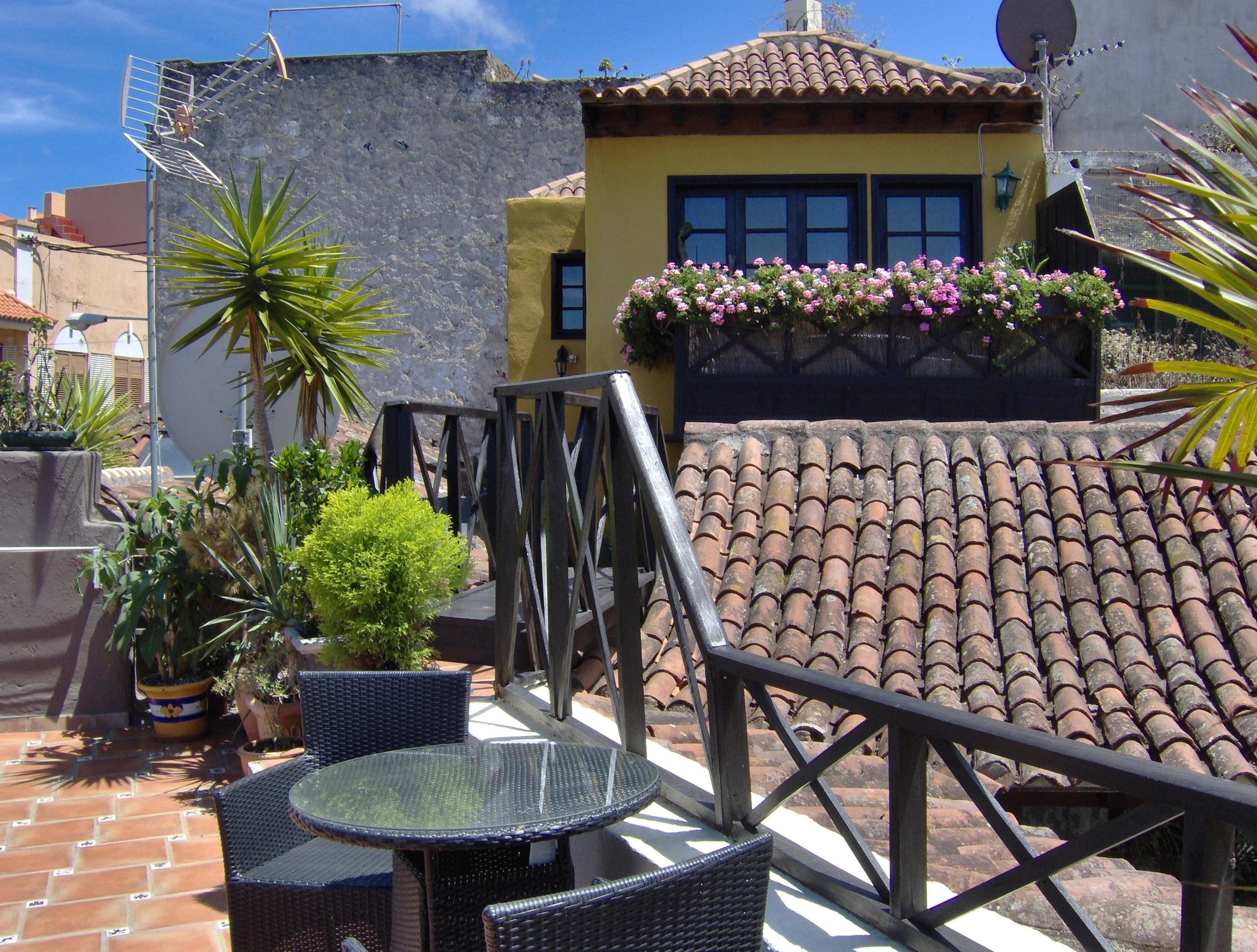 Modernes Wohnen im rustikalen Ambiente. Unsere Ferienwohnung im obersten Stockwerk bietet einen herrlichen Blick auf den Atlantik. Die im modernen Stil eingerichtete Ferienwohnung hat ein großzügig gestaltetes Wohnzimmer, eine gut ausgestattete direkt ans Wohnzimmer anschließende Küche, ein Schlafzimmer mit französichem Bett (150 cm) sowie ein Bad mit Toilette, Waschbecken, Bidet und Zwei-Personen-Sitzdusche. Vom privaten Balkon bietet sich ein freier Blick auf das Meer und das nahe gelegene Gebirge (kein Teide-Blick). Natürlich kann auch die große Gemeinschafts-Dachterrasse genutzt werden. Der Flachbildfernseher verfügt über Satellitenempfang mit ca. 450 internationalen Sendern- darunter alle frei empfangbaren deutschen Kanäle - sowie durch Umschalten auf der Fernbedienung über DVB-T-Empfang mit den gängigen spanischen Fernsehsendern. Zudem kann auf Anfrage kostenlos Netflix bereitgestellt werden. Unser Haus verfügt über Internetanschluss per Glasfaser und in allen Unterkünften sowie auf der Dachterrasse steht sehr gut funktionierendes W-LAN zur kostenlosen Verfügung.