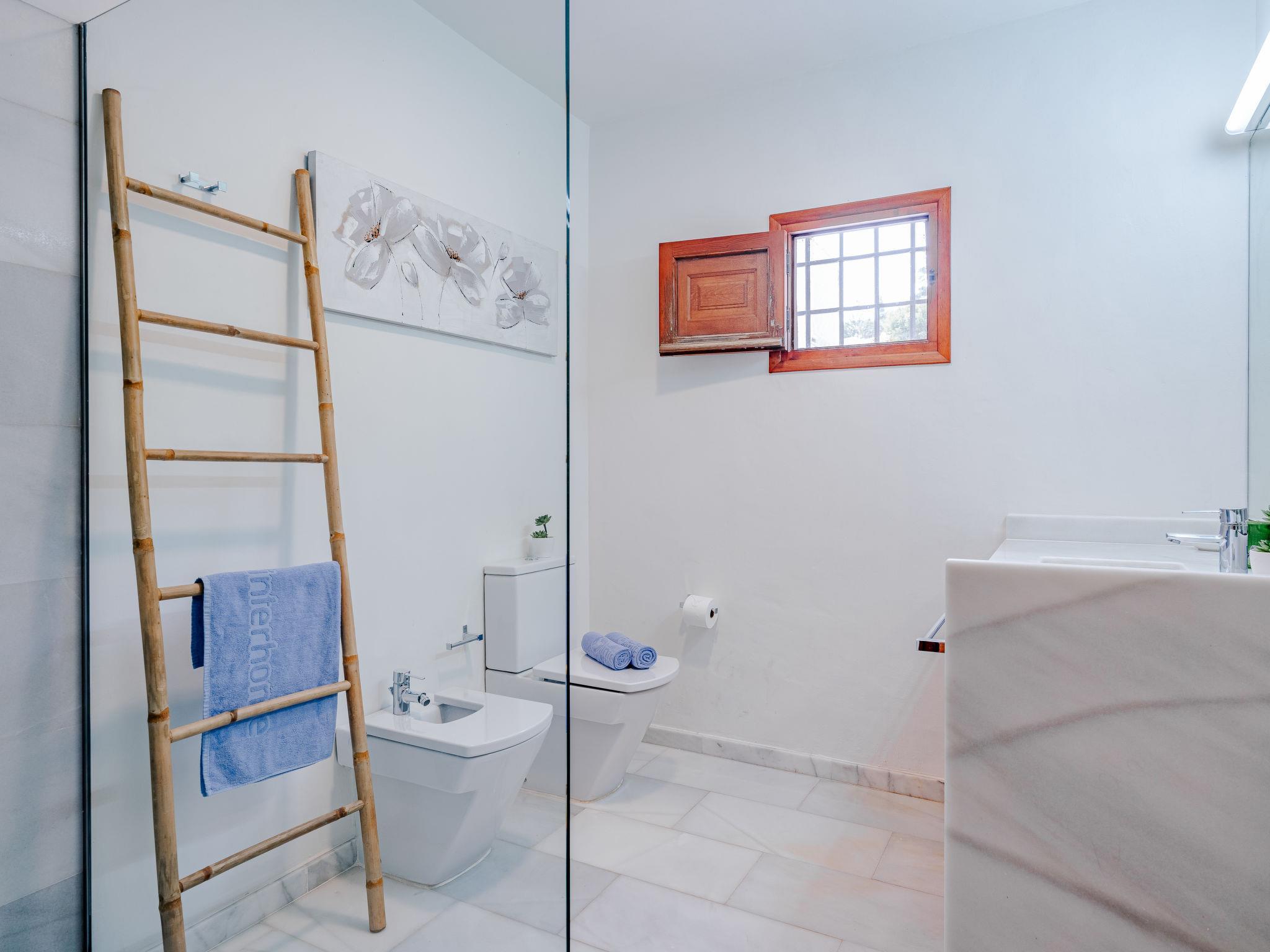 Large, beautiful house "Villa Pomelo Plus", 2 storeys. In the district of Tosalet, in a quiet, sunny position residential area (villas), 2.7 km from the sea, 2.7 km from the beach. Private: large, beautiful, well-kept terraced garden, swimming pool angular (8 x 4 m, depth 40 - 210 cm, seasonal availability: 01.Jan. - 31.Dec.) with internal staircase. Outdoor shower, pergola, garden furniture, barbecue. In the house: table tennis. Stepped path to the house. Parking on the premises. Supermarket 2.3 km, restaurant 2.3 km, café 2.3 km, bus stop 3 km, sandy beach "El Arenal" 3.4 km, rocky beach "Cala Blanca" 2.7 km. Sports harbour 4 km, surf school 3.4 km, tennis 3.5 km. The owner does not accept any youth groups.