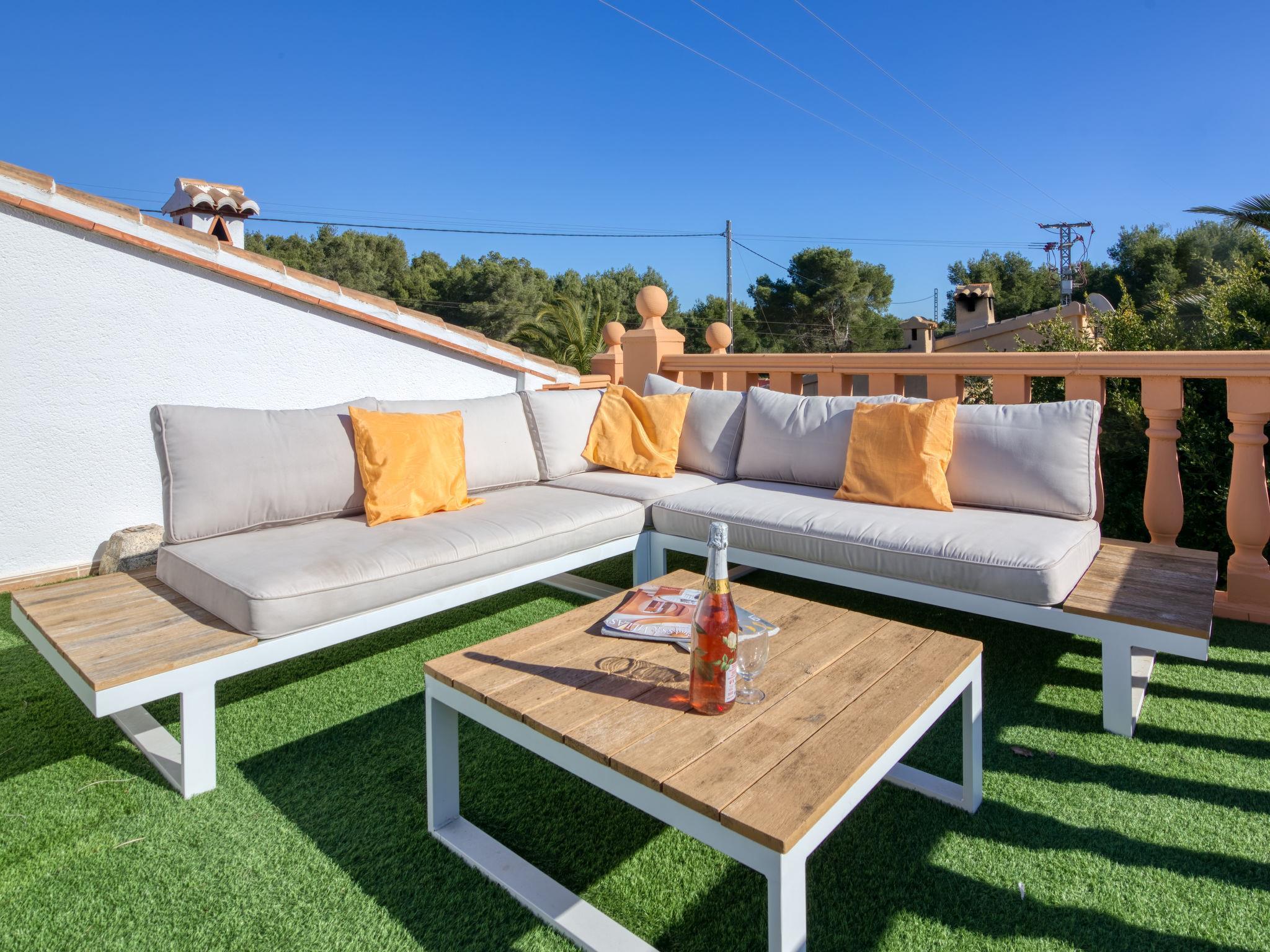 Large, cosy, comfortable house "Harmony". In the district of Panorama, 5 km from the sea, 5 km from the beach. Private: wildlife garden and trees, natural garden, beautiful garden to relax, swimming pool angular (9 x 5 m, depth 110 - 210 cm, seasonal availability: 01.Jan. - 31.Dec.) with internal staircase. Terrace, garden furniture, parking on the premises. Grocery 2.3 km, restaurant 350 m, bar 650 m, bus stop "Toscamar" 2.9 km, sandy beach "El Arenal" 4.3 km, shingle beach "La Granadella" 2.6 km, rocky beach "Cala Blanca" 3.2 km. The owner does not accept any youth groups.