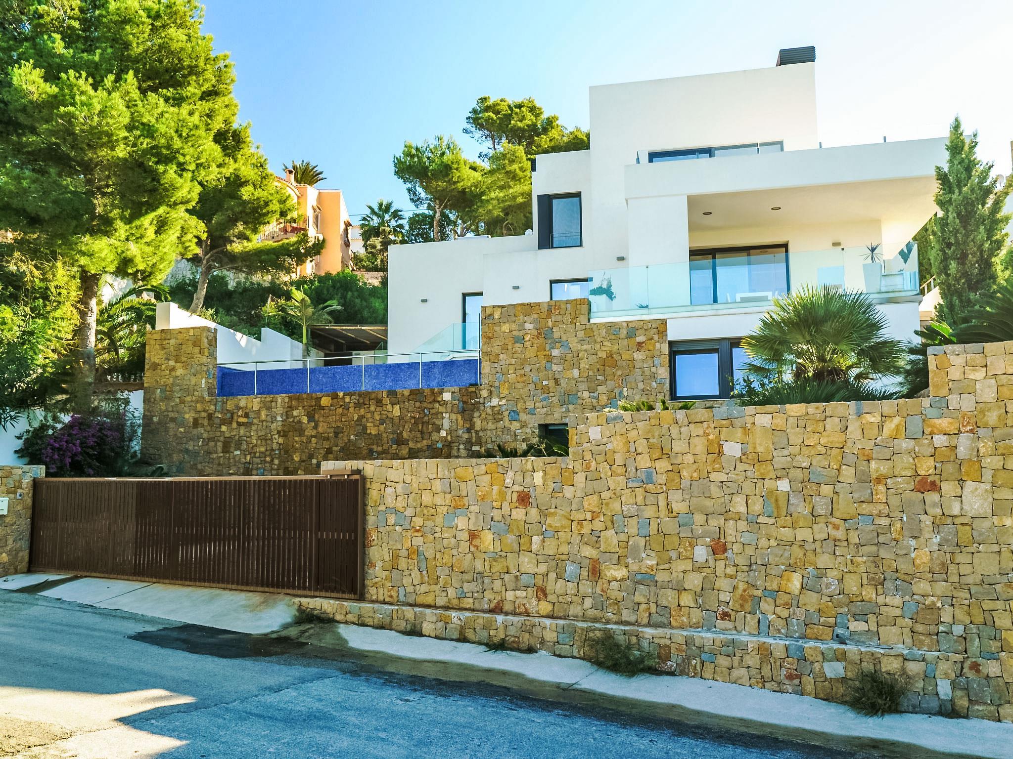 Modern, luxurious villa "Solymar", 3 storeys. In the district of Balcón al Mar, in a quiet, sunny position, 5 km from the sea. Private: garden 800 m2 (fenced) with wildlife garden, swimming pool (4 x 8 m, seasonal availability: 01.Jan. - 31.Dec.) with internal staircase. Shower/WC in the pool area. Supermarket 6 km, restaurant 1.3 km, bus stop 8 km, sandy beach "Arenal" 8 km, rocky beach "Granadella" 5 km. Groups of teenagers on request only.