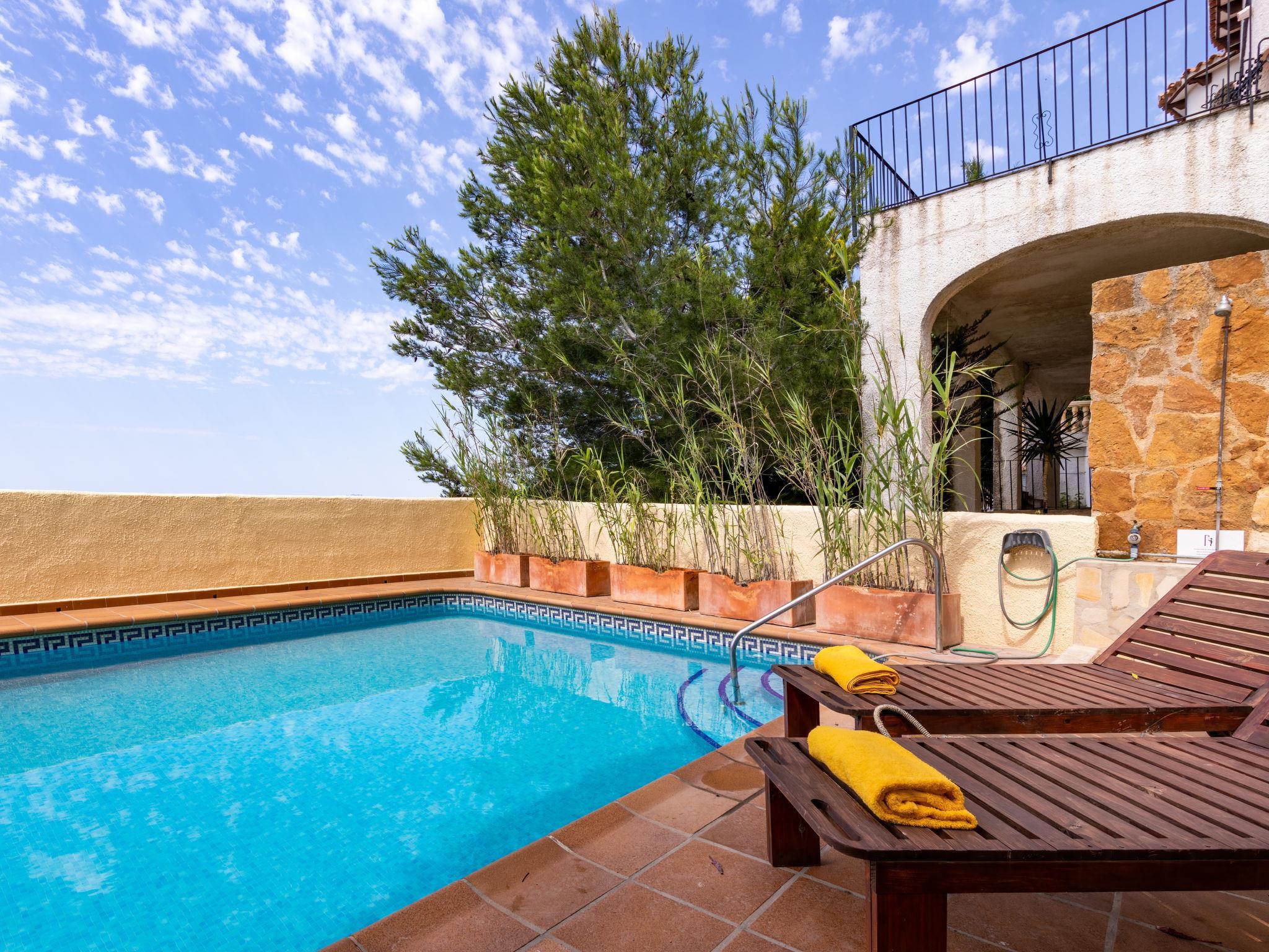 House "Igor", 2 storeys. In the district of Balcón al Mar, in a sunny position on a slope, residential area (villas), 500 m from the sea, south facing position. Private: terraced garden (fenced) with wildlife garden and trees, swimming pool (5 x 12 m, depth 110 - 180 cm, seasonal availability: 01.Jan. - 31.Dec.) with internal staircase. Outdoor shower. Stepped path (17 steps) to the house. Public parking on the road. Supermarket 1 km, restaurant 600 m, bus stop "Toscamar" 4.6 km, sandy beach "Arenal" 8 km pebble beach "La Barraca" 5 km, shingle beach "Granadella" 5 km. Please note: not suitable for small children. Owner lives in separate semi-detached house. The owner rarely occupies the upper floor.