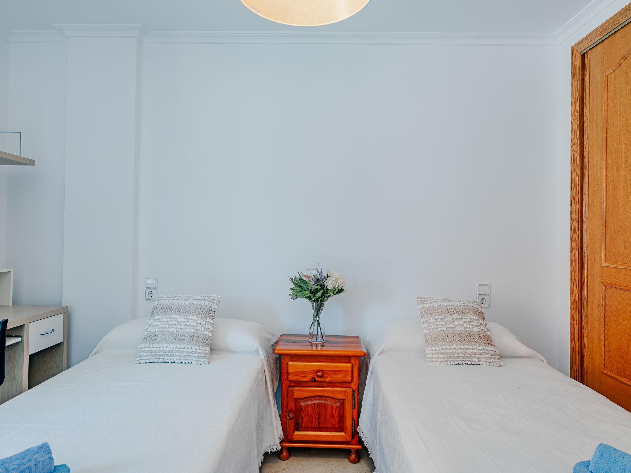 "Jardines del Puerto", 3-room apartment 70 m2. Spacious and bright, comfortable and stylish furnishings: living/dining room with digital TV and air conditioning. Exit to the terrace. 1 room with 1 french bed (150 cm, length 200 cm), bath/WC and air conditioning. 1 room with 2 beds (90 cm, length 200 cm), air conditioning. Kitchen (oven, dishwasher, 4 ceramic glass hob hotplates, toaster, microwave, freezer, electric coffee machine). Shower/WC. Underfloor heating. Terrace 12 m2. Terrace furniture. Facilities: washing machine, iron, hair dryer. Internet (WiFi, free). Parking space n A67 (roofed). Please note: TV only ES. VT-511870-A // Reg. Nr.: ESFCTU00000307100057467600000000000000000VT-511870-A9