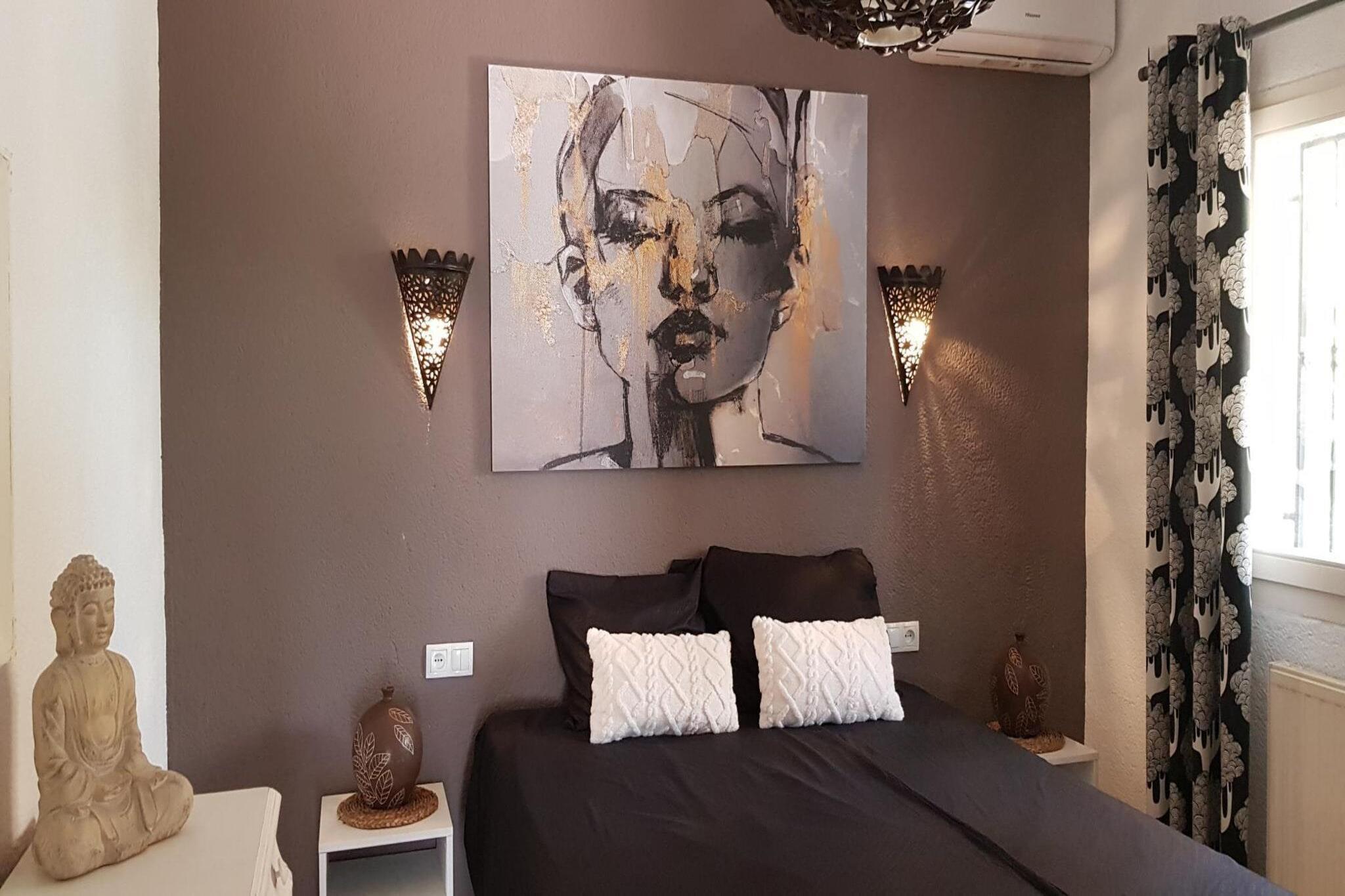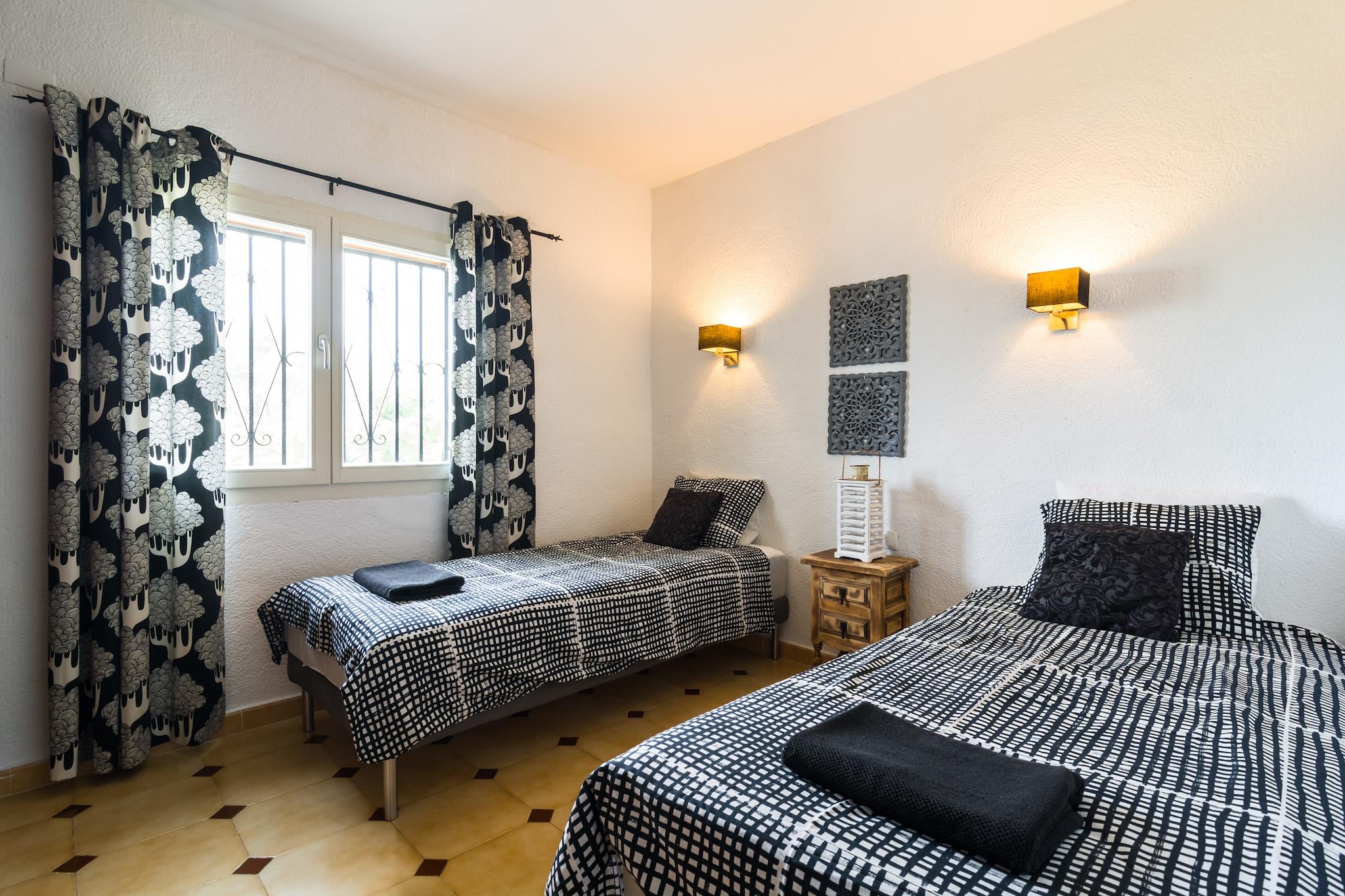 Denna trevligt inredda villa är utrustad med mycket komfort, en inhägnad trädgård och ett underbart läge nära havet. Perfekt för en solig familjesemester på Costa Blanca. Beundra den magnifika utsikten över berget Montgó och ta en trevlig promenad där. Inlandet är rikt på gamla slott och pittoreska byar där tiden tycks ha stått stilla. Värt att nämna är också fyren Cap de la Nau, som än i dag fungerar som en ledstjärna för fartyg till havs. Villan ligger i ett lugnt område, inom gångavstånd från en trädbevuxen park. Här kan barnen leka lugnt på den vackra lekplatsen medan du njuter av lugnet och naturen i skuggan av träden. Du hittar den nödvändiga kylningen i den privata poolen med utomhusdusch och du kan njuta av solen på den täckta terrassen eller på sidoterrassen, som pryds av ett imponerande fikonträd och ett mysigt träbord.