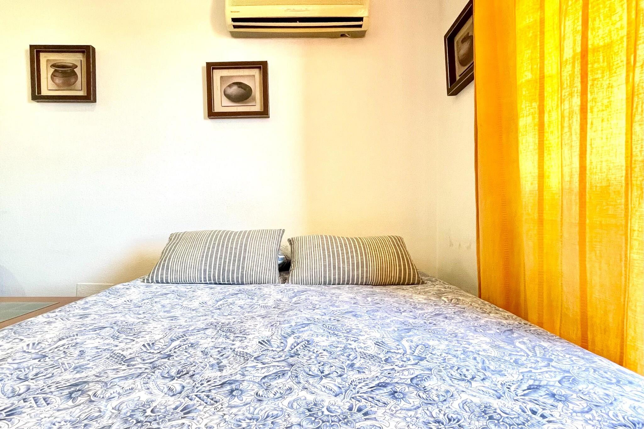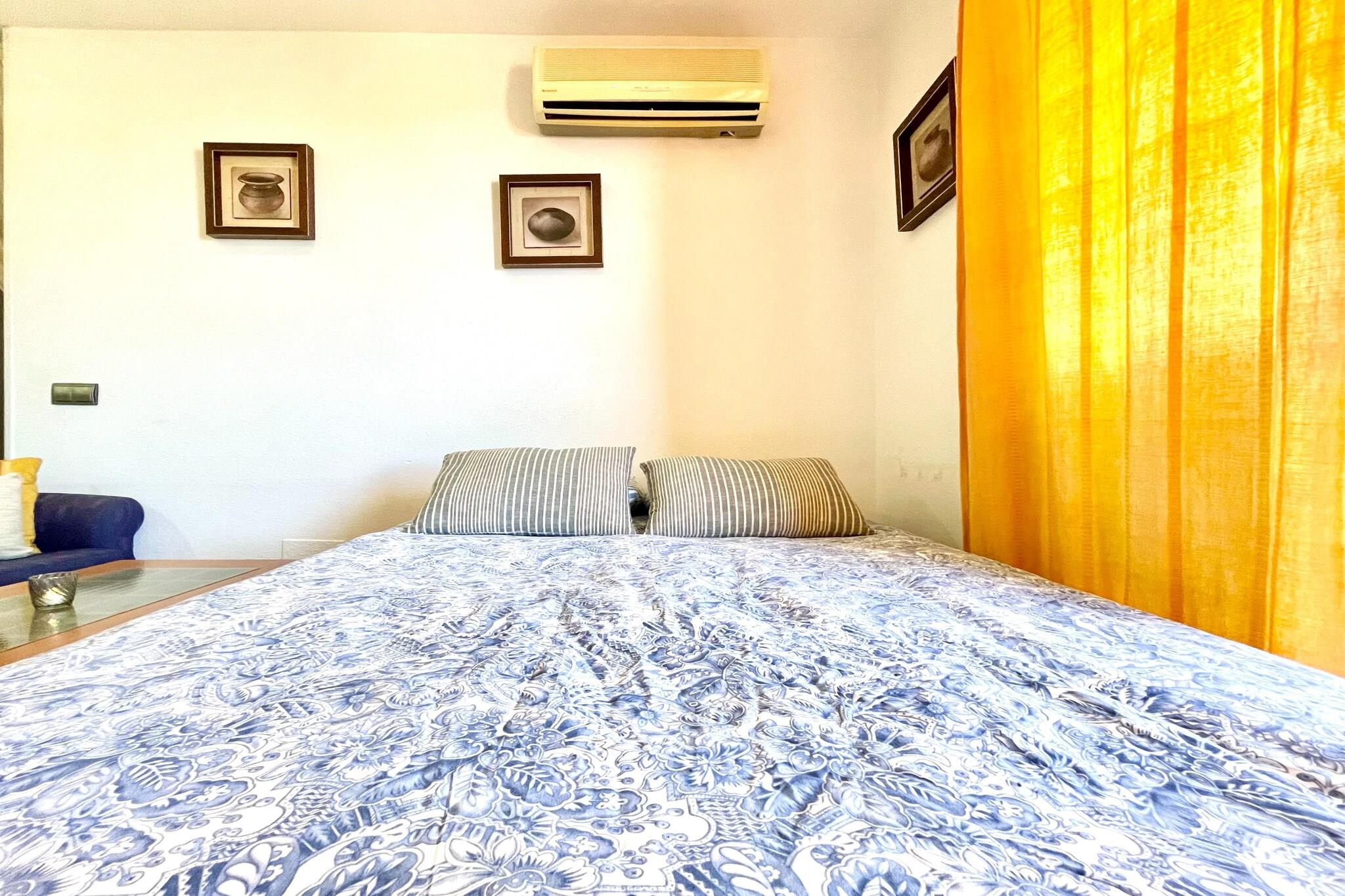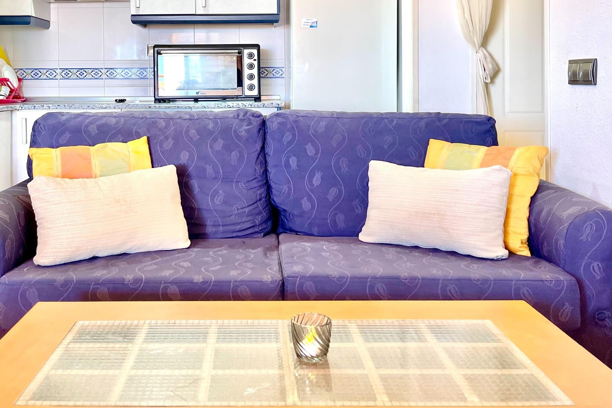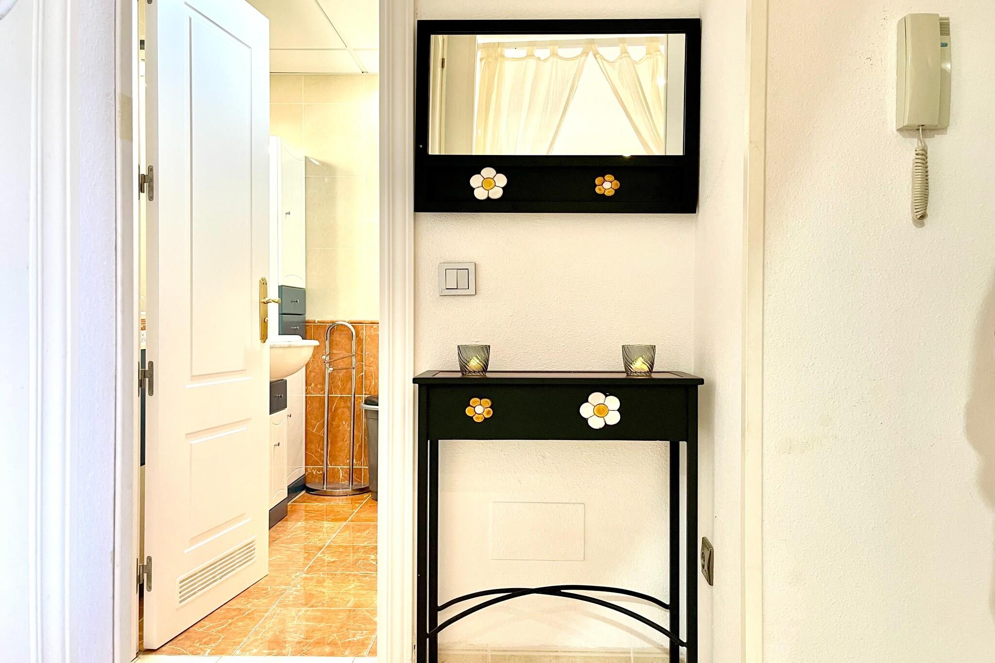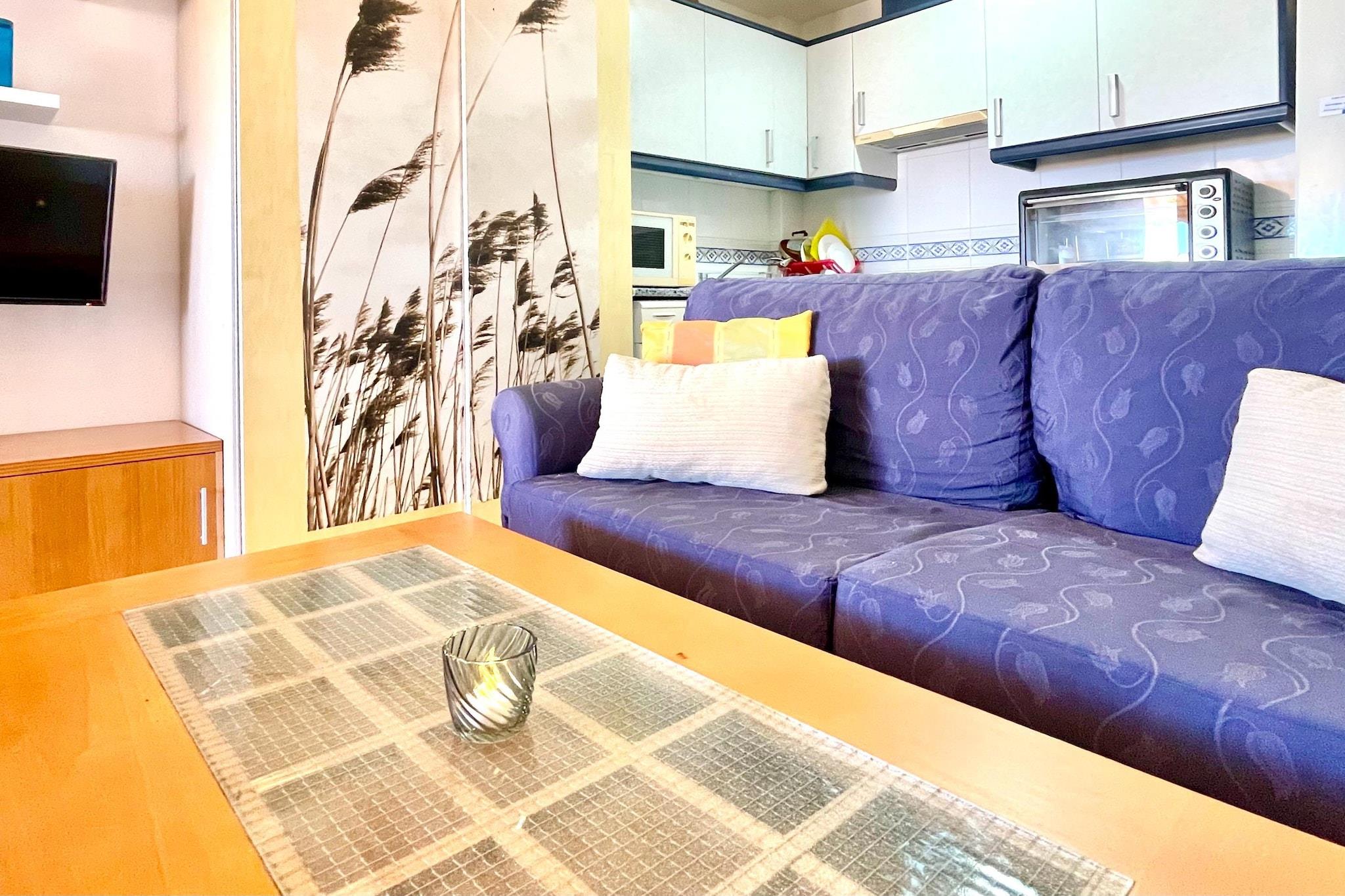 Välkommen till din idealiska tillflyktsort för två i vackra La Envía! Denna charmiga lägenhet på 8:e våningen erbjuder allt du behöver för en avkopplande semester. Lägenheten nås via en bekväm hiss från bottenvåningen och har ett mysigt vardagsrum utrustat med en bäddsoffa för 2 personer, en matplats, en TV och en bekväm sittgrupp - perfekt för att varva ner efter en dag av utforskning. Gå ut på din privata terrass, där du kan njuta av solen på solstolar medan du njuter av enastående utsikt. För extra avkoppling, gå upp till 9:e våningen, där du hittar en gemensam relaxavdelning med bubbelpool och solarium - perfekt för att varva ner med stil. Det öppna köket är välutrustat med spishäll och andra nödvändiga apparater, vilket gör det enkelt att tillaga läckra måltider under din vistelse. Det inbjudande sovrummet har en dubbelsäng, vilket garanterar en god natts sömn. Njut av komfort året runt med luftkonditionering och en luft-till-luft värmepump. Bekväm parkering finns i garaget, vilket gör din vistelse ännu mer problemfri. Oavsett om du vill utforska de närliggande stränderna, njuta av lokala rätter eller bara koppla av i en vacker miljö, är denna lägenhet i La Envía den perfekta hembasen för din semester. Boka din vistelse idag och upplev charmen med detta härliga resmål!