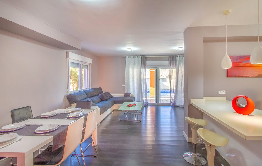 Huset välkomnar dig på ett fantastiskt läge med gångavstånd till stranden. Koppla av i de ljusa rummen, som med sin moderna inredning och livliga färger erbjuder en idealisk miljö för din semesteravkoppling. På kvällen kan du göra det bekvämt i den rymliga soffan, gå igenom dagens upplevelser och prata till sent på kvällen.