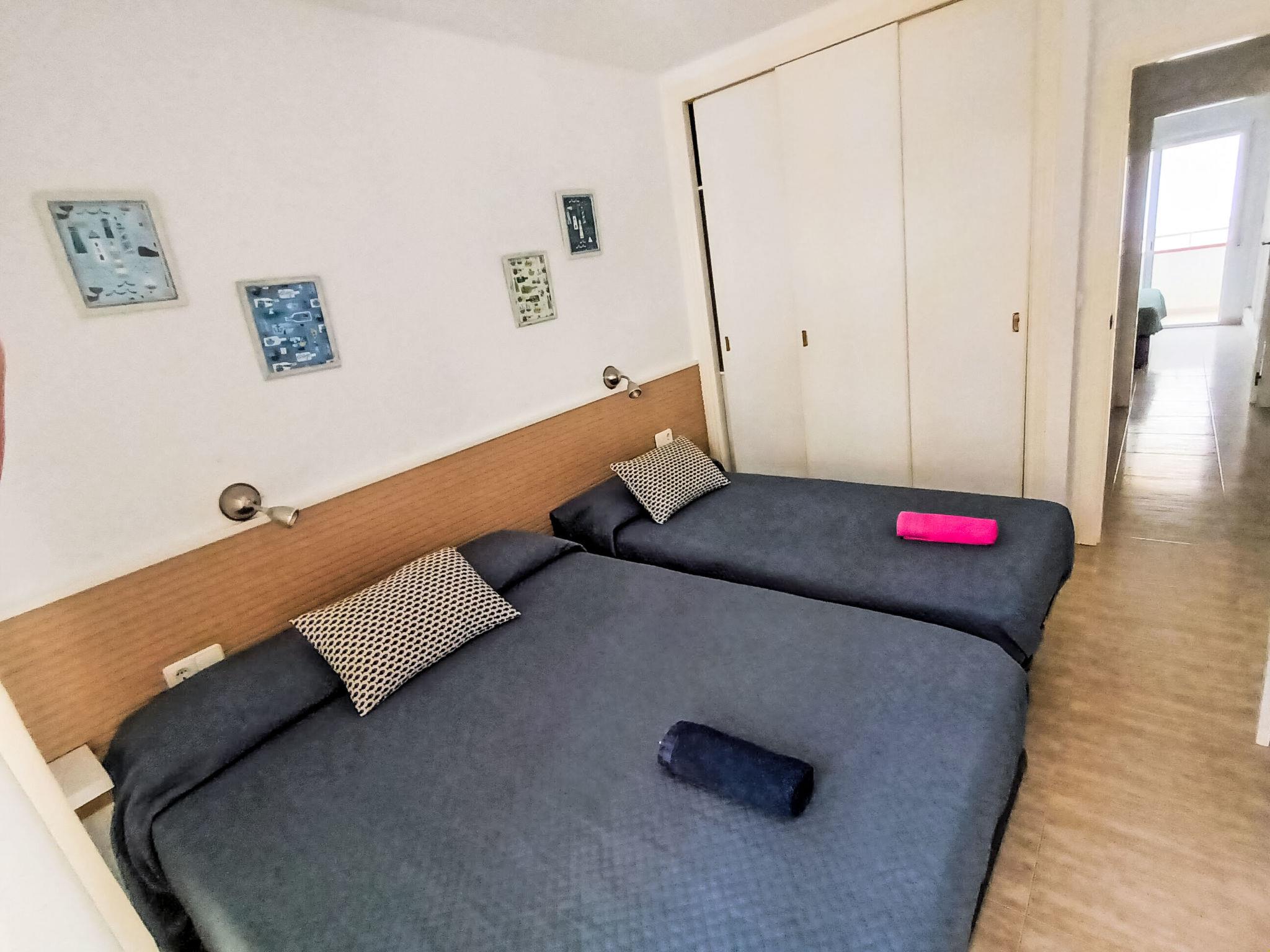 "Los Ibicencos", 3-room apartment 90 m2 on 5th floor. Practical and comfortable furnishings: living/dining room with dining table, digital TV, flat screen and fan. Exit to the terrace. 1 room with 1 french bed (150 cm, length 190 cm), fan. Exit to the terrace. 1 room with 1 bed (90 cm, length 190 cm), 1 french bed (150 cm, length 190 cm), fan. Kitchen (oven, dishwasher, 3 ceramic glass hob hotplates, toaster, kettle, microwave, freezer, electric coffee machine). Shower/bidet/WC. 2 terraces. Terrace furniture. View of the sea. Facilities: washing machine, iron, children's high chair, baby cot for up to 2 year olds, hair dryer. Internet (WiFi, free). Please note: suitable for families. Non-smokers only. VV.MU.2822-1 // Reg. Nr.: ESFCTU000030032000319821000000000000000000VV.MU.28222
