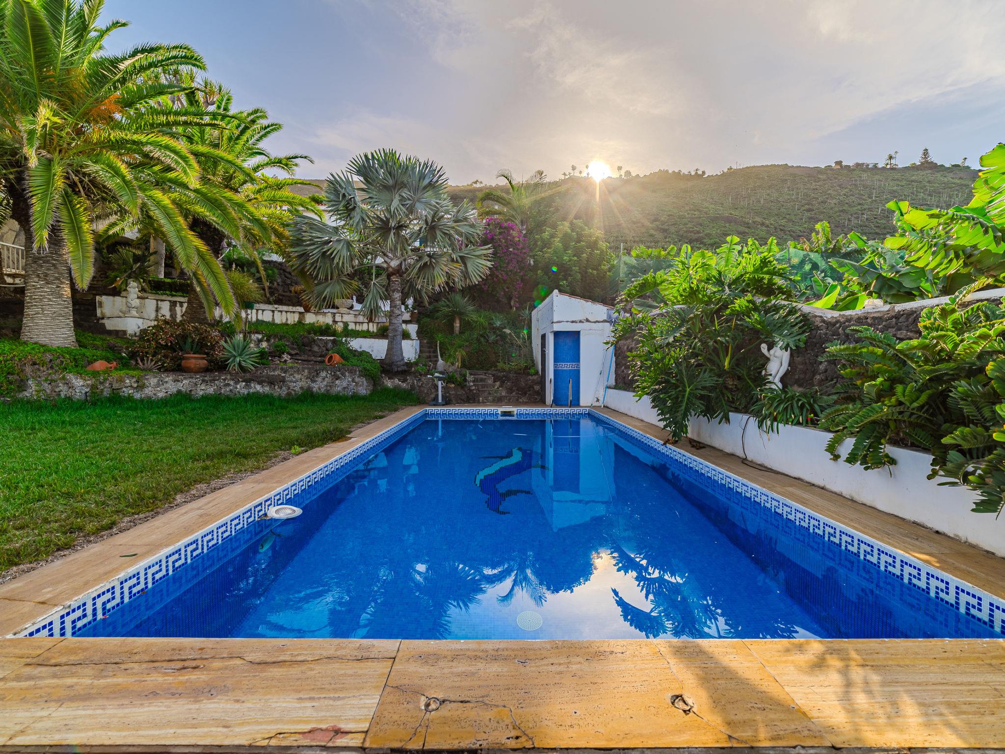 Residence "El Caletón", 100 m a.s.l.. 3 apartments in the residence. 6 km from the centre of La Matanza, on a slope, 600 m from the sea. For shared use: property 3'000 m2, garden with lawn and plants, lawn for sunbathing, swimming pool (10 x 5 m, seasonal availability: 01.Jan. - 31.Dec.). WC in the pool area, outdoor shower, patio, garden furniture, barbecue house. In the house: washing machine (for shared use, extra). 2.3 km long motor access (mountain road). Stepped path to the house. Public parking on the road. Shop 6 km, grocery 3.5 km, supermarket 6 km, bar 3.5 km, bus stop "La matanza" 4 km, sandy beach 17 km. Please note: car recommended. The owner lives on the same property.