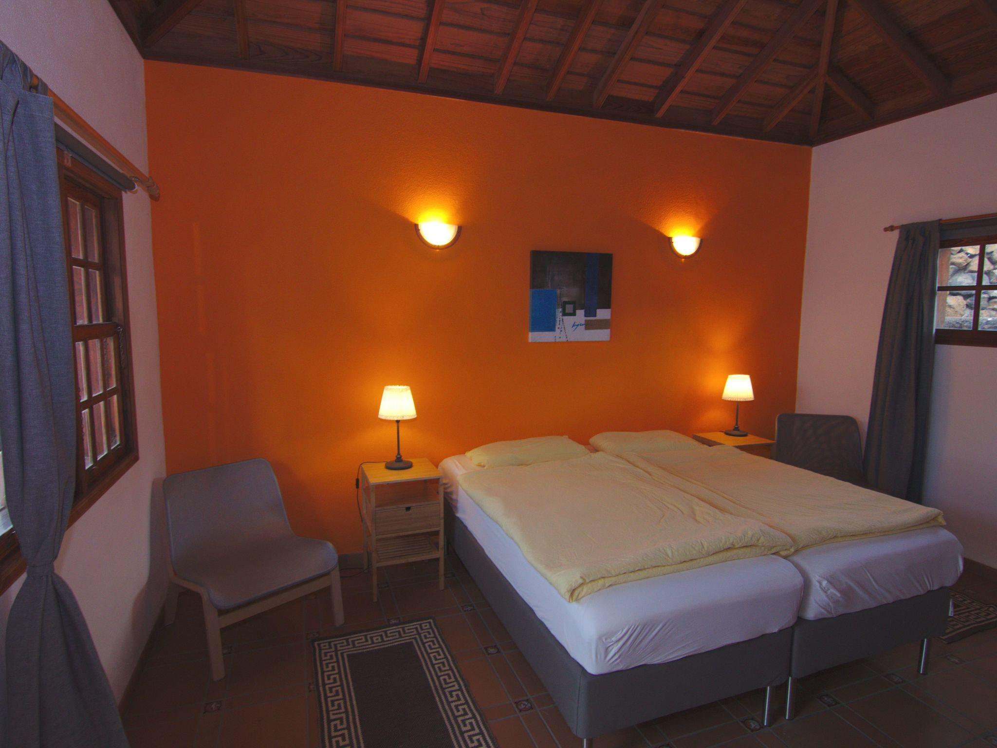 The property consists of two small, cosy, typical Canary houses, only a few meters apart. In the upper house are the two both furnished with a double bed (two mattresses 0.90 m x 2.00 m), the spacious and modern bathroom with a shower, a hairdryer, a sink, a washing machine and a toilet. One of the bedrooms has a typical Canary wooden roof. The other building, the lower house, houses the large living room with open plan kitchen, furnished with a large dining table, a sofa, a satellite television and a stereo. A circular arch and a service hatch partially separate the kitchen from the living room. The kitchen is furnished with a gas stove, a dishwasher, a toaster, a refrigerator with a freezer compartment and a coffee maker. This house also has a wooden roof, giving it a cosy atmosphere. The house also offers wireless internet access.