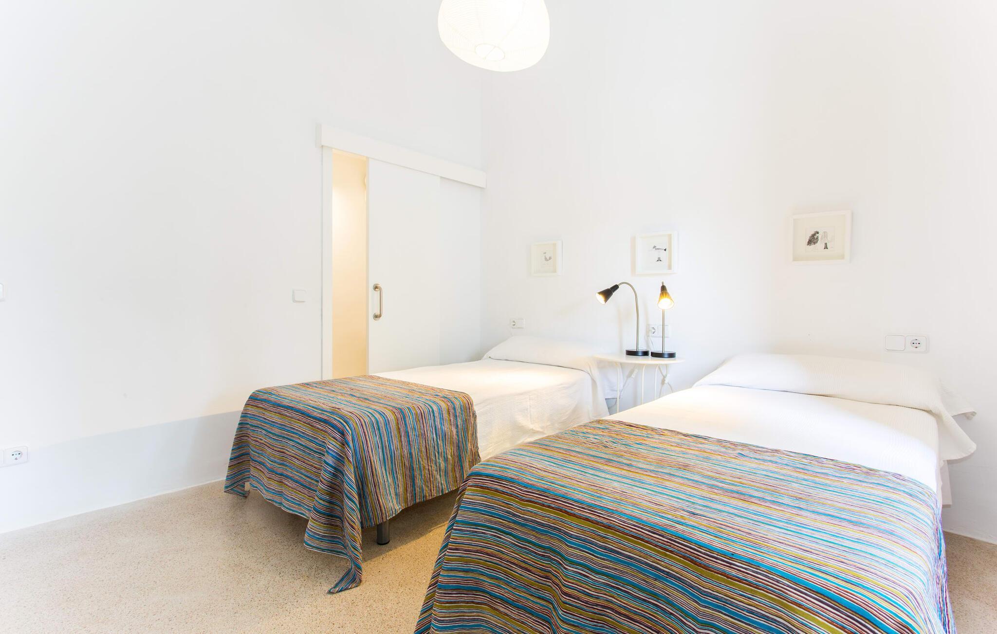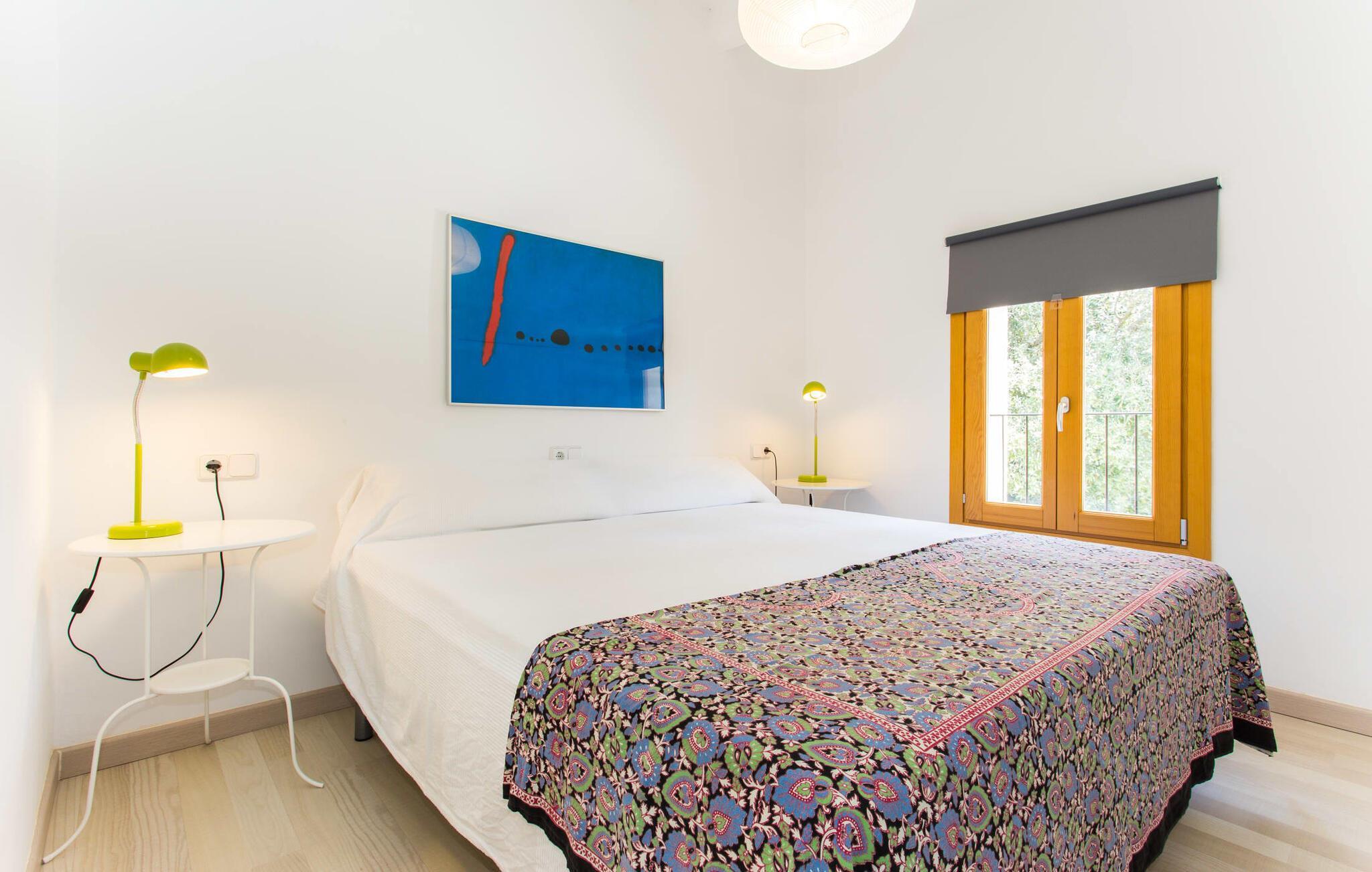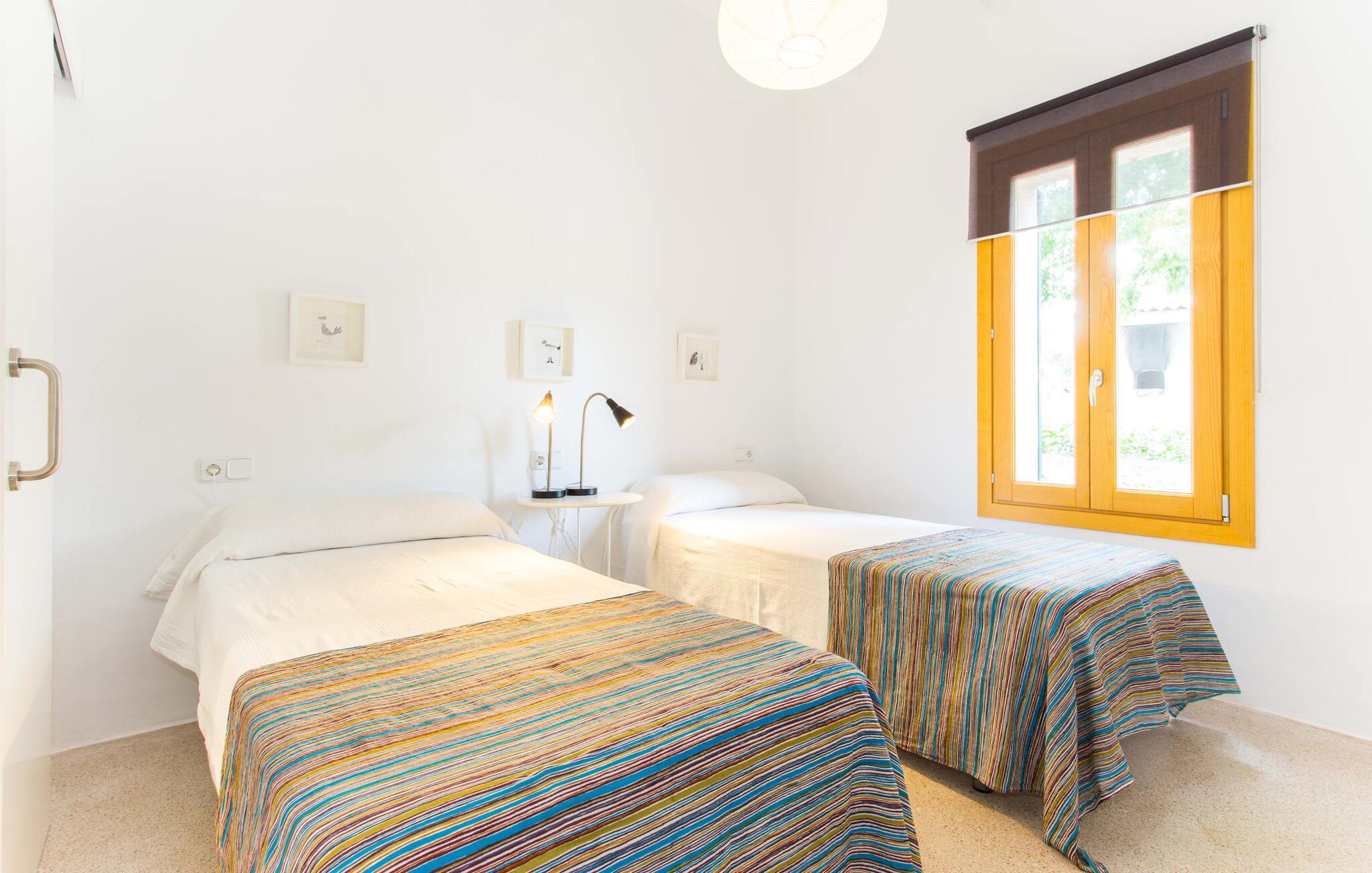 Insidan av huset välkomnar dig med sin vita interiör. Kort sagt: ljust, vänligt och modernt. Egenskaper som ofta förknippas med skandinavisk design. Men var så säker: Du behöver inte frukta nordeuropeiska temperaturer på Mallorca, även om det skulle vara perfekt för kvällar när du tittar på gnistorna i den öppna spisen i Recamière-soffan. Om du tittar åt andra hållet kan du få en glimt av vad som händer i ditt hemland på platt-TV:n, som tar emot utländska kanaler tack vare satellitteknik. Kanske vill du se en film som stimulerar din fantasi innan du sakta glider in i drömmarnas land med nya bilder i huvudet. Tack vare den bekväma madrassen, som är lika ny som huset självt, kan du vara säker på att njuta av en vilsam natts sömn. Det finns två sovrum på bottenvåningen, vart och ett med två enkelsängar som kan skjutas ihop till en dubbelsäng. På övervåningen finns ytterligare ett sovrum med två enkelsängar. Rummen är moderna och enkla i sin utformning. Två av dem är dessutom inredda med färgglada tavlor. Om du vill sova i gult/rött eller blått är helt upp till dig. Ett annat stort rum på övervåningen är det perfekta lekrummet för dina barn. Det finns två praktiska badrum, vart och ett med dusch där ni kan skölja av er det salta havsvattnet på kvällen.