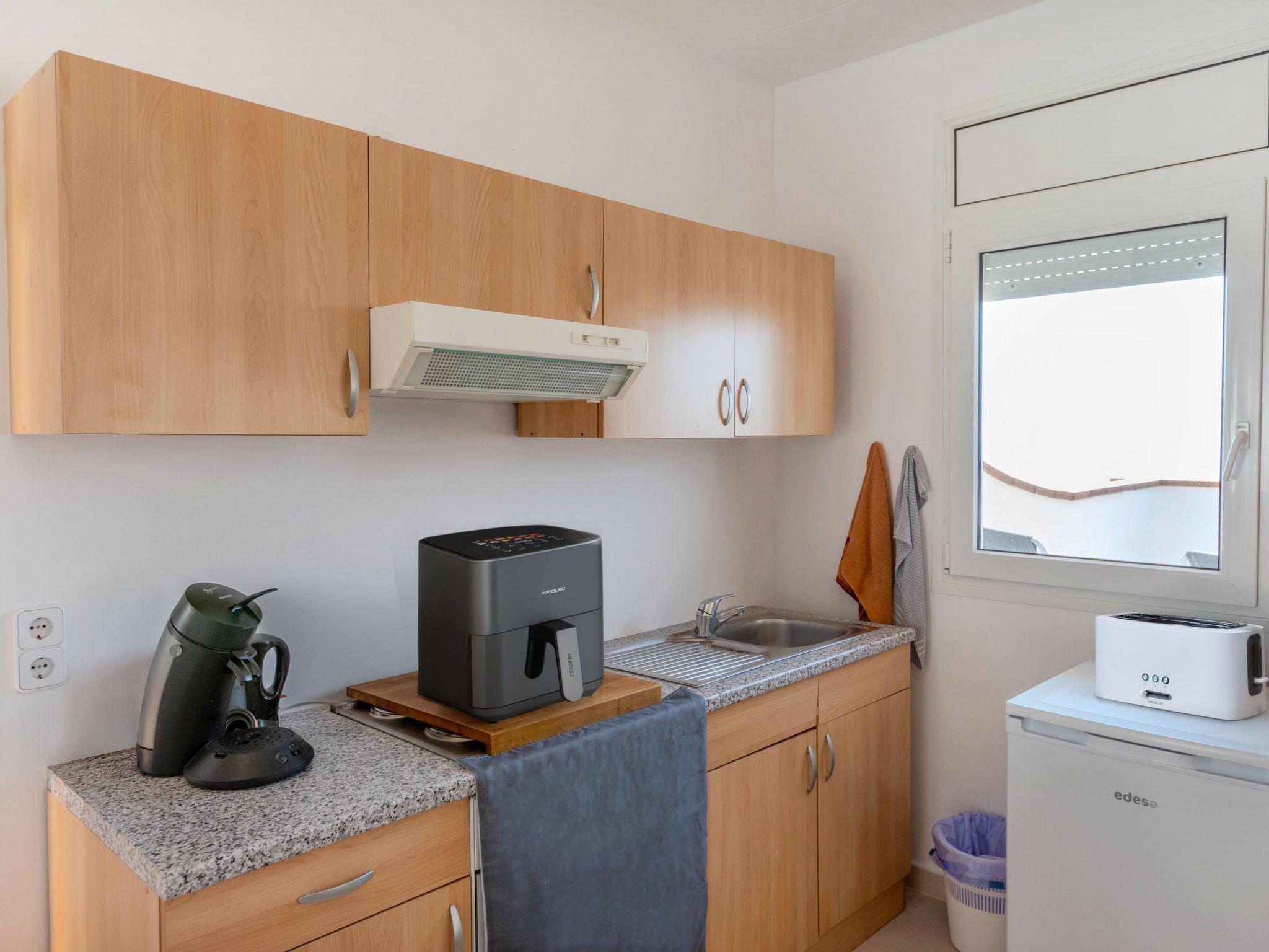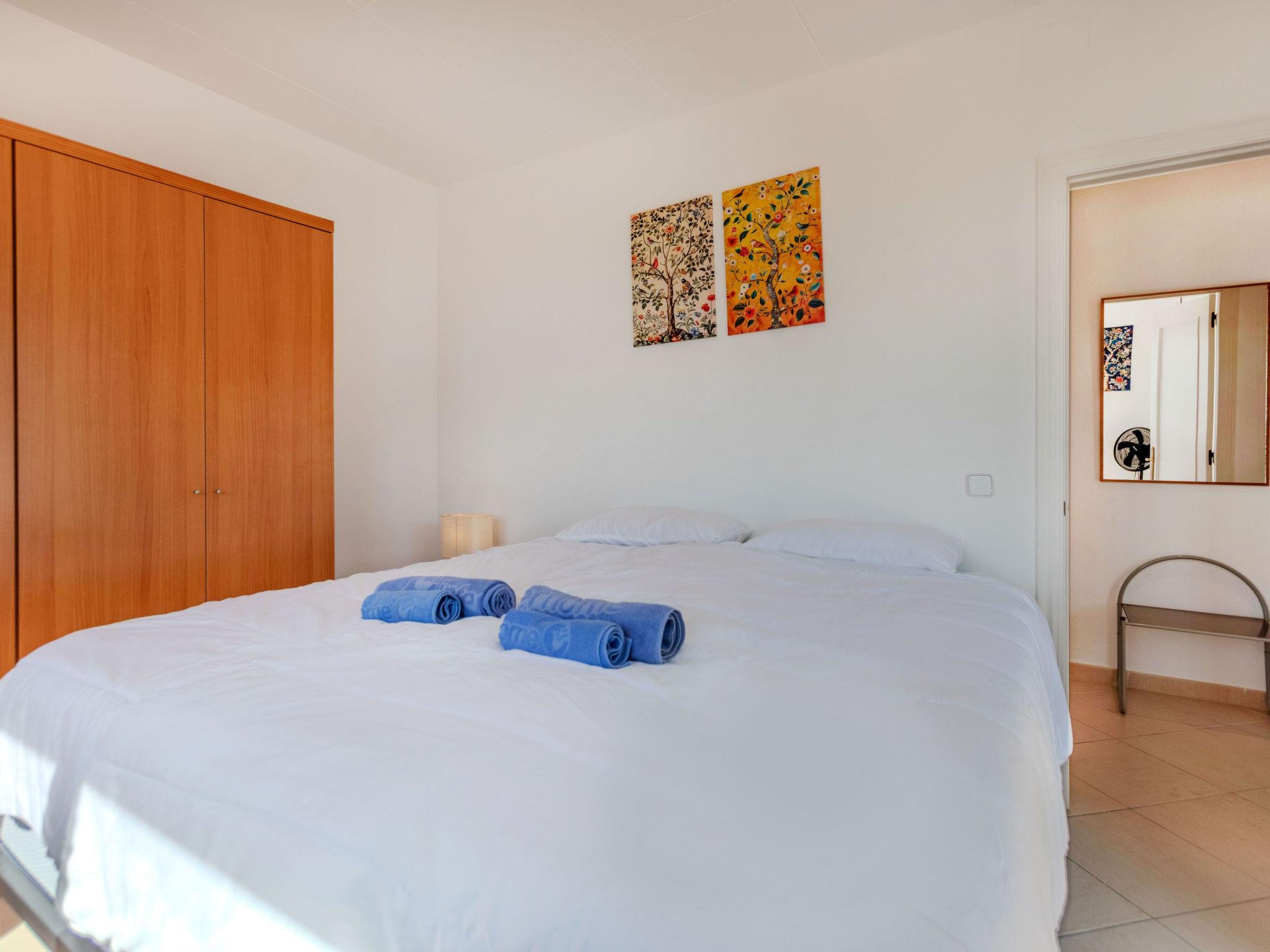 "Capelans", 2-room apartment 47 m2, on the upper floor. Very practical and comfortable furnishings: living/dining room with 1 sofabed (140 cm, length 190 cm), dining table, digital TV and international TV channels. Exit to the terrace. 1 double bedroom with 1 french bed (160 cm, length 190 cm). Exit to the terrace. Kitchenette (toaster, kettle, microwave, electric coffee machine, Capsules for coffee machine (Senseo)). Shower/WC. Heating, forced-air heating. Large terrace 45 m2. Terrace furniture, barbecue. Distant view of the sea and the resort. Facilities: iron, hair dryer. Internet (WiFi, free). Parking (fenced 1 car). Please note: 1 small pet/ dog allowed. TV only ES, FR, DE. LLG-001356-93 // Reg. Nr.: ESHFTU000017013000361576002000000000000LLG-001356-935
