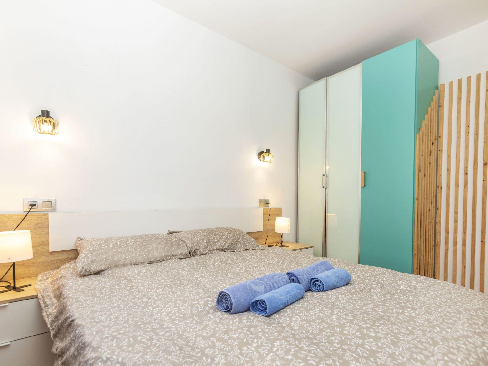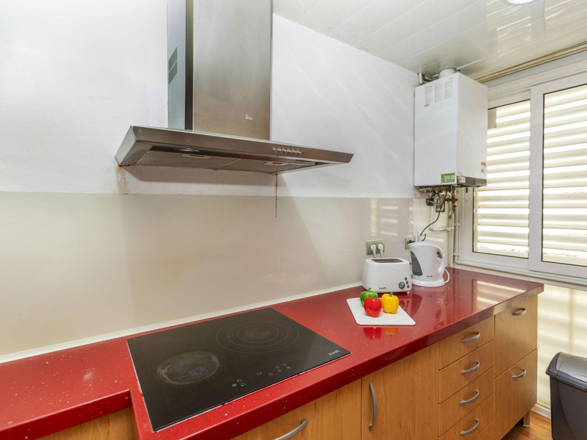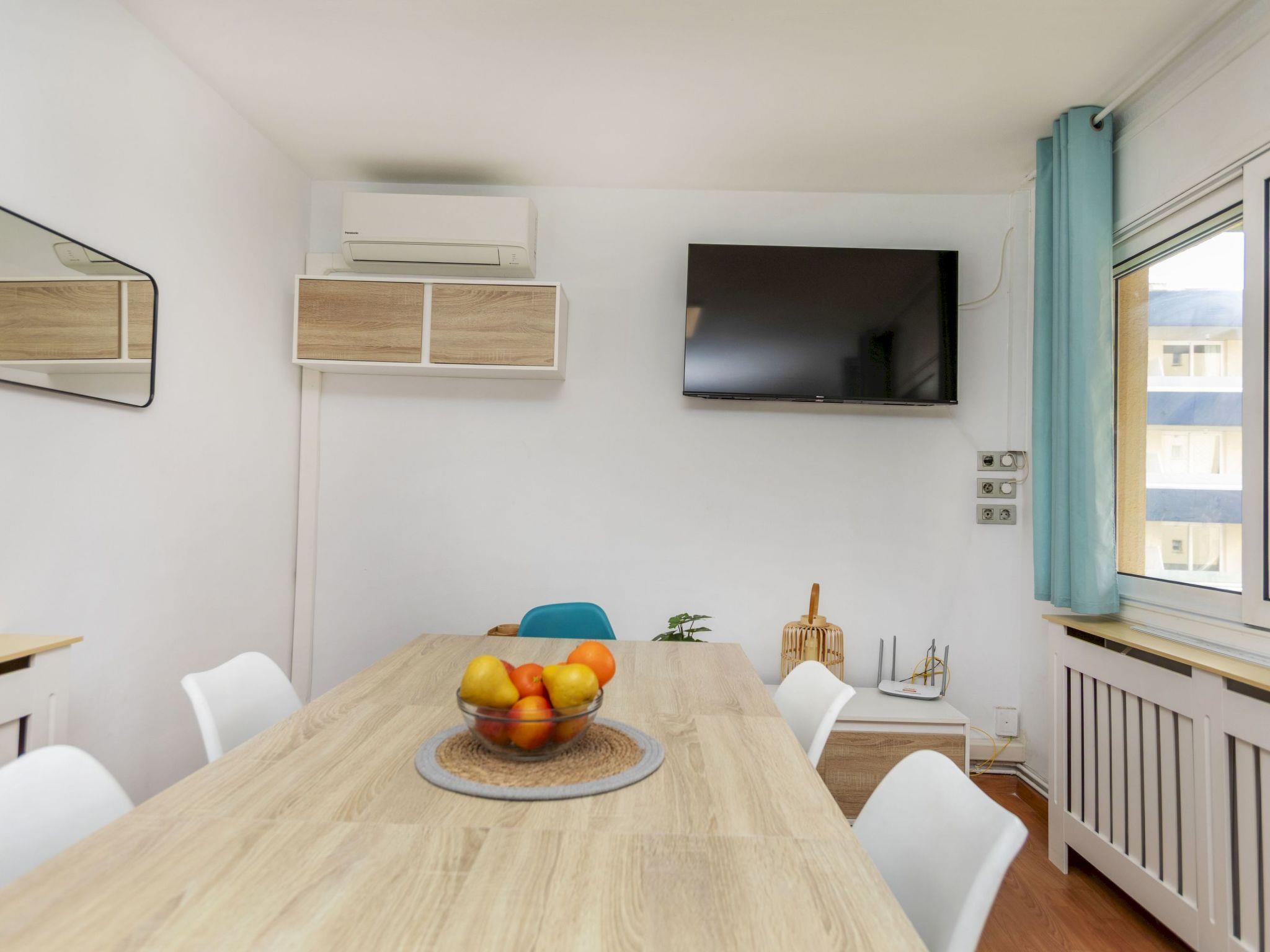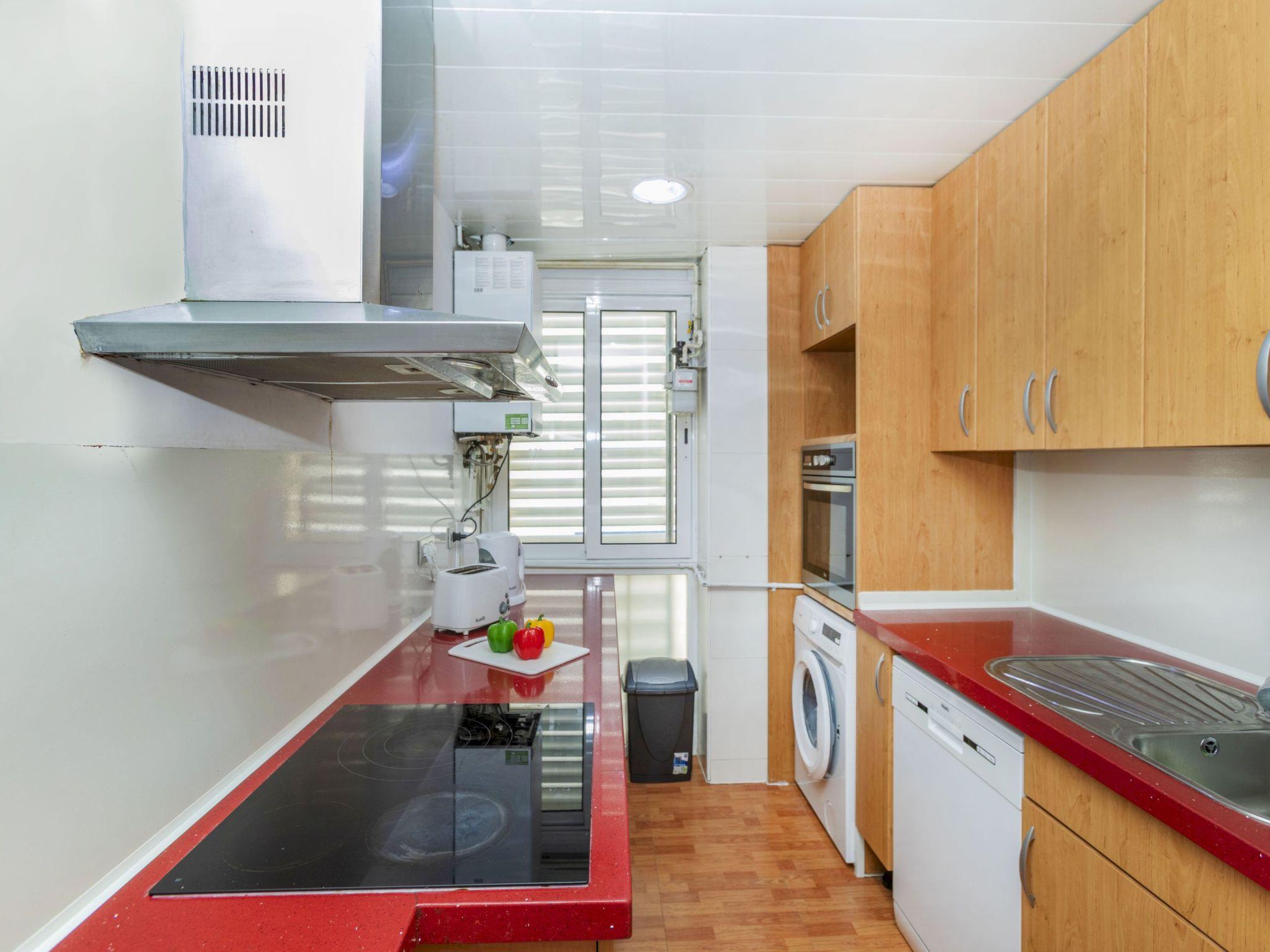 "Rioplata", 4-room apartment 112 m2. Living/dining room with dining table and digital TV. Exit to the balcony. 2 double bedrooms, each room with 2 french beds (135 cm, length 190 cm). 1 double bedroom with 2 beds (90 cm, length 190 cm). Kitchen (oven, dishwasher, 4 ceramic glass hob hotplates, toaster, kettle, microwave, electric coffee machine). 2 showers/WC. Air-conditioning, forced-air heating. Balcony furniture. View of the resort. Facilities: washing machine, iron, hair dryer. Internet (WiFi, free). Please note: TV only ES. HUTG-025337 // Reg. Nr.: ESFCTU00001701300036307500000000000000HUTG-025337-673