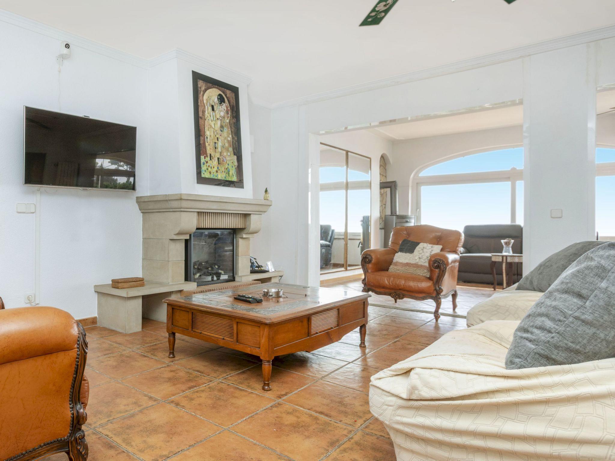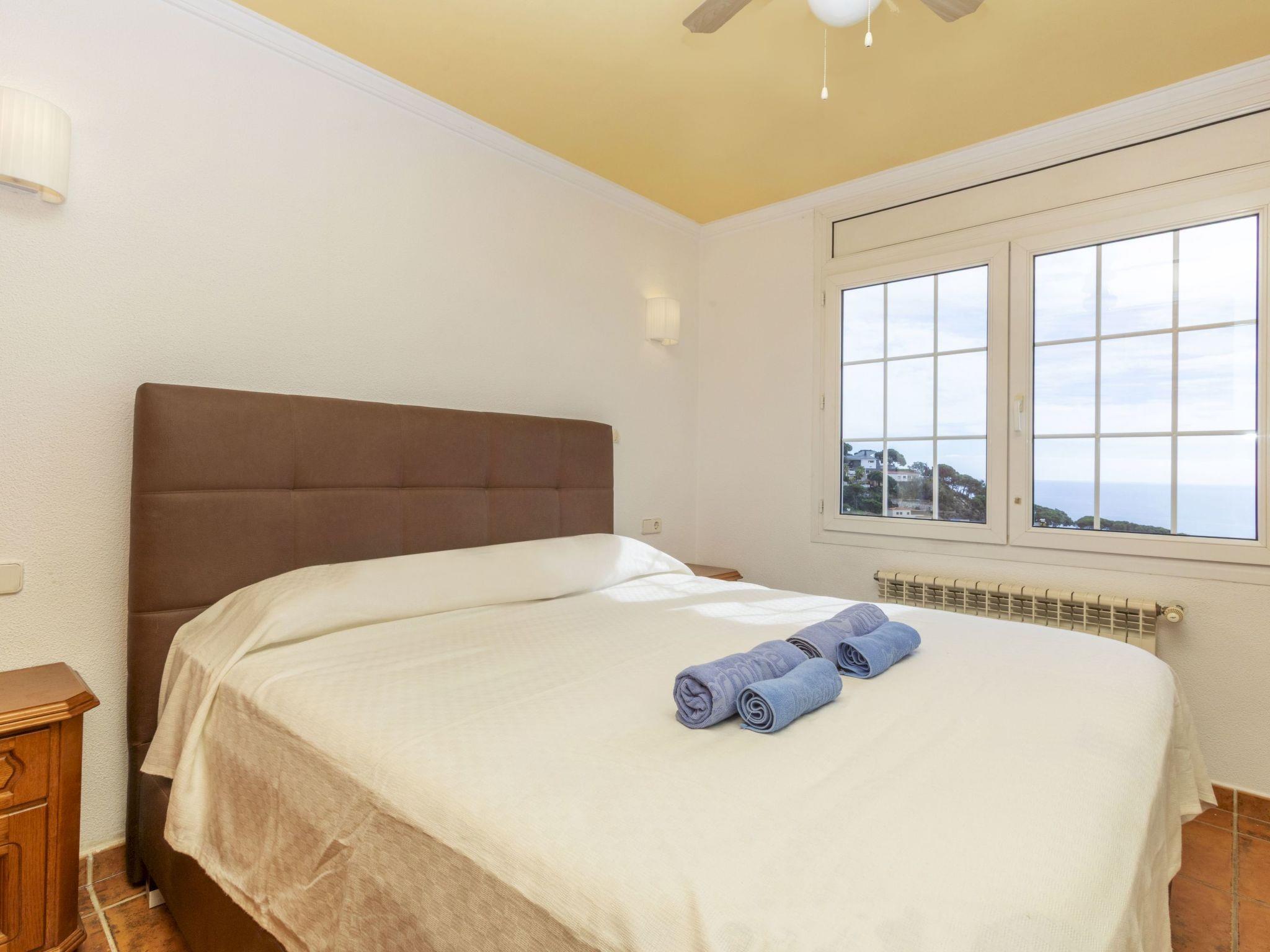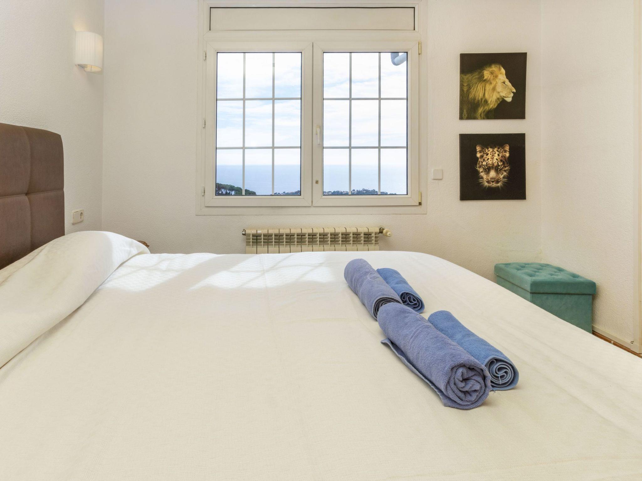 "Floramar", 7-room house 288 m2 on 2 levels. Spacious and bright, very practical and comfortable furnishings: living/dining room with open-hearth fireplace, dining table, digital TV and international TV channels. 1 double bedroom with 1 french bed (160 cm, length 190 cm). 1 double bedroom with 2 beds (90 cm, length 190 cm). 1 double bedroom with 1 french bed (180 cm, length 200 cm). Open kitchen (oven, dishwasher, 4 ceramic glass hob hotplates, toaster, kettle, microwave, freezer, electric coffee machine). 2 showers/WC. On the lower ground floor: 1 double bedroom with 1 french bed (200 cm, length 200 cm) with 1 double sofabed (135 cm, length 190 cm), digital TV and international TV channels. Exit to the patio. Open kitchen (toaster, kettle, microwave, freezer, electric coffee machine) with dining table. Shower/WC. Terrace furniture, barbecue, deck chairs. Marvellous view of the sea. Facilities: washing machine, iron, children's high chair, baby cot for up to 2 year olds, hair dryer. Internet (WiFi, free). Please note: suitable for families one double bedroom is outside the apartment. Maximum 1 small pet/ dog allowed. TV only FR, DE, ES. HUTG-014930 // Reg. Nr.: ESFCTU00001701300053931900000000000000HUTG-014930-452