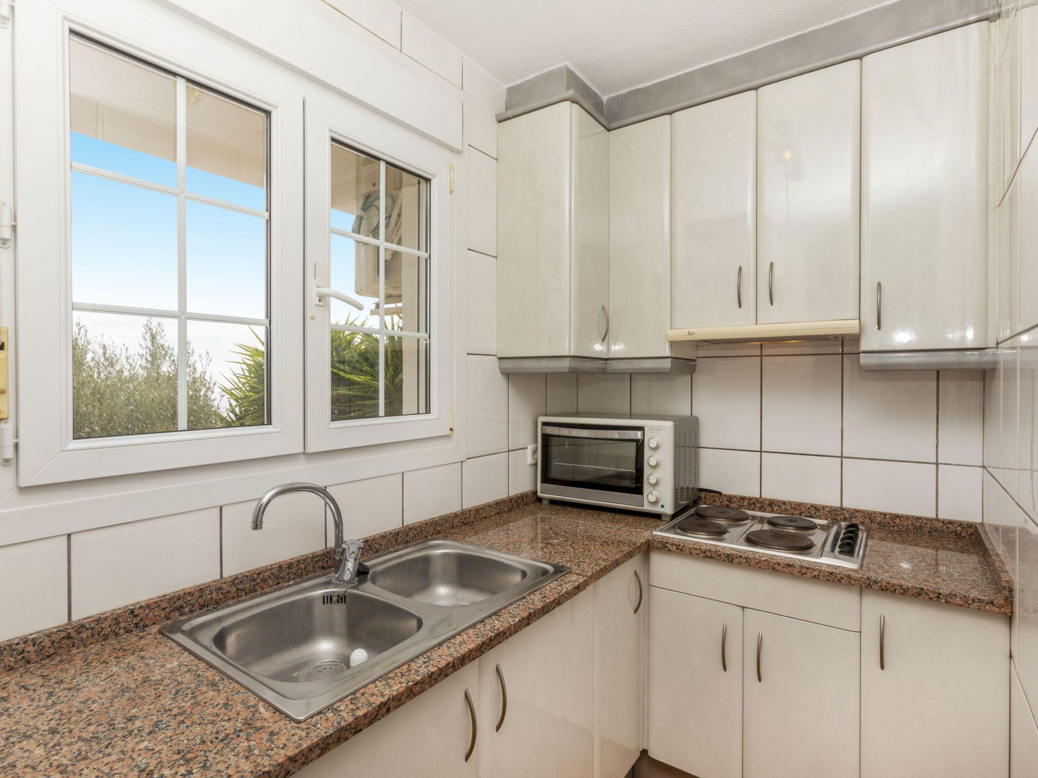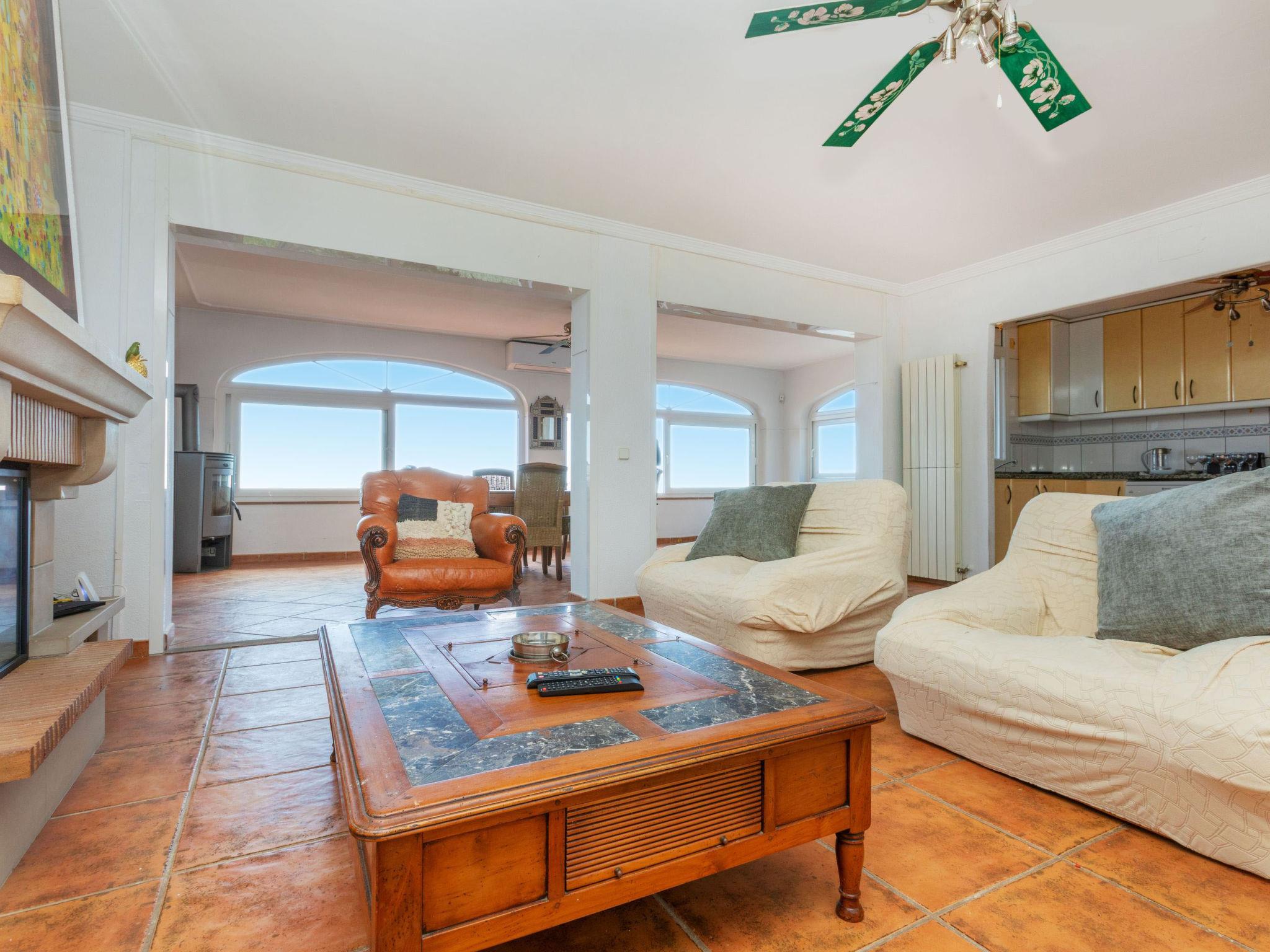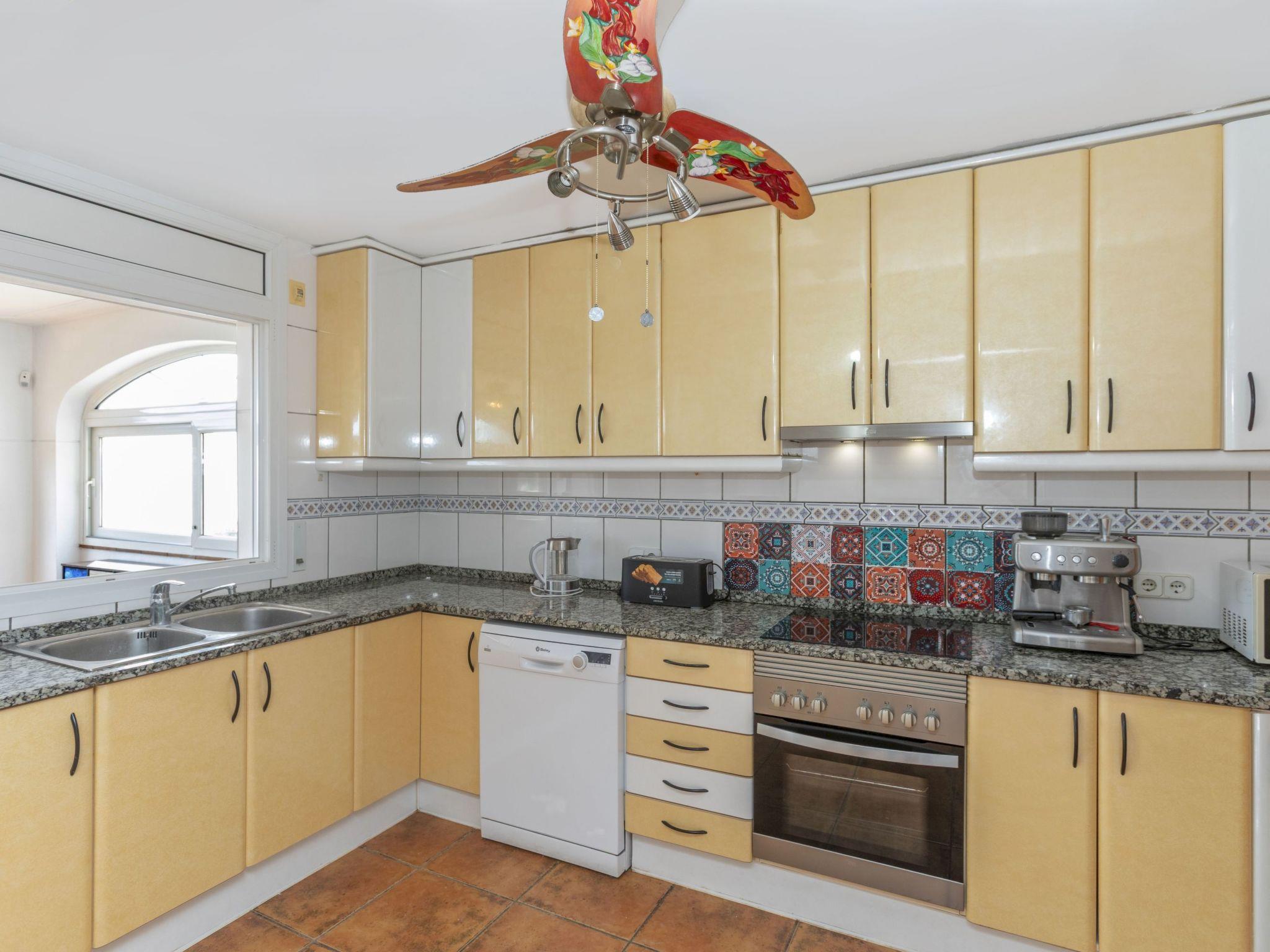"Floramar", 7-room house 288 m2 on 2 levels. Spacious and bright, very practical and comfortable furnishings: living/dining room with open-hearth fireplace, dining table, digital TV and international TV channels. 1 double bedroom with 1 french bed (160 cm, length 190 cm). 1 double bedroom with 2 beds (90 cm, length 190 cm). 1 double bedroom with 1 french bed (180 cm, length 200 cm). Open kitchen (oven, dishwasher, 4 ceramic glass hob hotplates, toaster, kettle, microwave, freezer, electric coffee machine). 2 showers/WC. On the lower ground floor: 1 double bedroom with 1 french bed (200 cm, length 200 cm) with 1 double sofabed (135 cm, length 190 cm), digital TV and international TV channels. Exit to the patio. Open kitchen (toaster, kettle, microwave, freezer, electric coffee machine) with dining table. Shower/WC. Terrace furniture, barbecue, deck chairs. Marvellous view of the sea. Facilities: washing machine, iron, children's high chair, baby cot for up to 2 year olds, hair dryer. Internet (WiFi, free). Please note: suitable for families one double bedroom is outside the apartment. Maximum 1 small pet/ dog allowed. TV only FR, DE, ES. HUTG-014930 // Reg. Nr.: ESFCTU00001701300053931900000000000000HUTG-014930-452