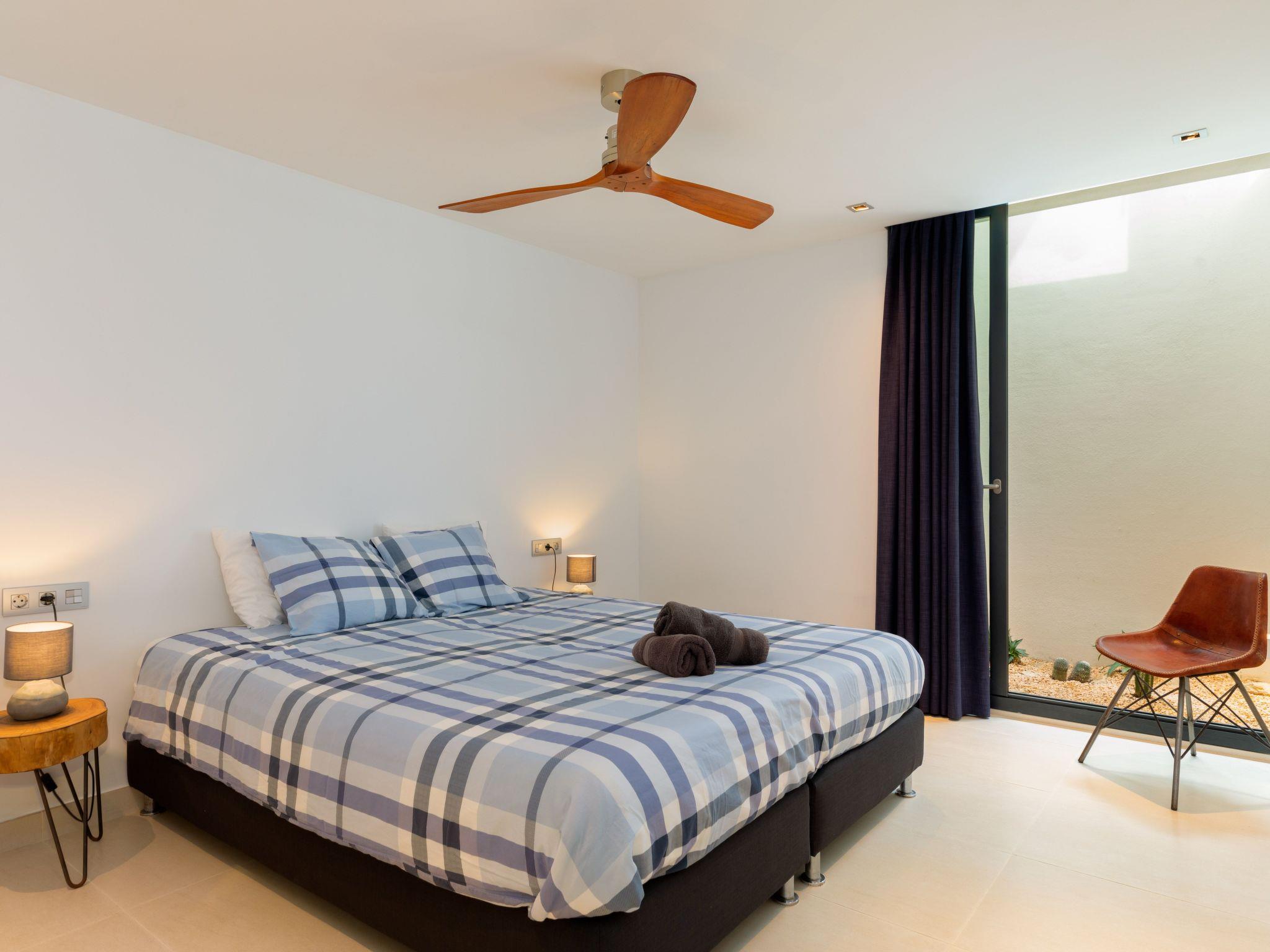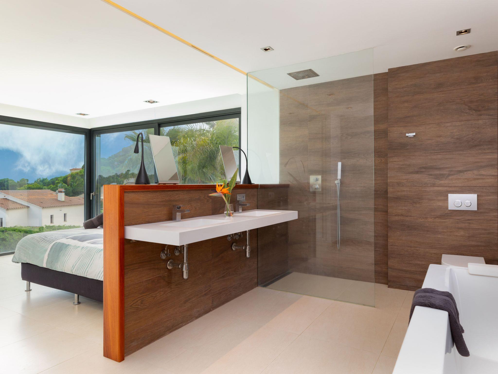 With a floating stairs you access the second floor, where you find a bedroom with en-suite bathroom and two bedrooms with a shared bathroom. Waking up you can immediately enjoy the beautiful sea view and have breakfast on the covered terrace at this level. Then there is the master suite with bathtub, shower and access to a private terrace. All bedrooms have built-in wardrobes.