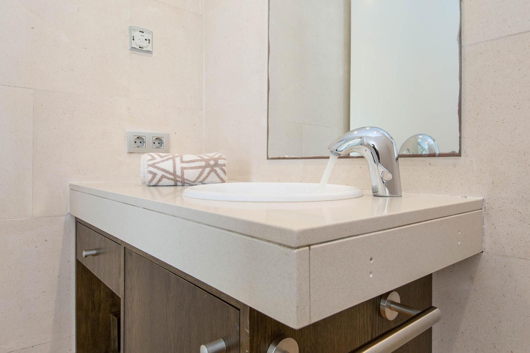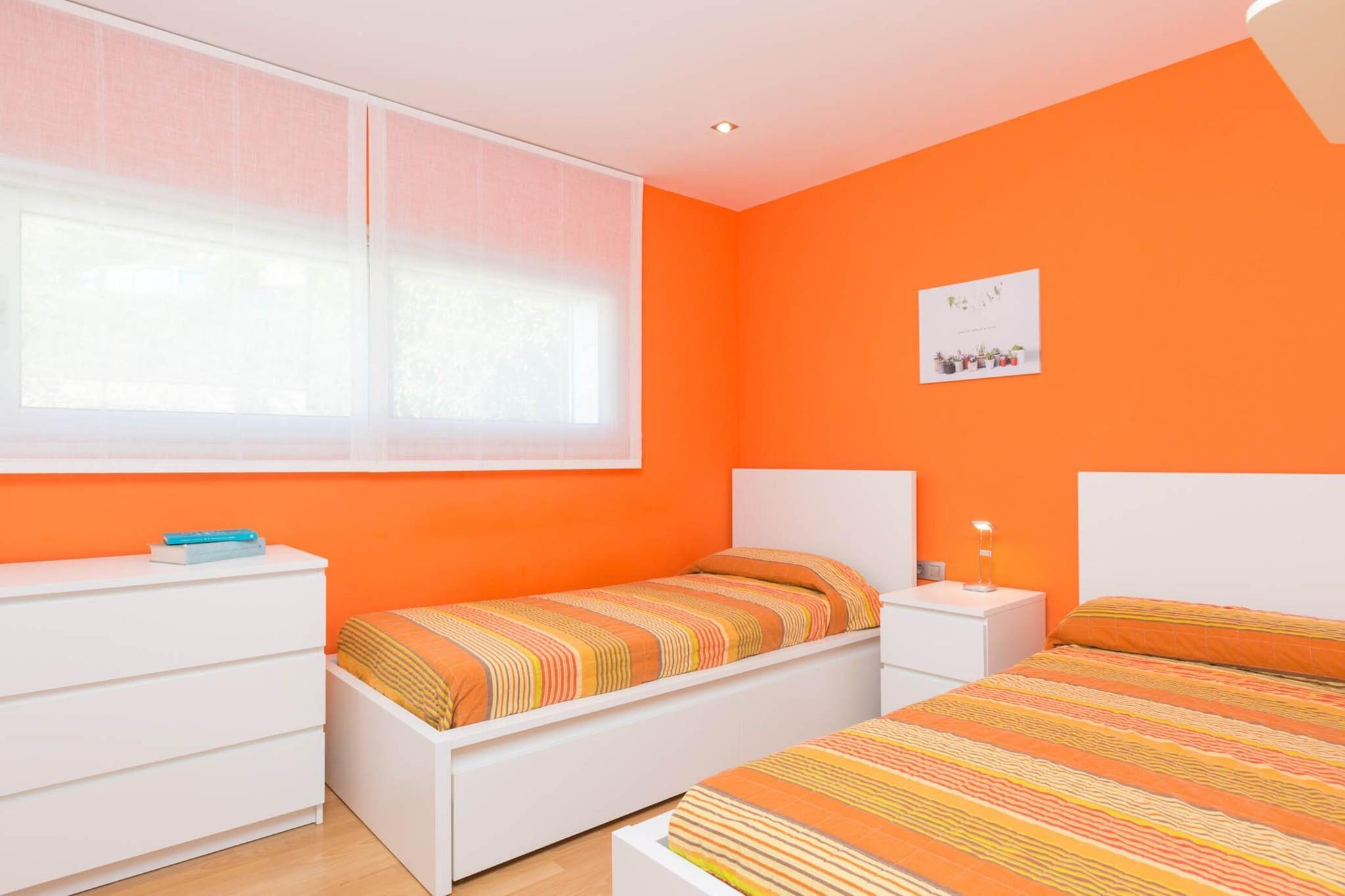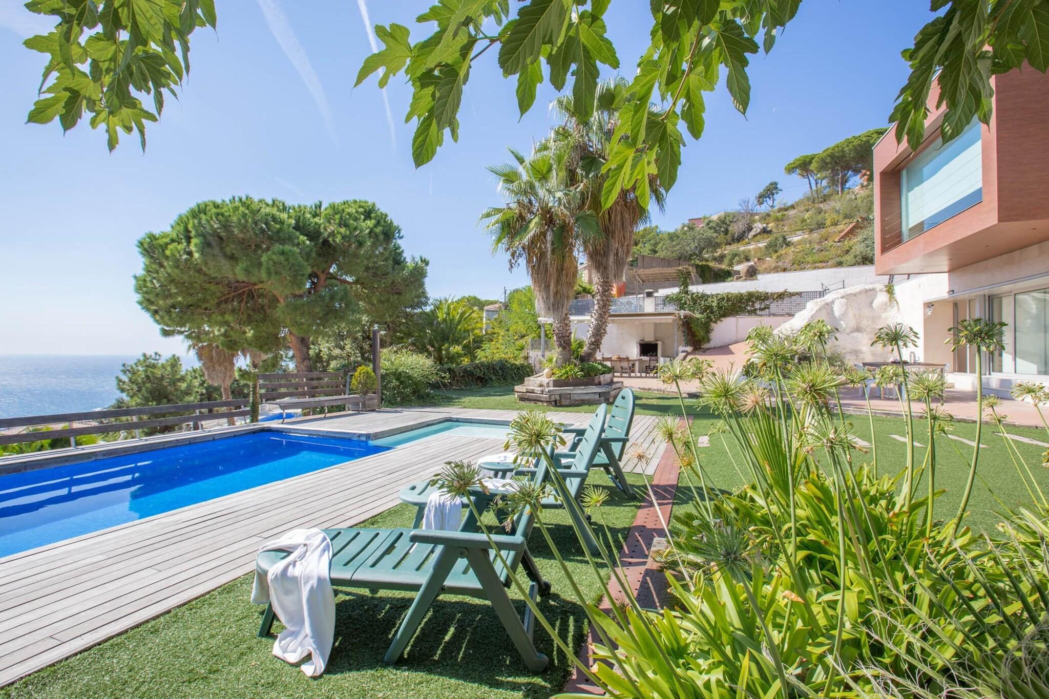 Denna rymliga och moderna villa erbjuder en avkopplande oas för upp till 10 gäster med sina 5 välutrustade sovrum. Villan har ett fullt utrustat kök med högkvalitativa apparater, inklusive kylskåp, mikrovågsugn, ugn, diskmaskin och tvättmaskin, vilket gör den idealisk för längre vistelser eller för att laga hemlagad mat. Det stora, ljusa vardagsrummet är perfekt för att varva ner, komplett med satellit-TV och en stereoanläggning. Vart och ett av de 3 badrummen har ett lyxigt jacuzzibadkar, vilket är det perfekta sättet att varva ner efter en dag av utforskning. Boendet är djurfritt och endast tillgängligt för familjebokningar, med begränsningar för ungdomar under 35 år. Denna villa ligger bara 4,5 km från de vackra stränderna i Lloret de Mar, och erbjuder enkel tillgång till de lokala attraktionerna och den naturliga skönheten på Costa Brava. Cala Canyellas, en av de mest fantastiska stränderna i området, ligger bara en kort bilresa bort. Det omgivande området är tyst och fridfullt, och erbjuder den perfekta balansen mellan lugn och närhet till den livliga atmosfären i Lloret de Mar. Gästerna kan utforska lokala butiker, restauranger och kaféer, allt inom kort avstånd, vilket ger många möjligheter att uppleva den lokala kulturen och maten. Villans uteplats är en sann höjdpunkt, med en privat pool (4x8m), en stor terrass med utsikt över havet och bergen, och en inbyggd grill, vilket skapar ett perfekt utrymme för avkoppling och uteservering. Villan har även ett garage för 2 bilar, vilket säkerställer gott om parkeringsplatser.