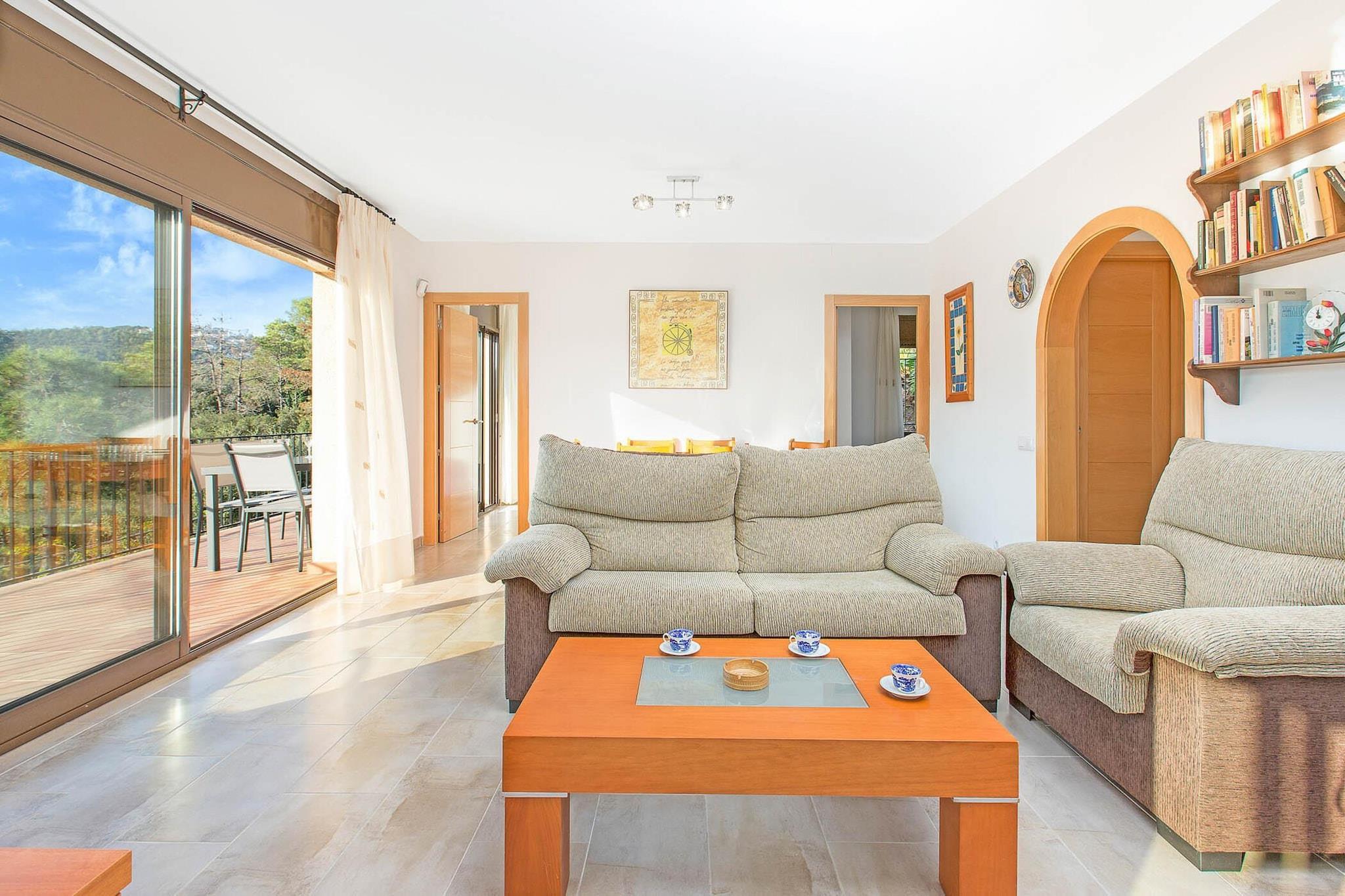 Denna rymliga och moderna villa erbjuder en avkopplande oas för upp till 10 gäster med sina 5 välutrustade sovrum. Villan har ett fullt utrustat kök med högkvalitativa apparater, inklusive kylskåp, mikrovågsugn, ugn, diskmaskin och tvättmaskin, vilket gör den idealisk för längre vistelser eller för att laga hemlagad mat. Det stora, ljusa vardagsrummet är perfekt för att varva ner, komplett med satellit-TV och en stereoanläggning. Vart och ett av de 3 badrummen har ett lyxigt jacuzzibadkar, vilket är det perfekta sättet att varva ner efter en dag av utforskning. Boendet är djurfritt och endast tillgängligt för familjebokningar, med begränsningar för ungdomar under 35 år. Denna villa ligger bara 4,5 km från de vackra stränderna i Lloret de Mar, och erbjuder enkel tillgång till de lokala attraktionerna och den naturliga skönheten på Costa Brava. Cala Canyellas, en av de mest fantastiska stränderna i området, ligger bara en kort bilresa bort. Det omgivande området är tyst och fridfullt, och erbjuder den perfekta balansen mellan lugn och närhet till den livliga atmosfären i Lloret de Mar. Gästerna kan utforska lokala butiker, restauranger och kaféer, allt inom kort avstånd, vilket ger många möjligheter att uppleva den lokala kulturen och maten. Villans uteplats är en sann höjdpunkt, med en privat pool (4x8m), en stor terrass med utsikt över havet och bergen, och en inbyggd grill, vilket skapar ett perfekt utrymme för avkoppling och uteservering. Villan har även ett garage för 2 bilar, vilket säkerställer gott om parkeringsplatser.
