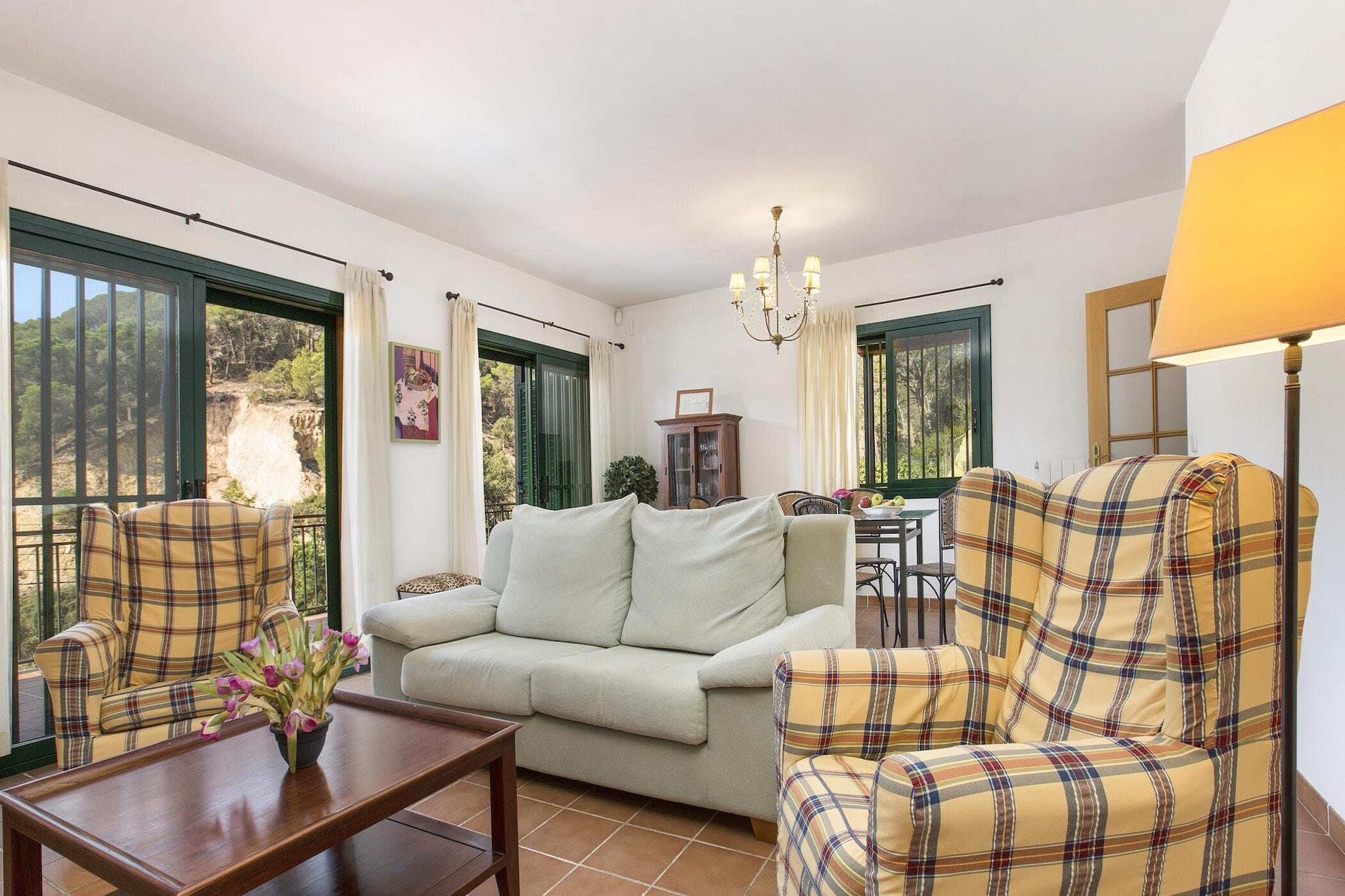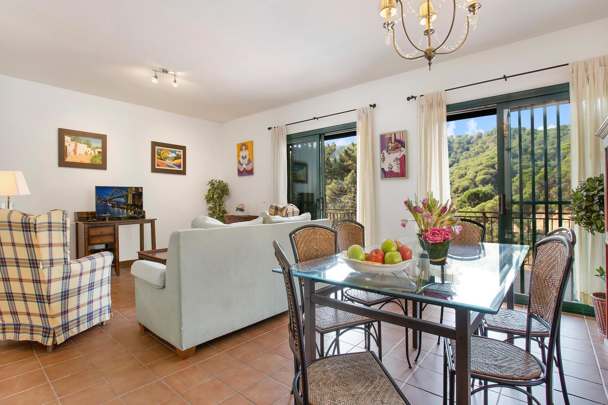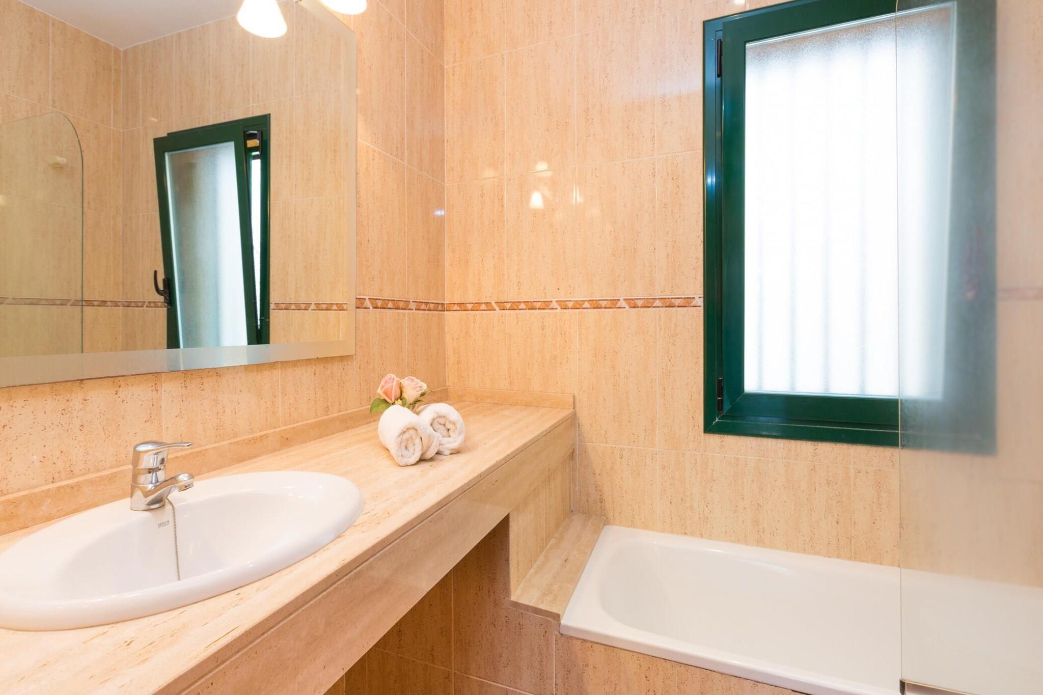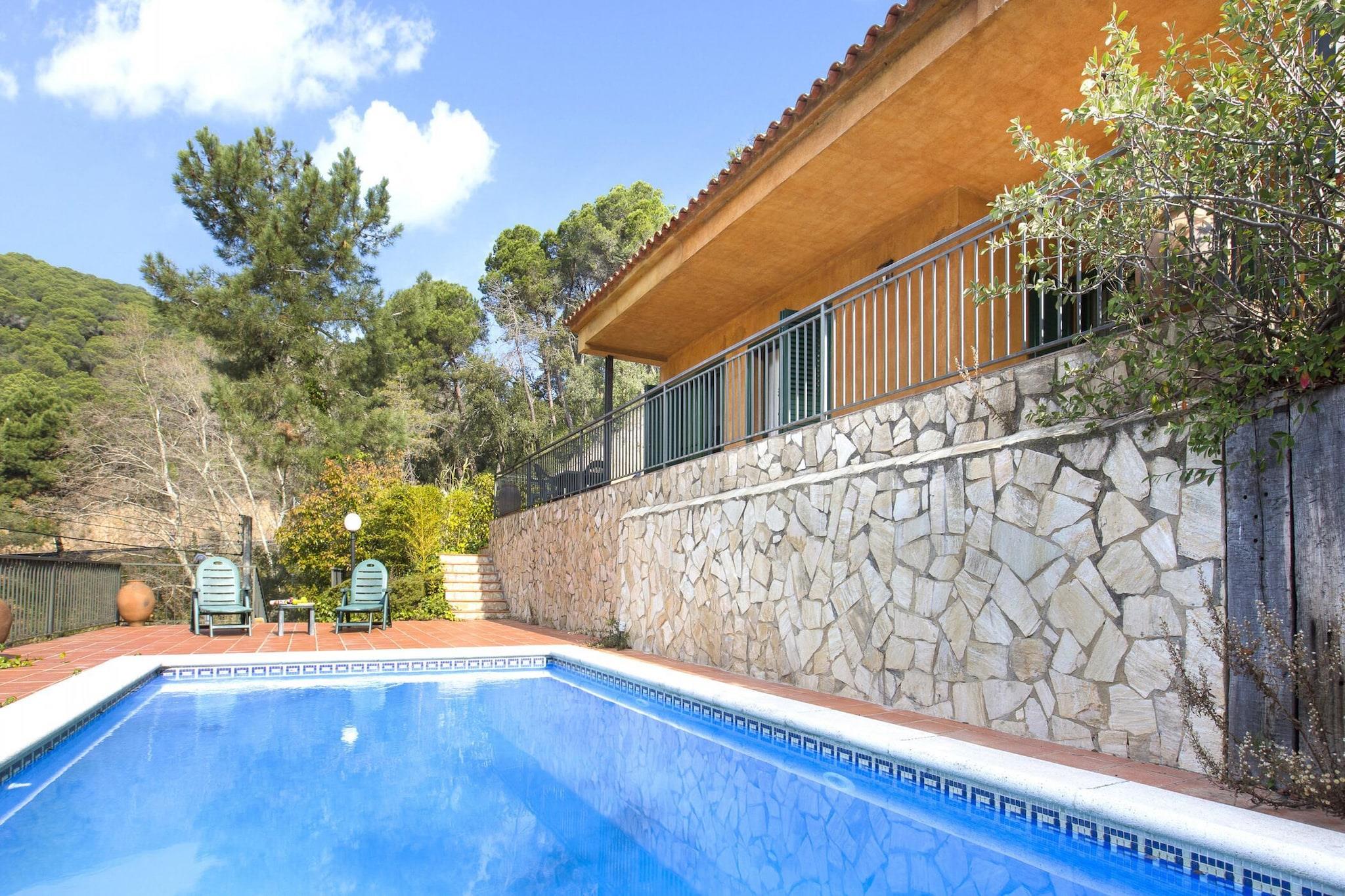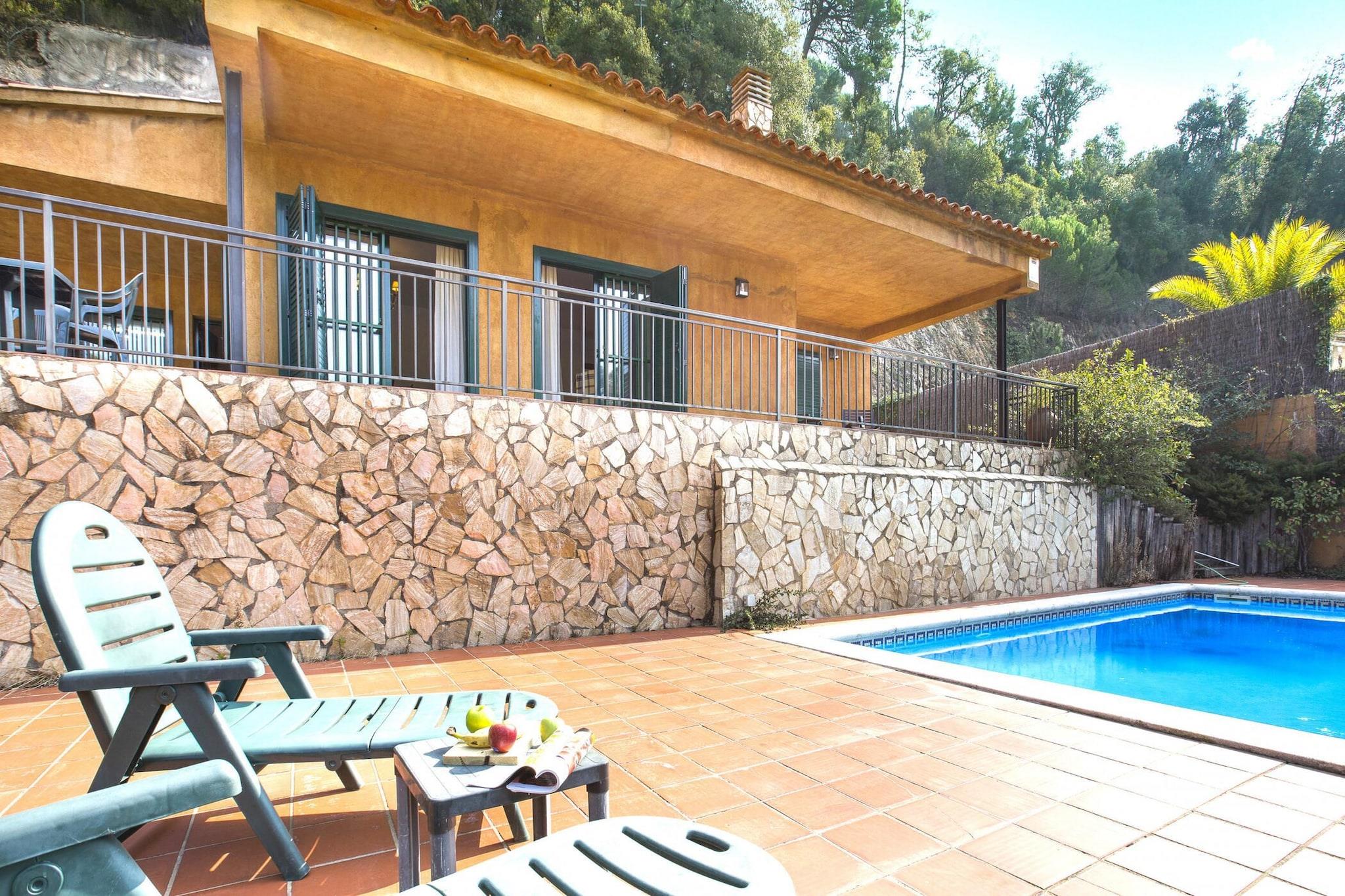 Denna charmiga villa erbjuder en idealisk tillflyktsort för familjer som söker en avkopplande semester på Costa Brava. Boendet har 3 mysiga sovrum och rymmer upp till 6 gäster. Villan är designad med komfort i åtanke och har en rymlig boyta på 110 m² och en tomt på 900 m². Gästerna kan njuta av en privat pool (7x4m) och koppla av på den stora terrassen med fantastisk utsikt över bergen. Villan har ett bekvämt vardagsrum med TV och enkel tillgång till terrassen. Den har också ett fullt utrustat kök med alla nödvändiga bekvämligheter, inklusive bestick, kokkärl, tvättmaskin, kylskåp, mikrovågsugn, brödrost och ugn. Husdjur är tillåtna på begäran och mot en extra avgift. Denna villa ligger bara 1,5 km från den vackra stranden Cala Canyelles och 8 km från den historiska staden Tossa de Mar, och erbjuder enkel tillgång till några av de bästa attraktionerna på Costa Brava. Cala Canyelles är känt för sin vackra sandstrand, där gästerna kan hyra parasoll, solstolar och njuta av olika vattenaktiviteter som trampbåt, parasailing och vattenskidor. Tossa de Mar, med sitt medeltida slott och charmiga muromgärdade stad, ger en fantastisk kulturell upplevelse, tillsammans med fantastiska restauranger och ytterligare stränder. Villan har 1 dubbelrum med tillgång till terrass och 2 sovrum med 2 enkelsängar, vilket garanterar gott om plats för alla. Det finns också två badrum – ett med dusch och det andra med badkar. Boendet erbjuder också gratis Wi-Fi, parkering för 2 bilar och ytterligare bekvämligheter som spjälsäng och barnstol (tillgänglig mot en extra kostnad).
