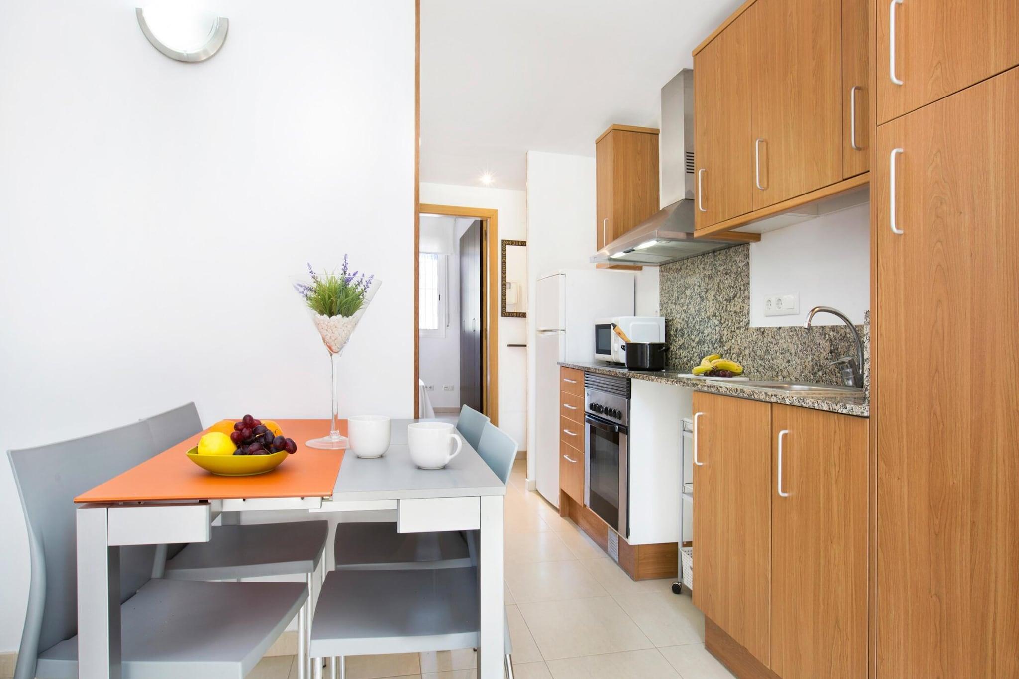 Denna mysiga lägenhet på 40 m² ligger i hjärtat av Lloret de Mar, bara 400 meter från den vackra stranden Fanals och nära stadens centrum. Perfekt för familjer, lägenheten ligger på bottenvåningen i ett bostadsområde och erbjuder tillgång till en gemensam trädgård och pool. Vardagsrummet med matplats har en bäddsoffa och öppnar upp till ett fullt utrustat kök med keramikhäll, kyl, frys, ugn och mer. Sovrummet har en bekväm dubbelsäng, och det finns ett badrum med badkar, samt en tvättmaskin för extra bekvämlighet. Lägenheten har också en härlig terrass med trädgårdsmöbler, perfekt för att njuta av soliga eftermiddagar och äta utomhus. För ytterligare komfort finns valfri luftkonditionering tillgänglig mot en extra kostnad på 30 EURO/vecka. Fastigheten är belägen i ett lugnt område, vilket ger en avkopplande atmosfär samtidigt som det ligger bara en kort promenad från stranden och lokala bekvämligheter. Denna lägenhet är exklusivt för familjer, inga bokningar accepteras från unga grupper under 35 år. Husdjur är inte tillåtna, vilket säkerställer en lugn och familjevänlig miljö. Njut av din vistelse i Lloret de Mar, där du kommer att ha nära till stranden, affärer och restauranger, allt inom gångavstånd.