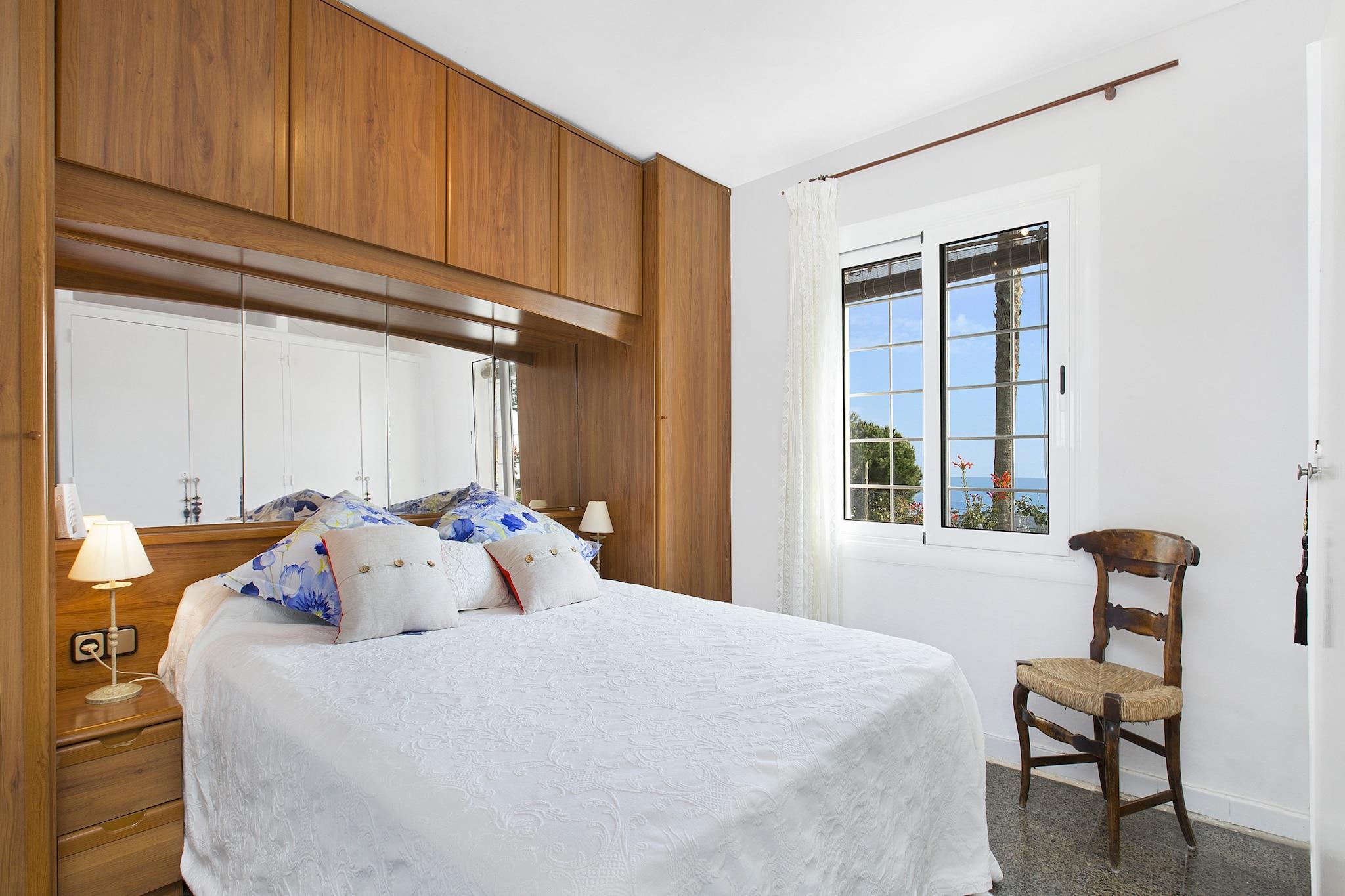 Denna vackra villa, belägen i ett lugnt bostadsområde, erbjuder fantastisk utsikt över havet och bergen, vilket gör den till ett idealiskt val för familjesemestern på Costa Brava. Med en maximal kapacitet på 10 gäster är villan uppdelad i två separata lägenheter, var och en med egen ingång, vilket garanterar avskildhet för alla gäster. Utomhusområdet inkluderar en privat pool (7x3,5m), en inbyggd grill och en stor terrass där du kan njuta av måltider, sola och njuta av det fantastiska landskapet. Inuti har lägenheten på bottenvåningen ett mysigt vardagsrum med TV och öppen spis, ett fullt utrustat kök med moderna apparater som diskmaskin, mikrovågsugn och ugn, ett sovrum med dubbelsäng, ett sovrum med två enkelsängar och ett badrum med badkar. Lägenheten på övervåningen har ett rymligt vardagsrum med TV och öppen spis, ett kök utrustat med en Nespressomaskin, två dubbelrum (ett med eget badrum), ett sovrum med en våningssäng och ett annat badrum med badkar. WiFi är gratis i alla utrymmen. Villan ligger bara 3 km från den vackra stranden Canyelles, 5 km från centrum av Lloret de Mar och 7 km från Tossa del Mar, där gästerna kan utforska charmiga gator, restauranger och stränder. Ungdomsgrupper accepteras endast på förfrågan, med en speciell deposition och husregler för att säkerställa en lugn miljö. Husdjur är tillåtna med förhandsgodkännande och tillägg.