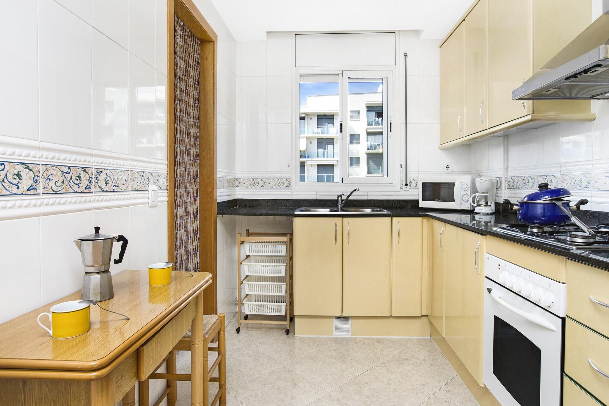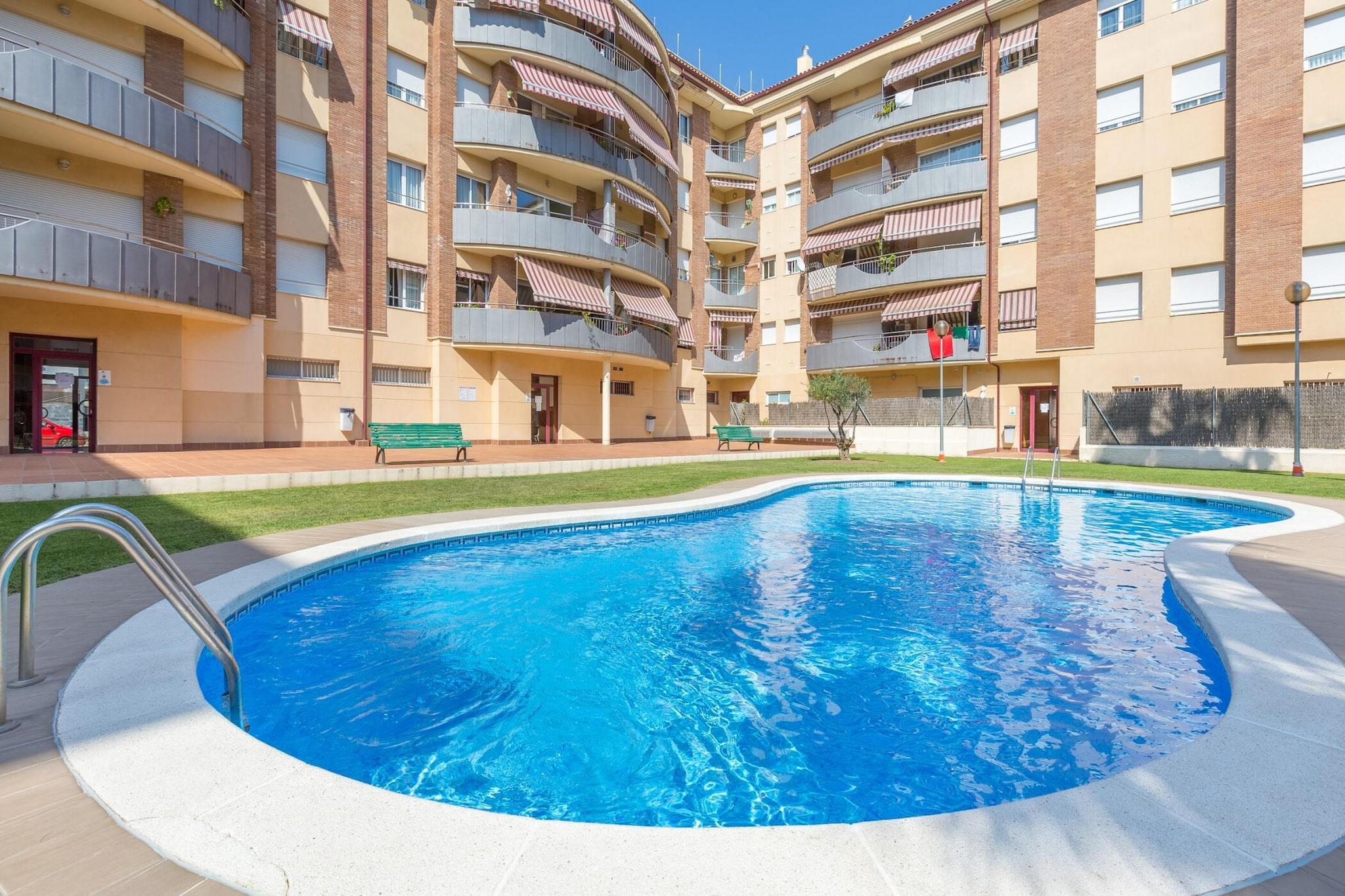 Denna mysiga lägenhet på 93 m² ligger i ett lugnt område i Lloret de Mar, bara 350 meter från stranden och nära en mängd restauranger, apotek och butiker, vilket gör den perfekt för familjesemestern på Costa Brava. Lägenheten rymmer upp till 6 gäster och är en del av en lugn utveckling med en gemensam trädgård, pool och parkering. Den rymliga terrassen på 25 m² erbjuder en avkopplande plats för att njuta av ditt morgonkaffe eller måltider i solen. Inuti har lägenheten ett vardagsrum med TV och direkt tillgång till terrassen. Det fullt utrustade köket har kylskåp, keramikhäll, mikrovågsugn, ugn och tvättmaskin, vilket gör det enkelt att laga mat under din vistelse. Det finns 1 dubbelrum och 2 extra sovrum, alla med 2 enkelsängar, som erbjuder gott om plats för alla. Lägenheten har även 1 badrum med badkar och 1 badrum med dusch för extra bekvämlighet. Denna fastighet är idealisk för familjer, eftersom ungdomsgrupper inte accepteras. Lägenheten ligger i hjärtat av Lloret de Mar, en charmig stad på Costa Brava, och ligger bara en kort promenad från stranden. Husdjur är tillåtna på begäran mot tillägg, vilket garanterar en bekväm vistelse för dina lurviga följeslagare.