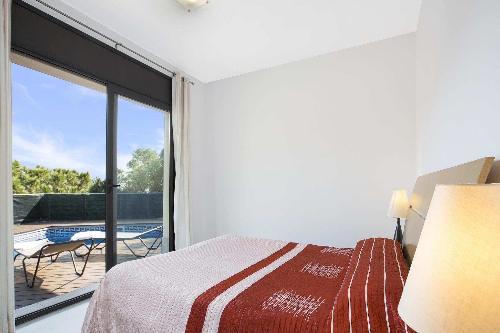 Denna moderna villa erbjuder en exceptionell miljö för familjer eller grupper på upp till 8 gäster, vilket gör den till ett idealiskt val för en avkopplande semester på Costa Brava. Fastigheten har fyra rymliga sovrum, inklusive två dubbelrum och två med två enkelsängar i varje, vilket säkerställer gott om plats för alla. Inuti hittar du ett ljust och elegant vardagsrum/matsal med TV och spektakulär utsikt över havet. Villan har också ett välutrustat kök med allt du behöver, inklusive mikrovågsugn, ugn, keramikhäll, tvättmaskin och diskmaskin. Husdjur är välkomna på begäran, och valfri luftkonditionering är tillgänglig mot en extra avgift. Denna villa ligger bara 2,5 km från den fridfulla stranden Canyelles och har ett perfekt läge för att njuta av både fridfull avkoppling och lokal utforskning. Lloret de Mars centrum ligger bara 5 km bort och erbjuder en mängd olika butiker, restauranger och livliga attraktioner. Dessutom ligger charmiga Tossa del Mar bara 8 km från villan, känd för sin medeltida arkitektur och fantastiska kustlandskap. Det fridfulla området garanterar en avkopplande atmosfär samtidigt som det är tillräckligt nära för att utforska den livliga Costa Brava. Villan är omgiven av ett rymligt uteområde, med en privat pool (7x6m) och en terrass med fantastisk utsikt över både havet och bergen - perfekt för att njuta av soliga frukostar eller kvällsmåltider. En inbyggd grill finns också, perfekt för uteservering. Med två badrum, varav ett med badkar och ett med dusch, är villan välutrustad för en bekväm vistelse.