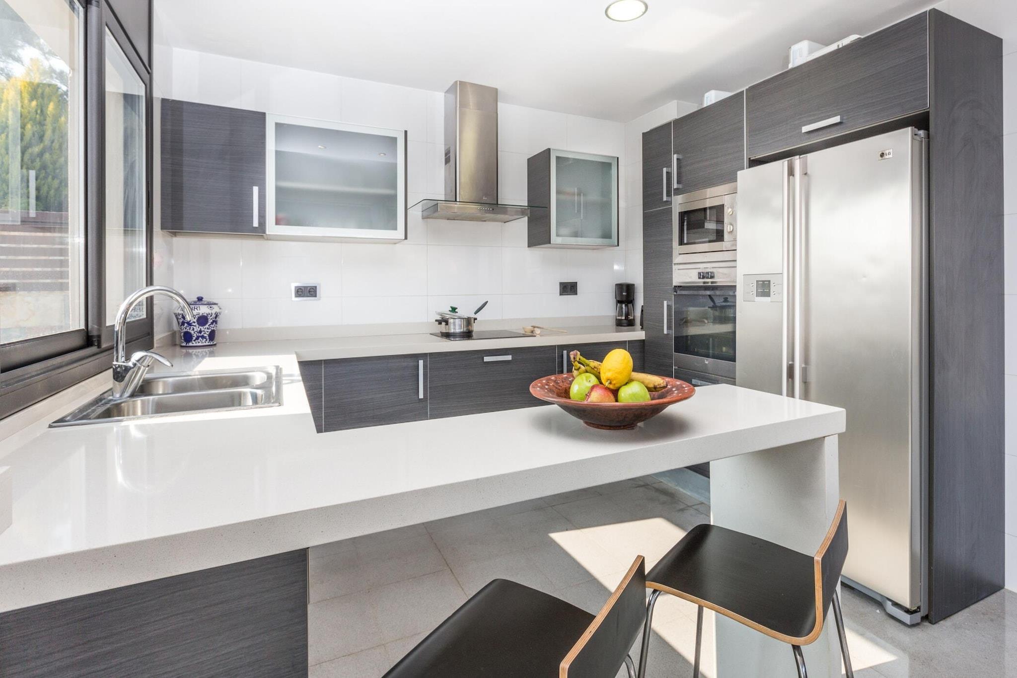 Kök(brödrost, kaffebryggare, ugn, mikrovågsugn, diskmaskin, kylskåp, frys, ), ardags- och matrum(TV, matbord, sitthörna), sovrum(enkelsäng, enkelsäng), sovrum(enkelsäng, enkelsäng), sovrum(dubbelsäng), sovrum(dubbelsäng), badrum(dusch), badrum(dusch), badrum(badkar), Tillgång till Internet, tvättmaskin, värme, luftkonditionering, terrass, trädgård, parkering, swimmingpool(privat), strykjärn, Alarm