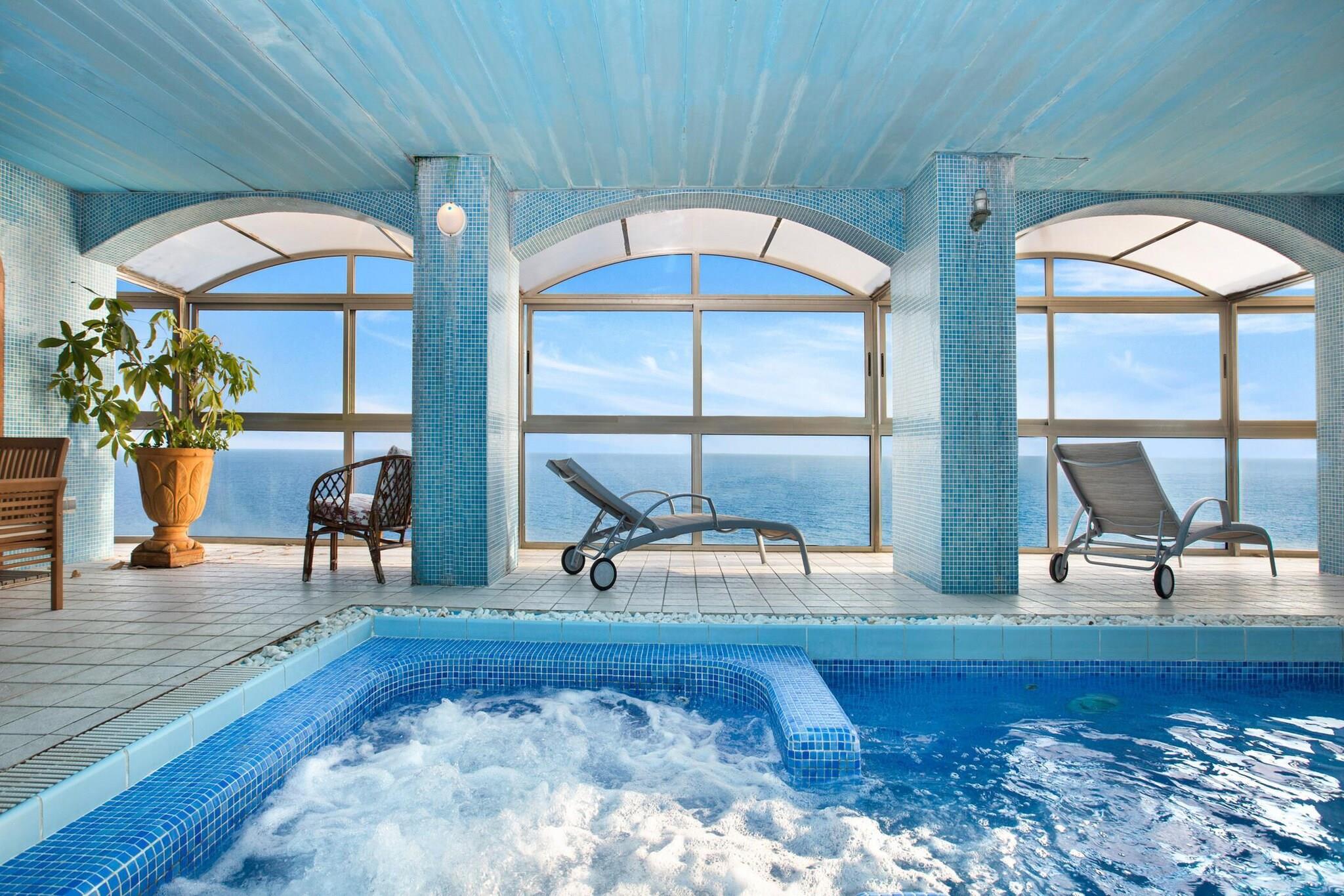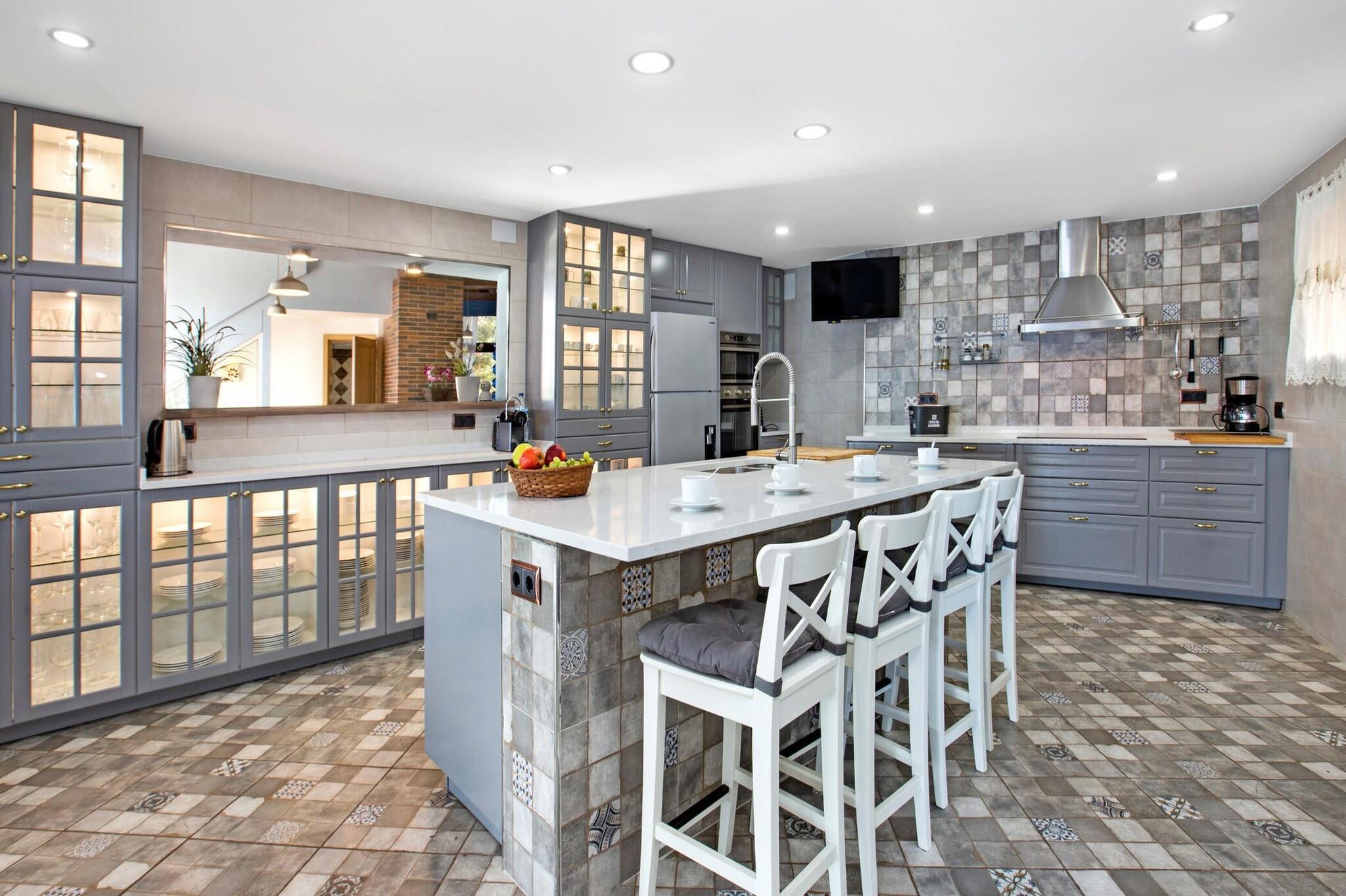 Vardagsrum(matbord, öppen spis, sitthörna), Kök(brödrost, kaffebryggare, ugn, mikrovågsugn, diskmaskin, kylskåp, frys, ), sovrum(dubbelsäng, TV), sovrum(dubbelsäng, TV), sovrum(dubbelsäng, TV), Bedroom with bathroom(dubbelsäng, TV, dusch), Bedroom with bathroom(dubbelsäng, TV, dusch), Bedroom with bathroom(dubbelsäng, dusch), badrum(dusch), Tillgång till Internet, Trädgårdsmöbler, bastu, tvättmaskin, luftkonditionering, terrass, grill, parkering, swimmingpool(privat, inomhus), strykjärn, Sea view