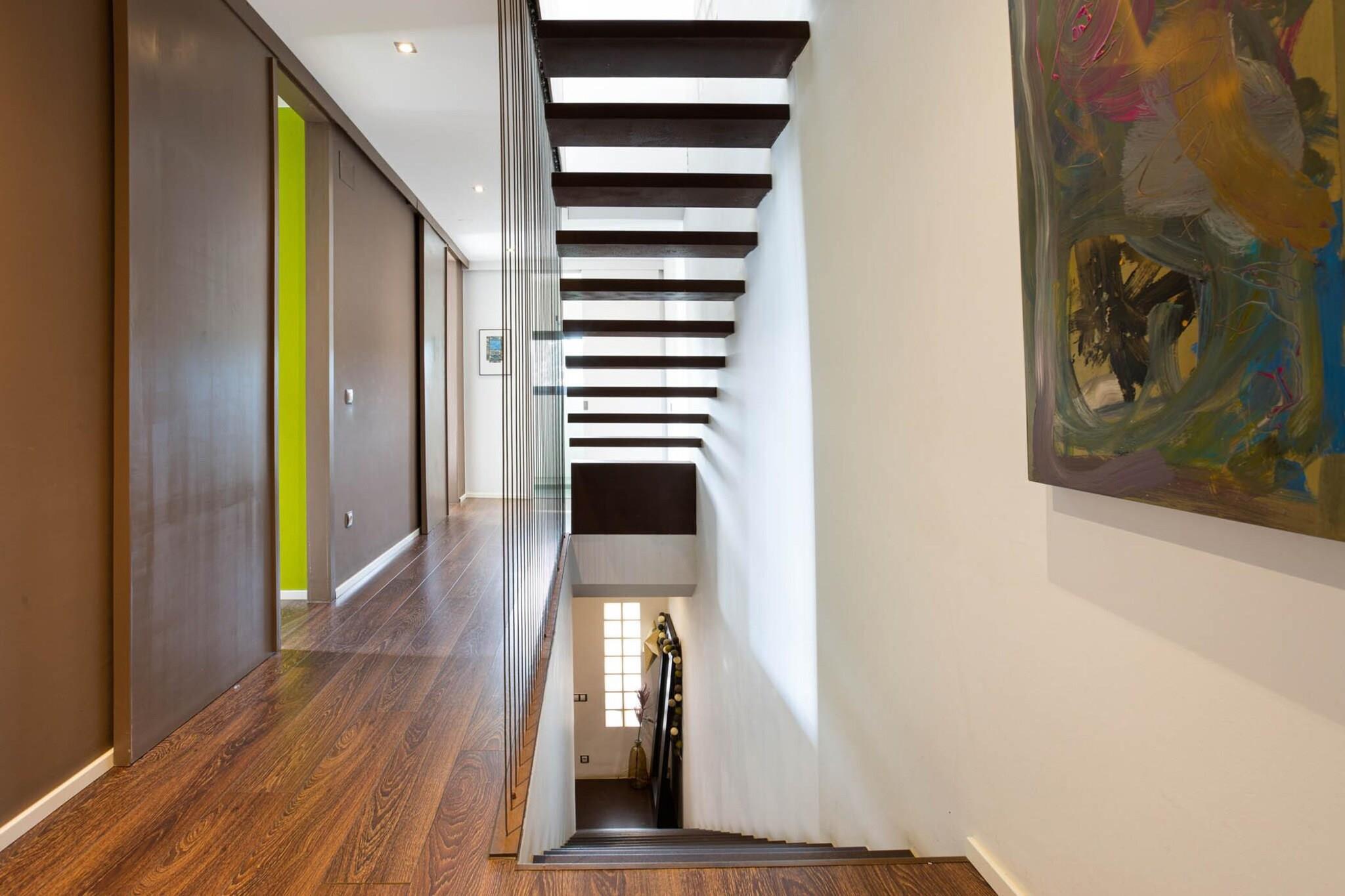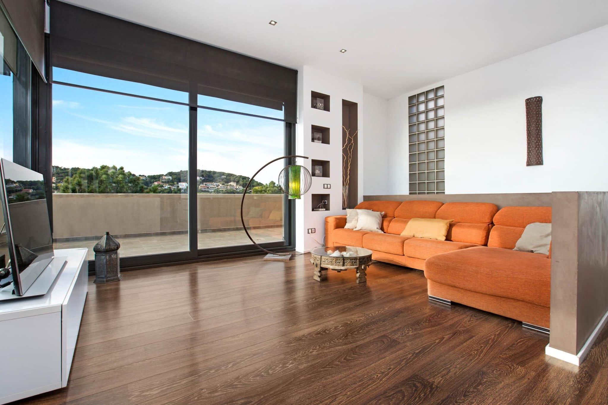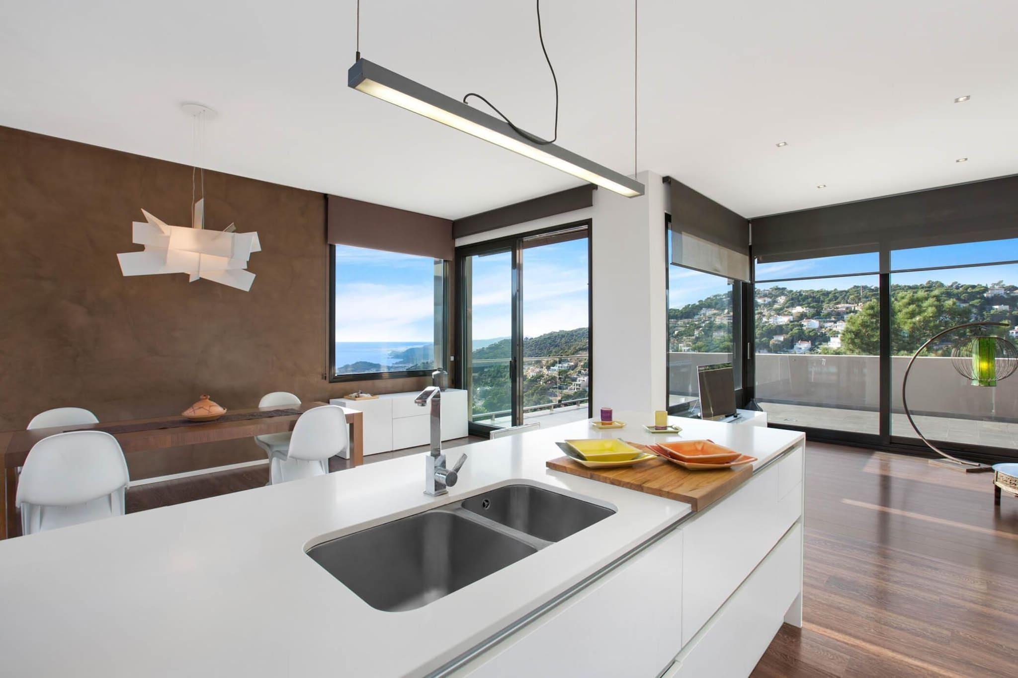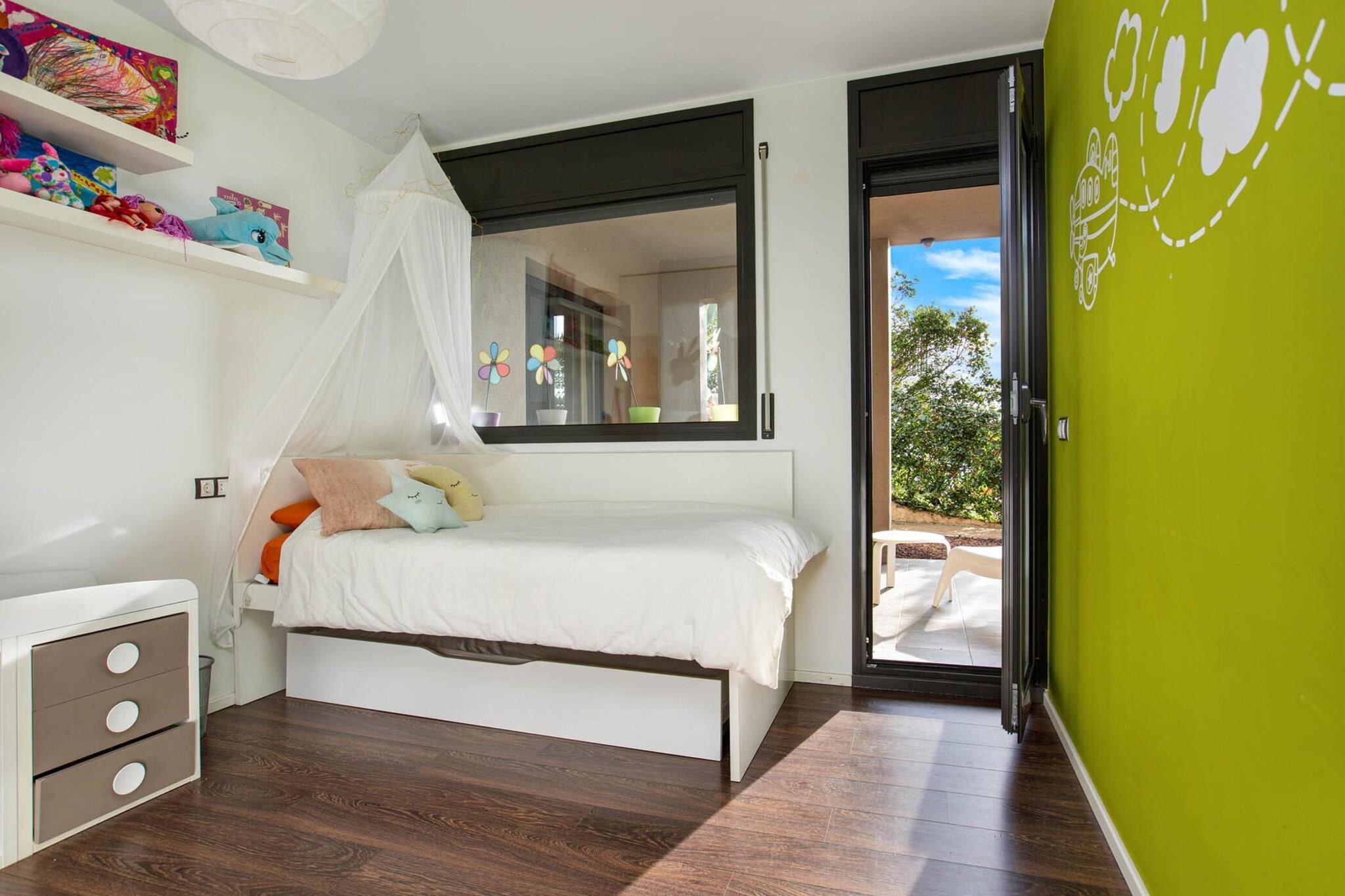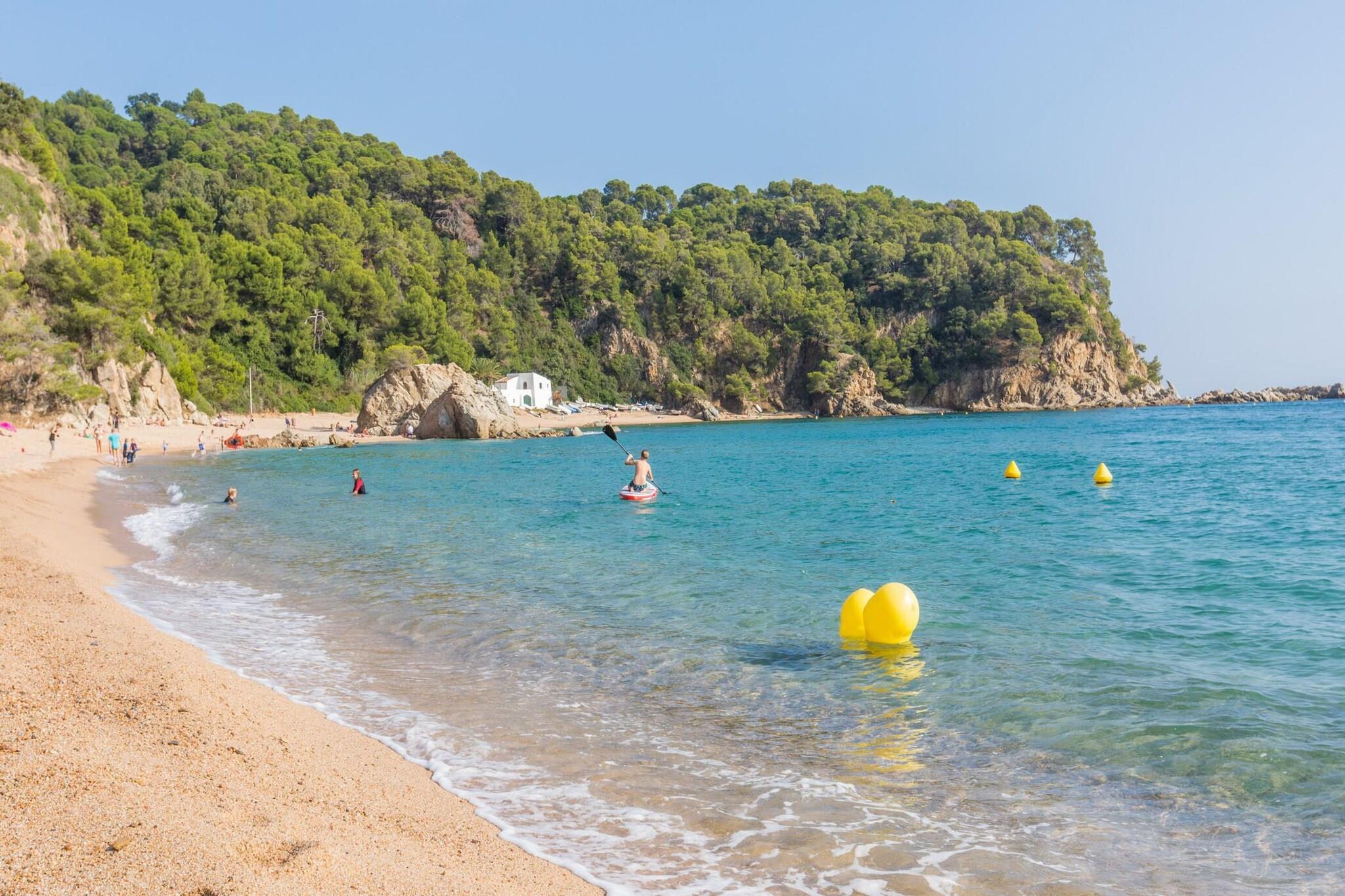 Denna fantastiska lyxvilla är den perfekta tillflyktsorten för familjer som letar efter en fridfull flykt med hisnande havsutsikt. Villan rymmer upp till 6 gäster och har 3 vackra sovrum, inklusive två dubbelrum (180x200 cm och 140x200 cm), ett sovrum med en våningssäng och en kontorsyta. Huset har en stor 8x4m privat pool, utomhusparkering och en privat trädgård, tillsammans med flera terrasser där gästerna kan njuta av frukost utomhus medan de har utsikt över den fantastiska bukten. Fastigheten ligger i ett lugnt bostadsområde, bara 3 km från stranden Canyelles och 5 km från den livliga stadskärnan i Lloret de Mar. Gästerna kan njuta av många närliggande attraktioner, inklusive Cala Canyelles, en vacker vik känd för sitt kristallklara vatten, där de kan hyra parasoll, solstolar, trampbåtar och till och med delta i vattensporter som parasailing och vattenskidor. Det omgivande området erbjuder fantastiska matställen, där du kan njuta av medelhavsspecialiteter som färsk fisk och paella. Bara en kort bilresa bort erbjuder den historiska staden Tossa de Mar ett medeltida slott, charmiga stränder och en rad utmärkta restauranger att utforska. Inne i villan är de rymliga sällskapsytorna fördelade på tre våningar, med två invändiga trappor. Det moderna köket, komplett med en stor ö och frukosthörna, är fullt utrustat med alla nödvändiga apparater, inklusive ugn, mikrovågsugn, diskmaskin och tvättmaskin. Huset har även ett badrum med badkar och ett annat med dusch.