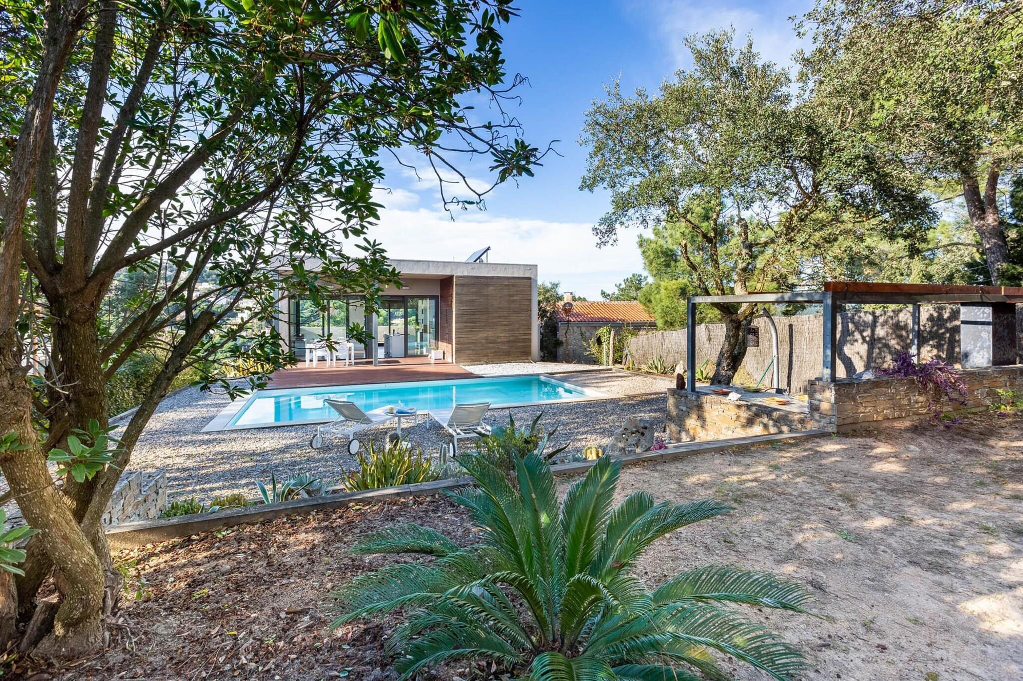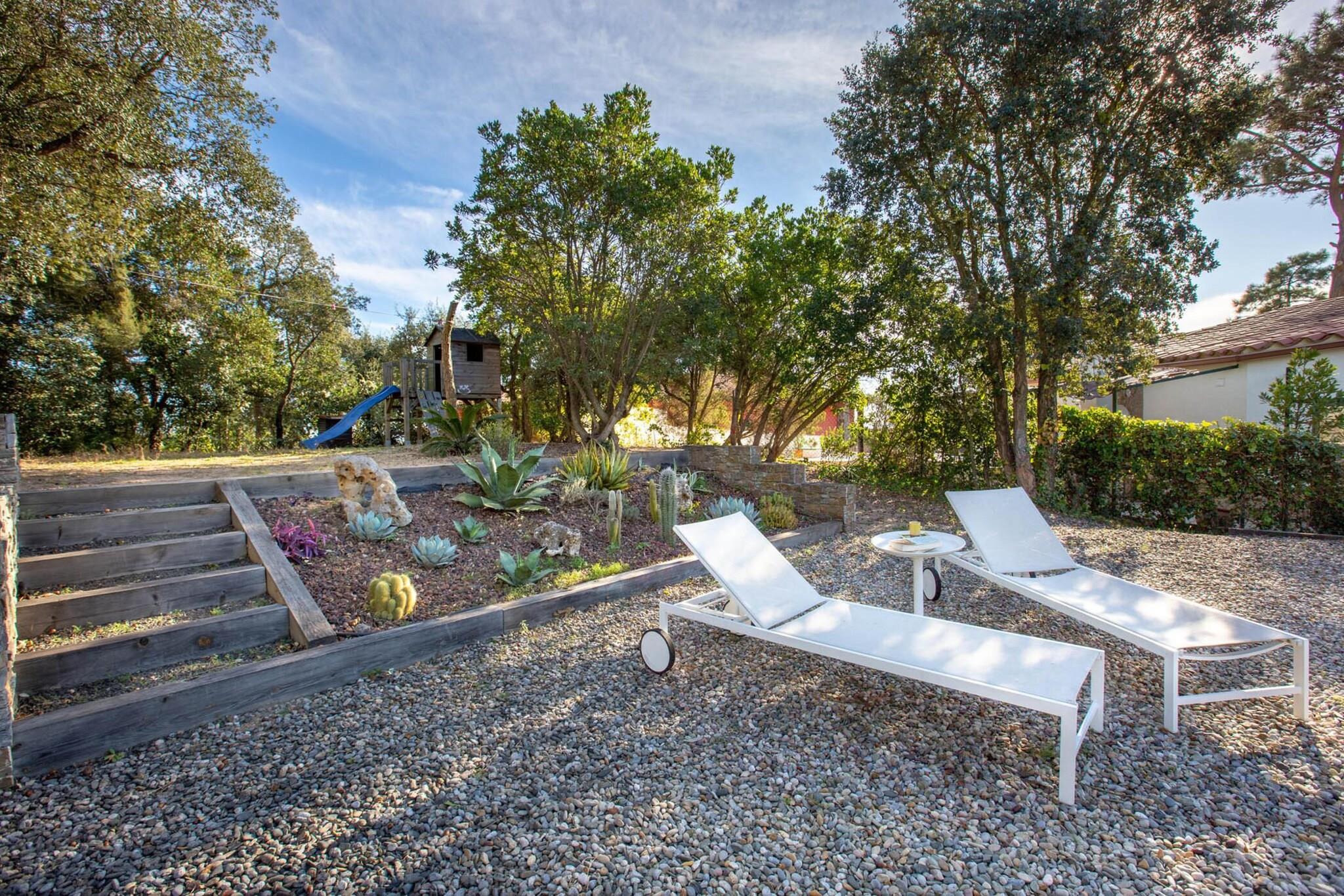 Vardagsrum(TV, matbord, sitthörna), Kök(brödrost, kaffebryggare, ugn, mikrovågsugn, diskmaskin, kylskåp, frys, ), sovrum(dubbelsäng), sovrum(dubbelsäng), sovrum(våningssäng), badrum(dusch), badrum(badkar), Tillgång till Internet, tvättmaskin, terrass, trädgård, grill, parkering, swimmingpool(privat),